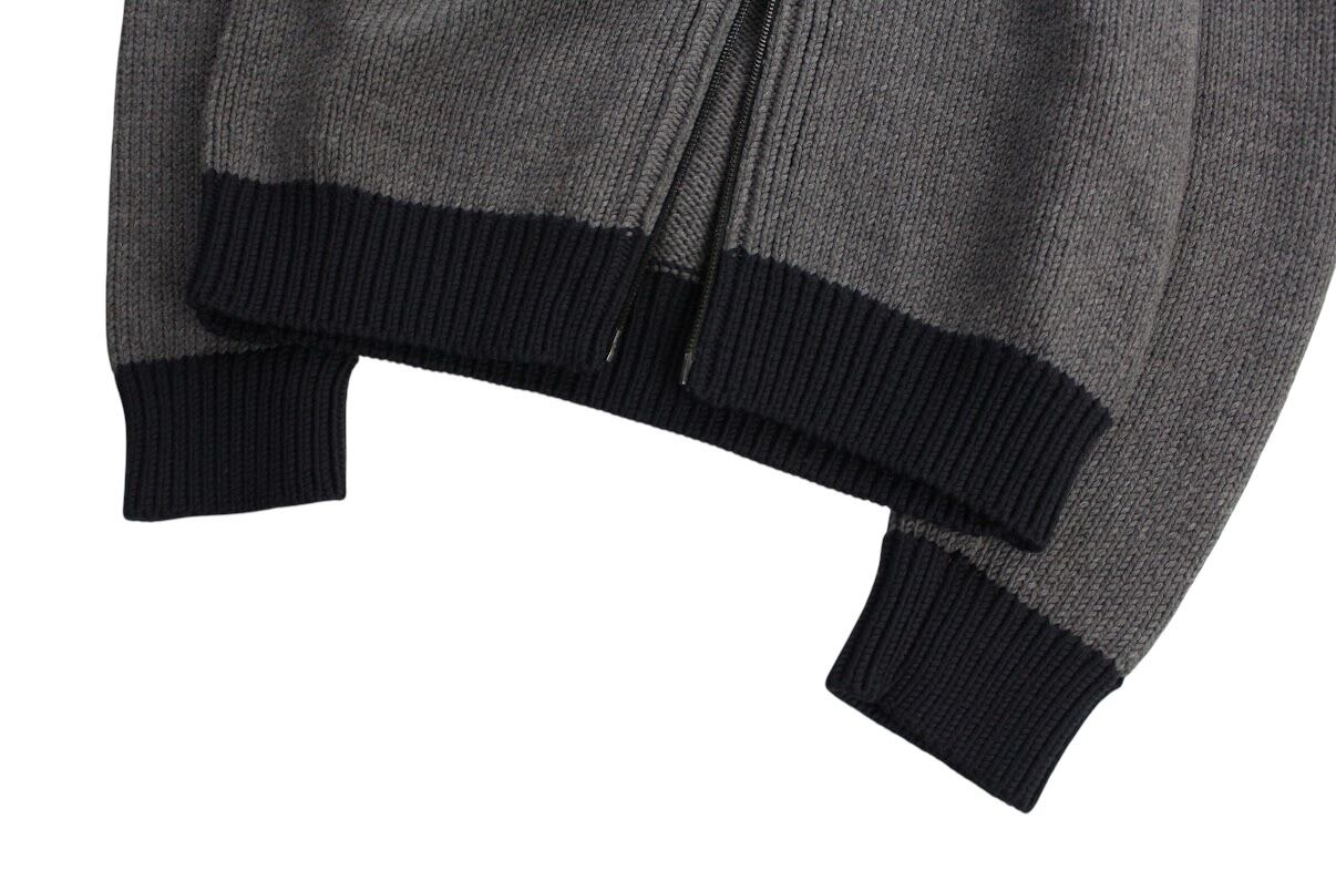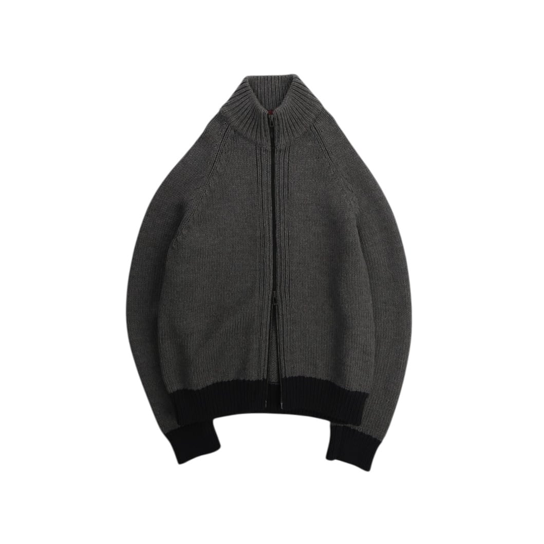 "HUGO BOSS" 100% wool two-tone double zip driver's knit【OT-13533】