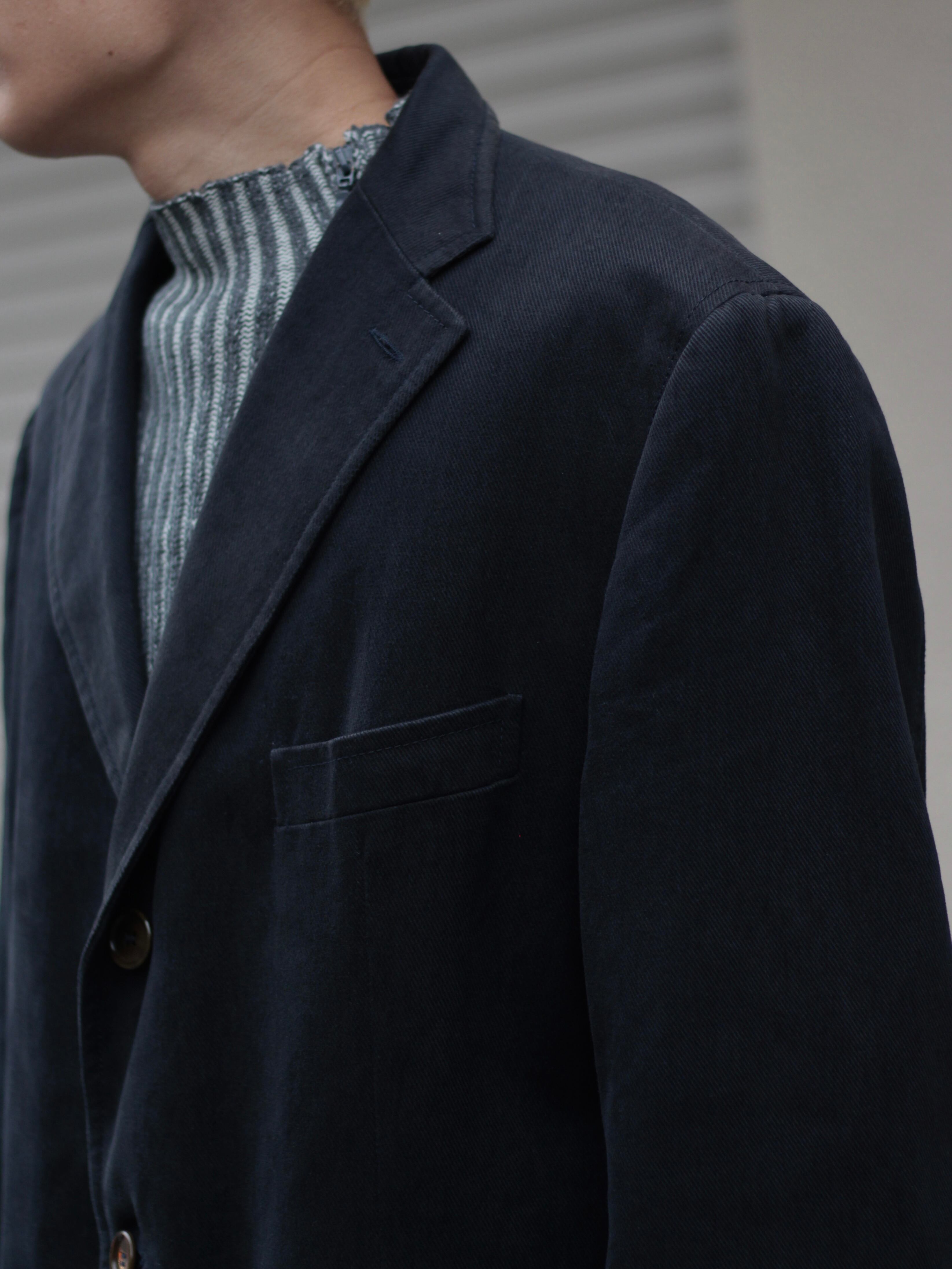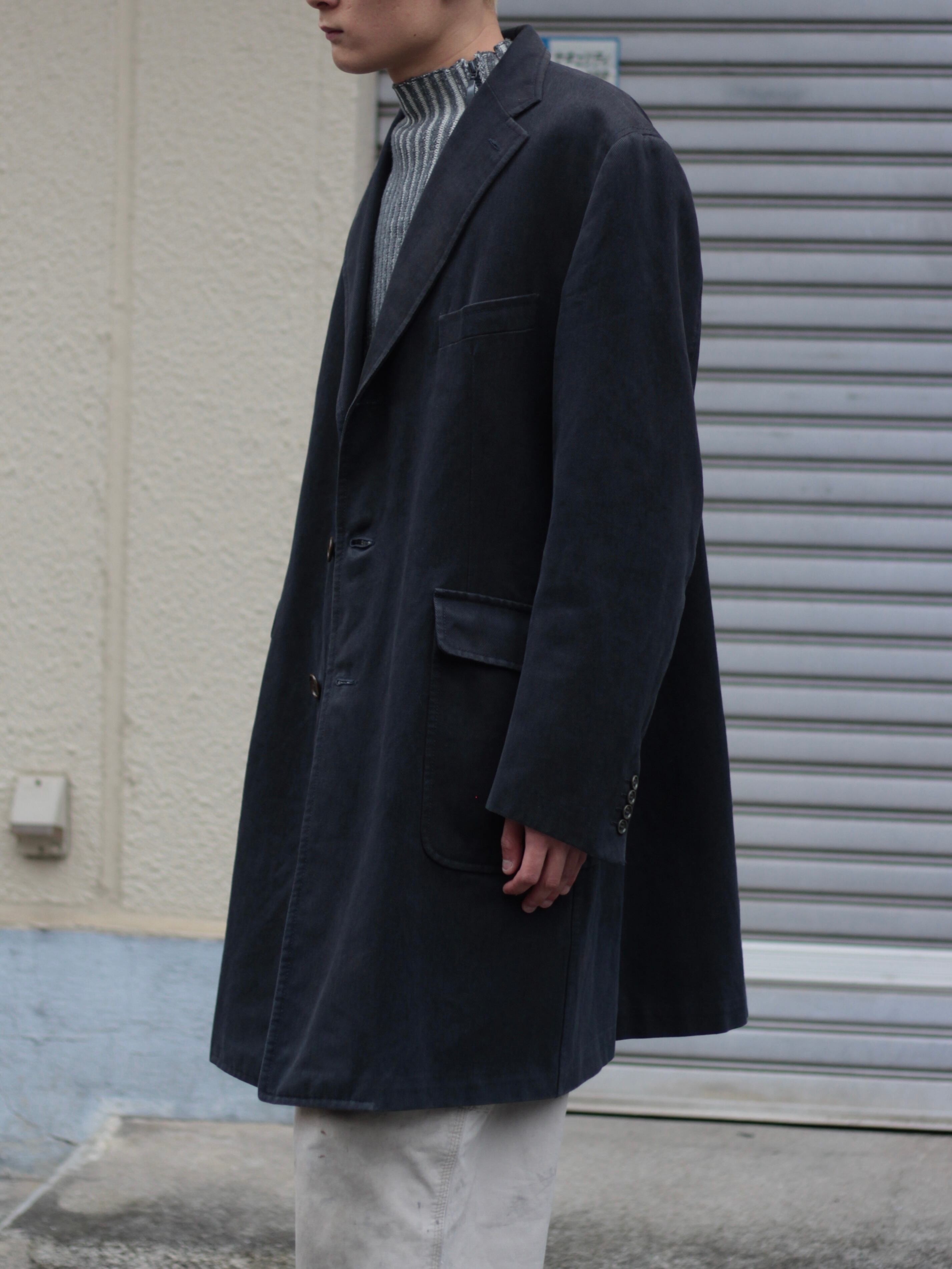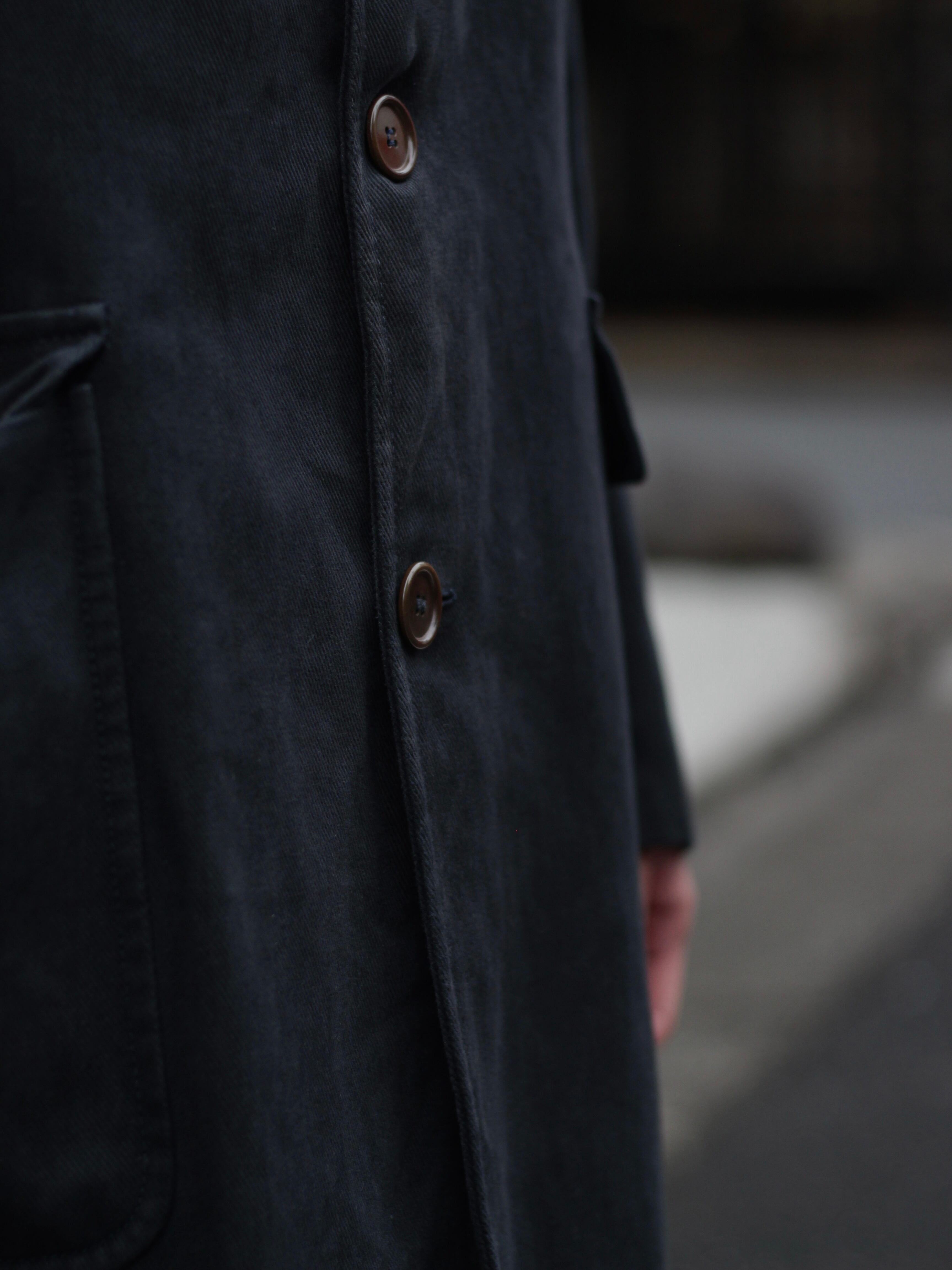 ブラックベースにツイル地のシンプルな佇まいですが、存在感あるコートです。