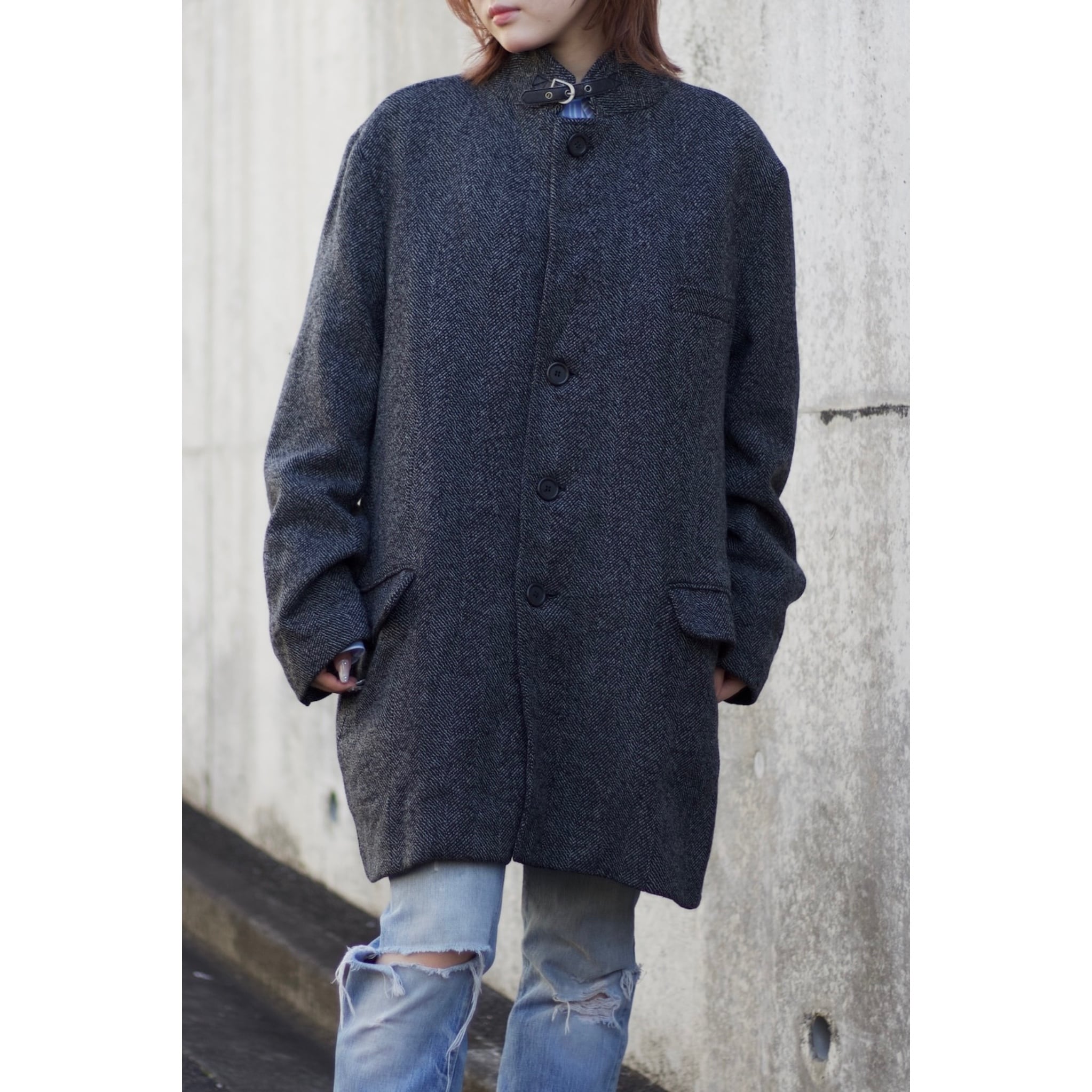 "BALMAIN" herringbone hi-neck chester coat【MM-0794】