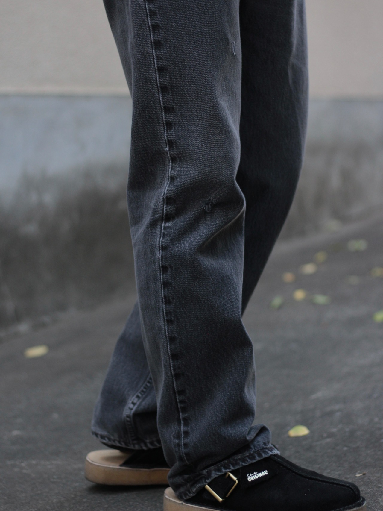 全体的にフェードしつつ、程度良くブラックが残る雰囲気の良いブラックデニム。