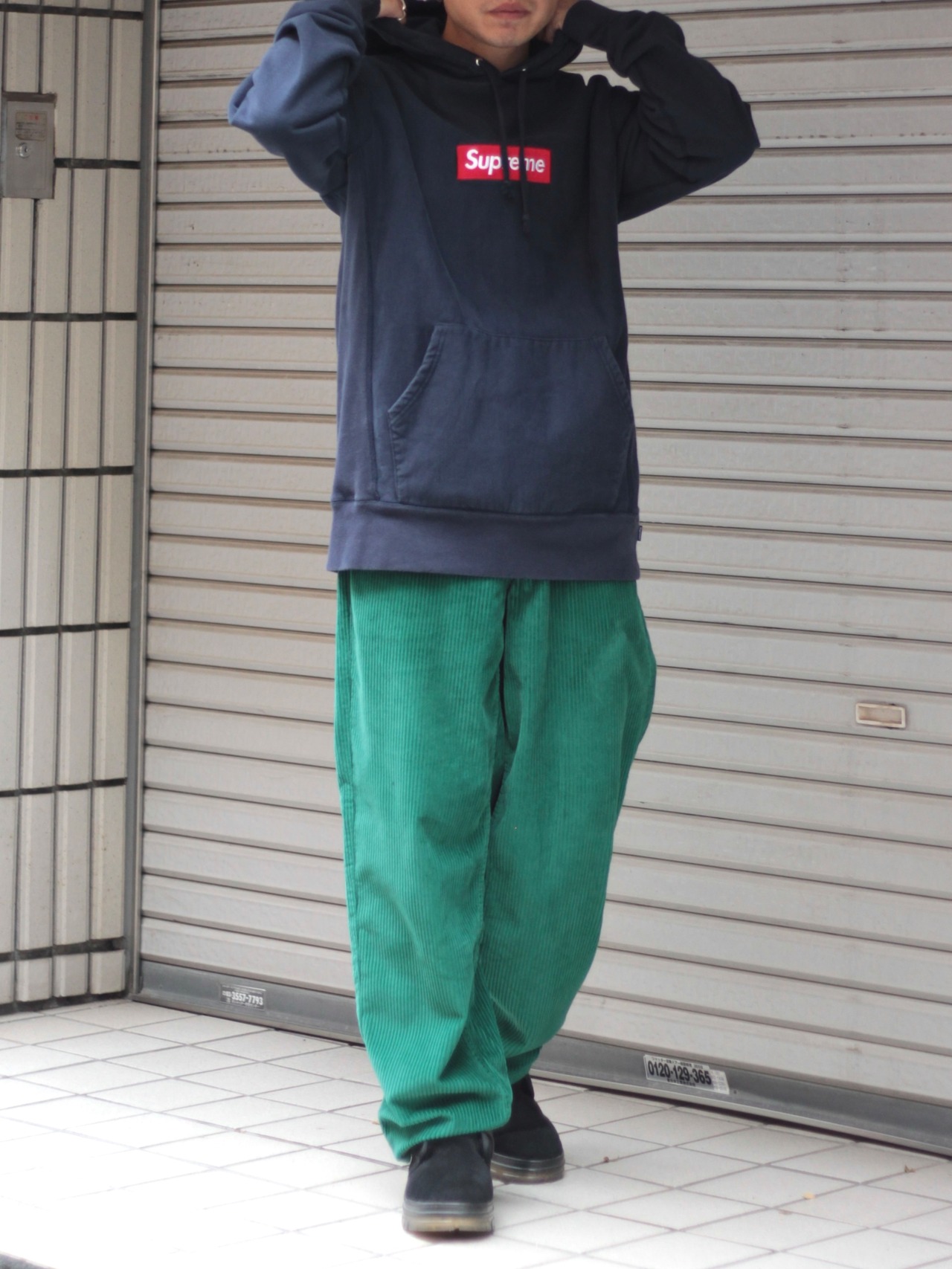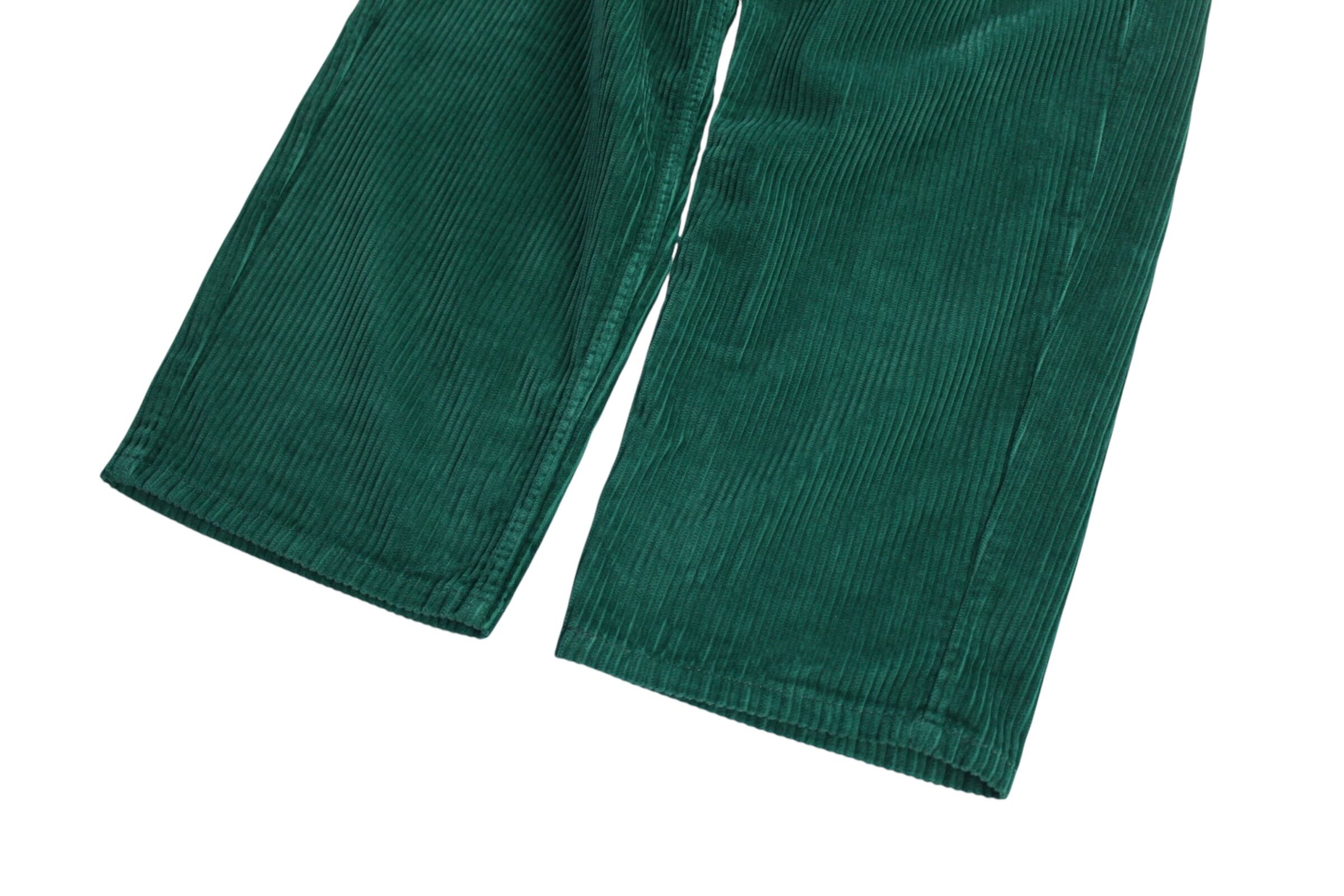 素材には柔らかく起毛感のある良い発色のグリーンコーデュロイを採用。季節感のある温もりと独特の光沢が、シンプルなトップスにも映える一本です。
