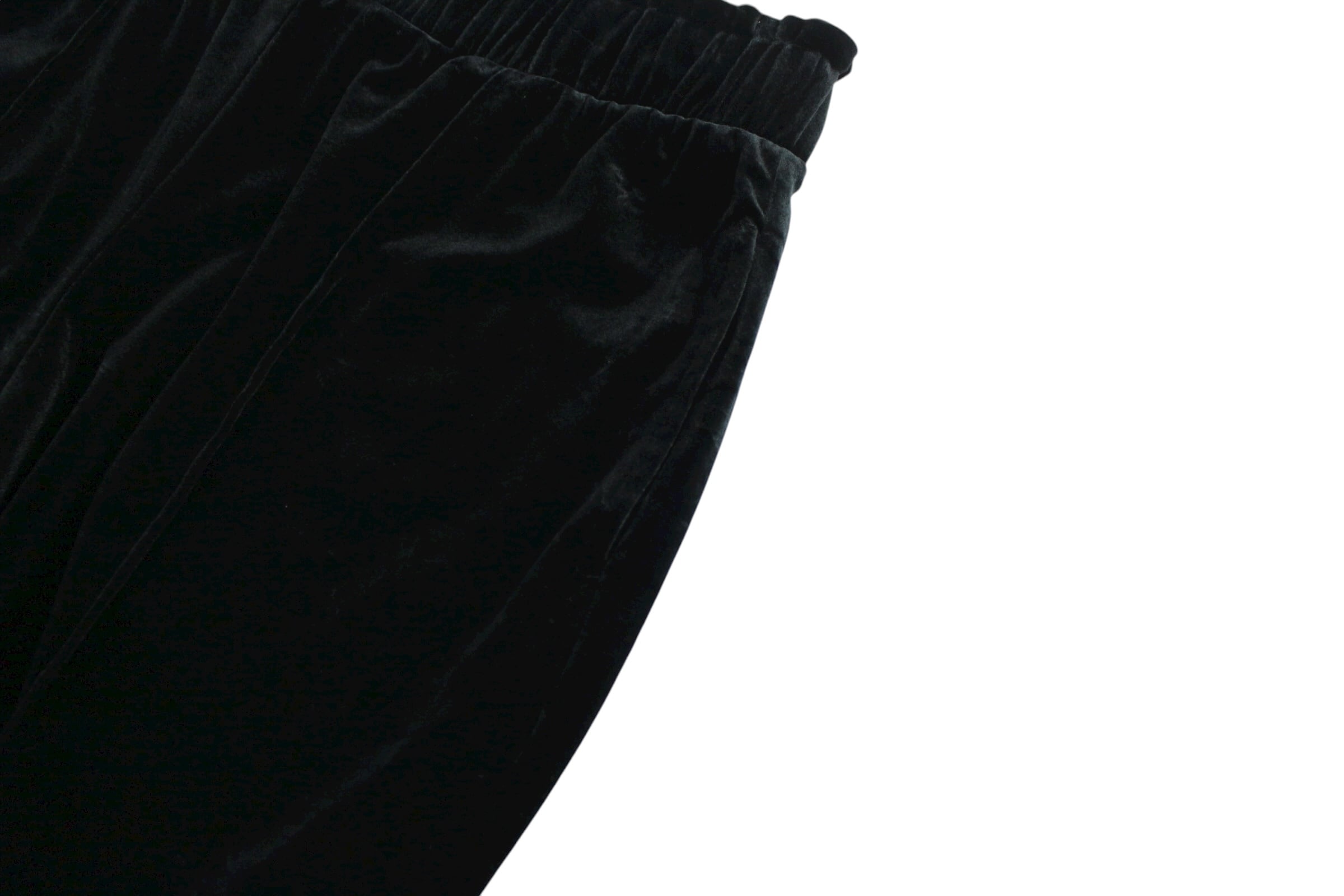 ベロアのワイドイージーパンツが入荷しました。しっかりワイドで裾までたまるものとなるとなかなか見つからないのが特徴。