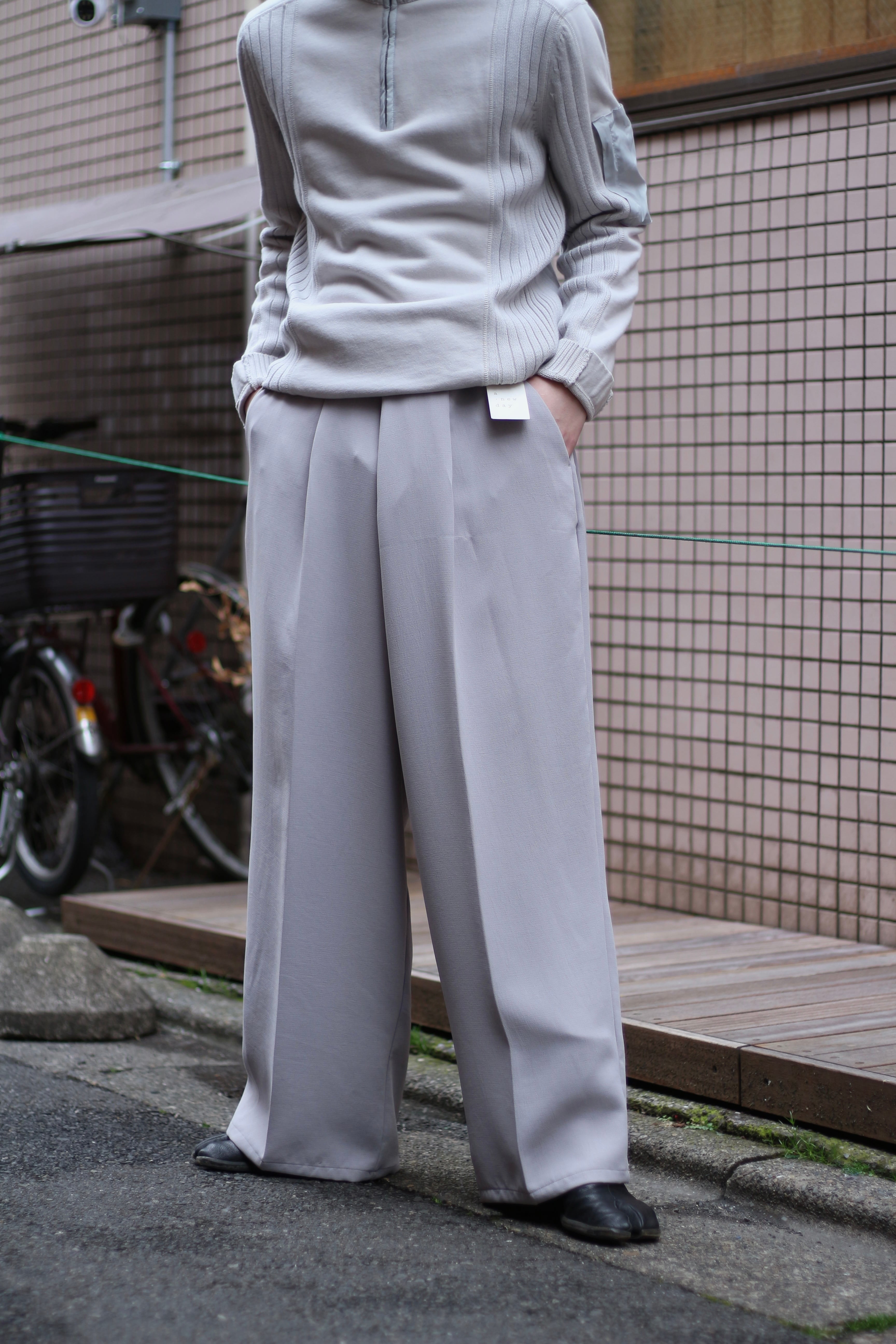 DEAD STOCK right gray big waist Toromi wide slacks【OTTK-4760】