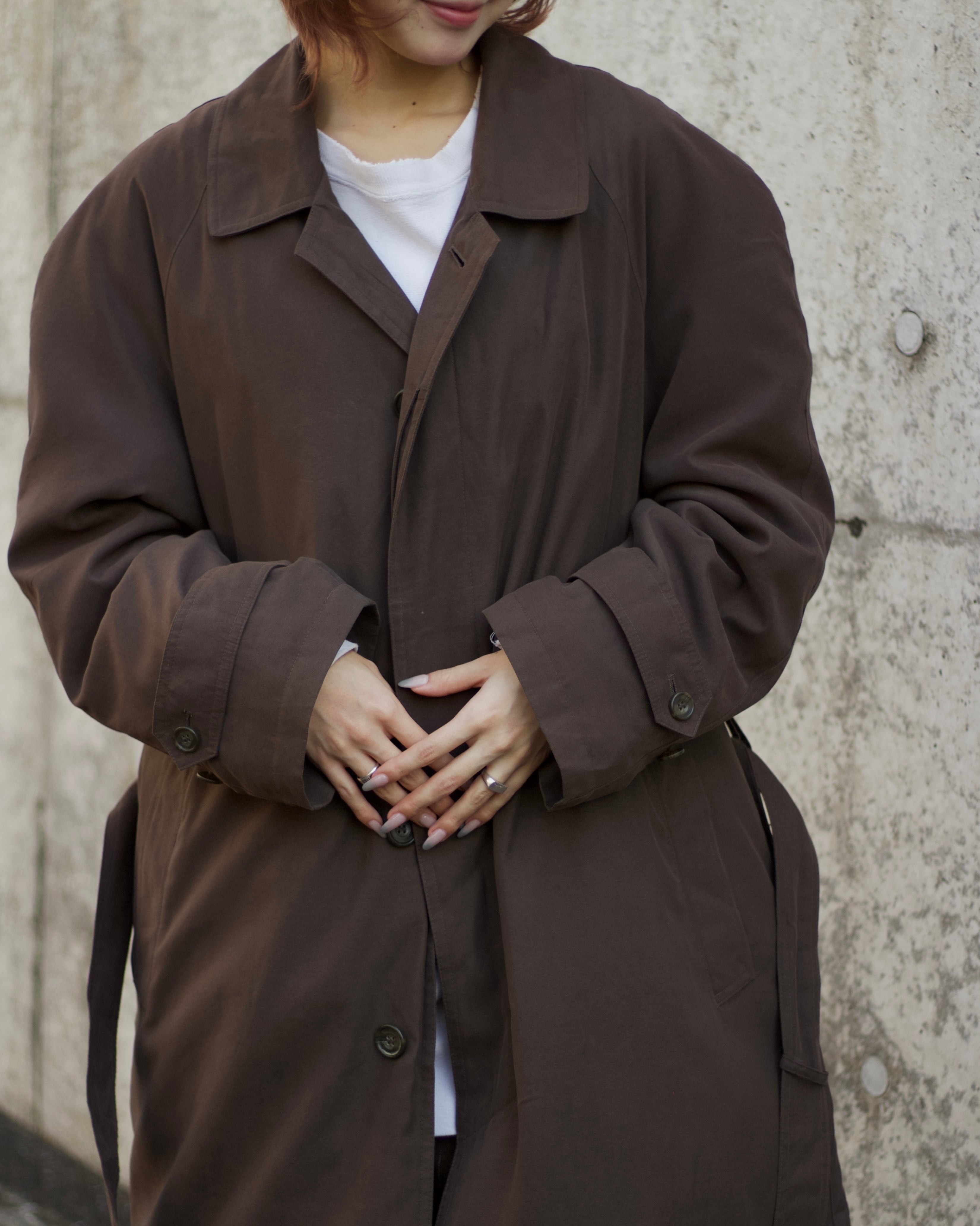 1990s smooth fabric stand-fall collar coat【MM-0799】