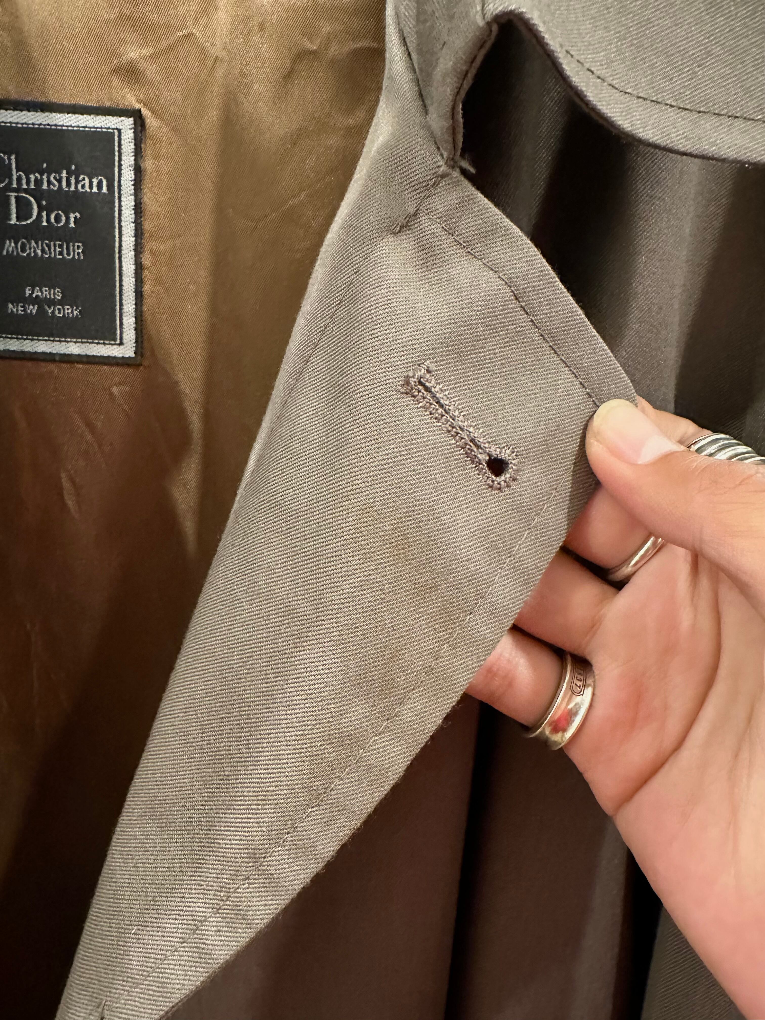 1980s vintage "Christian Dior" cotton gabardine soutain collar coat with belt liner