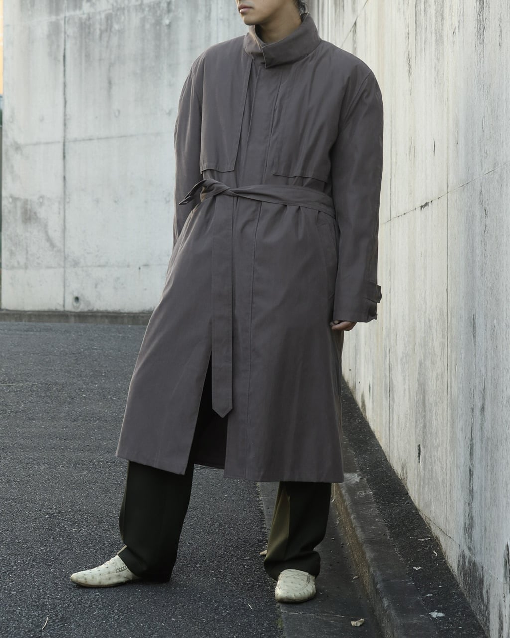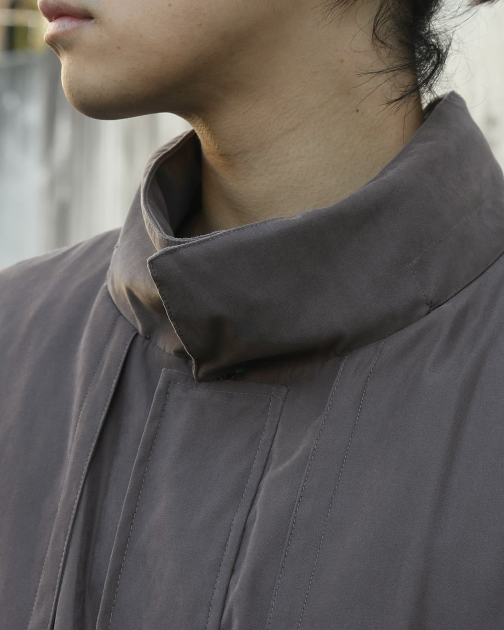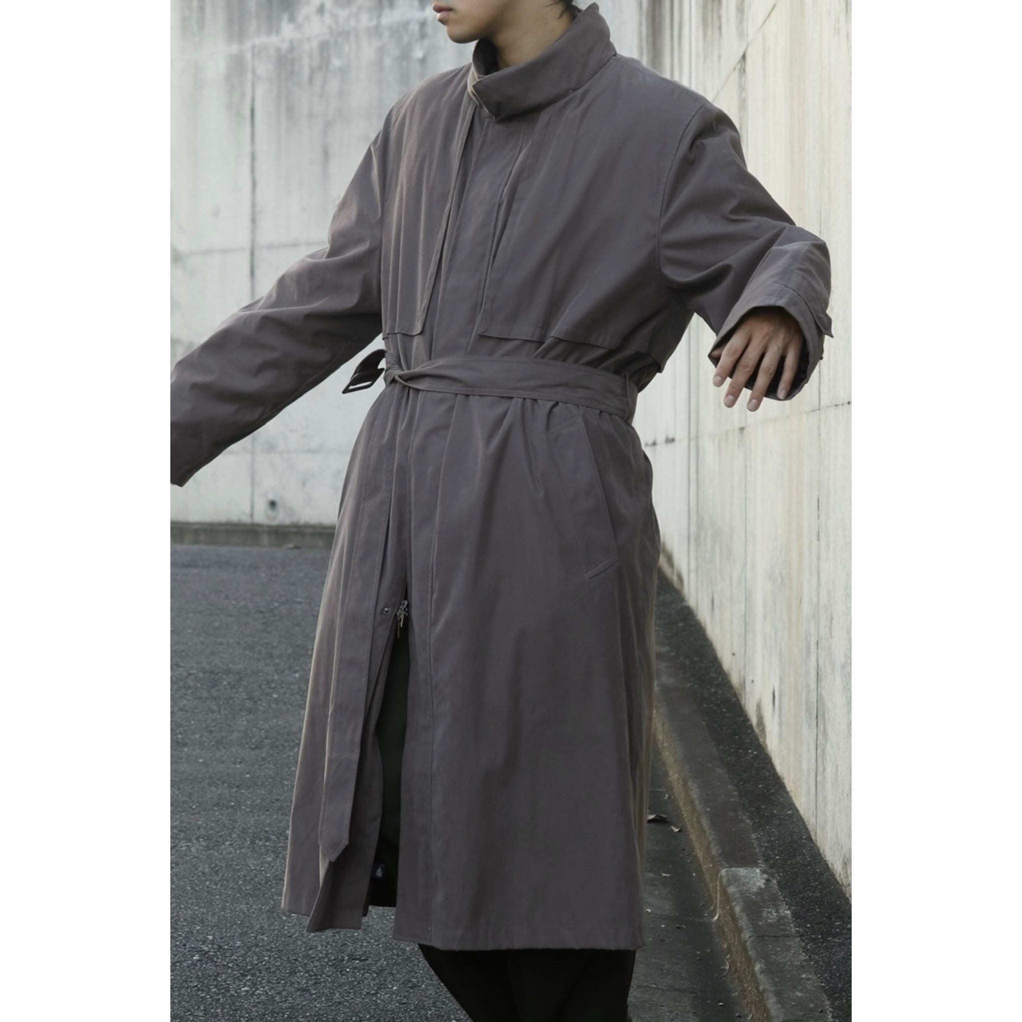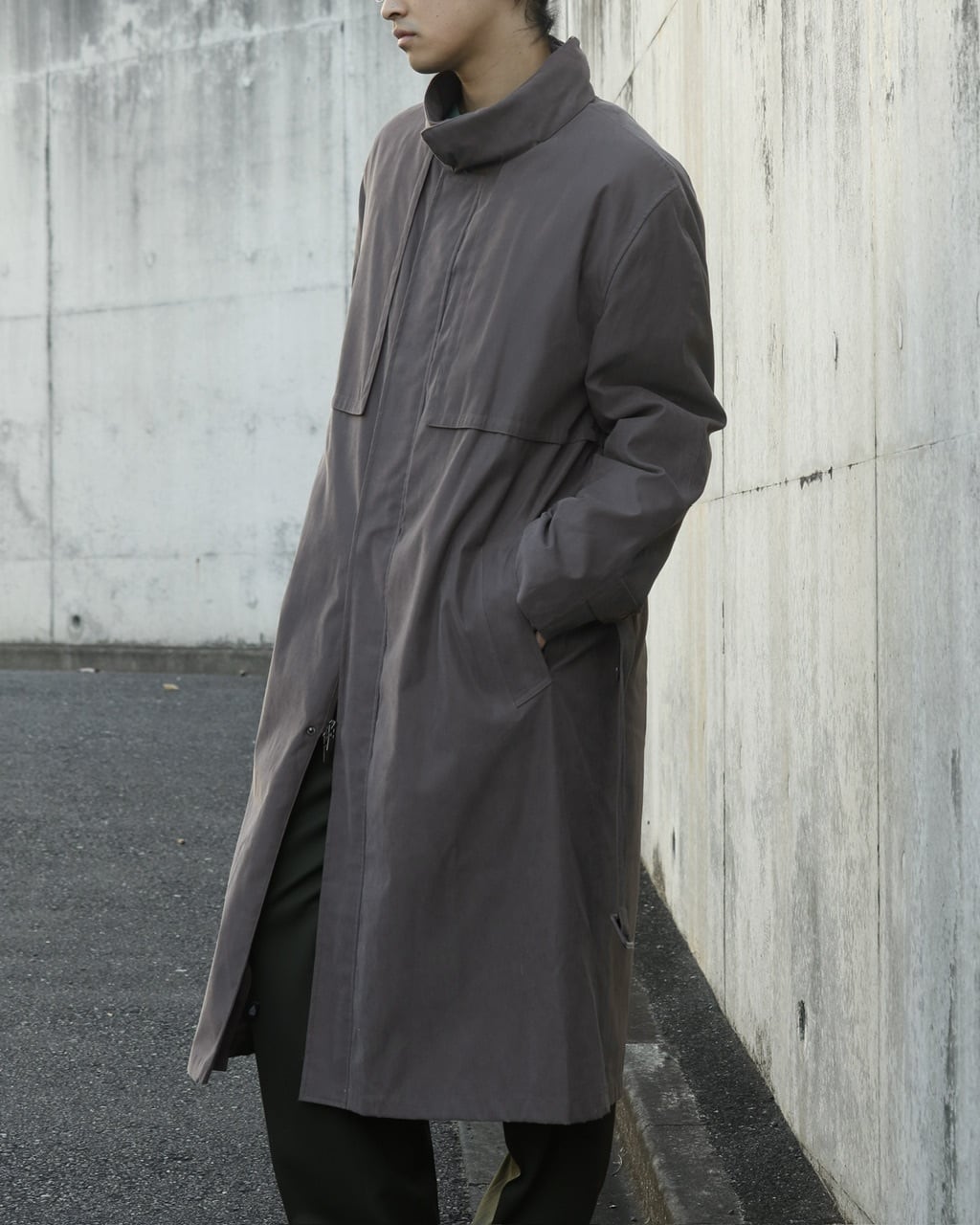 ハイネック仕様のロングコート。