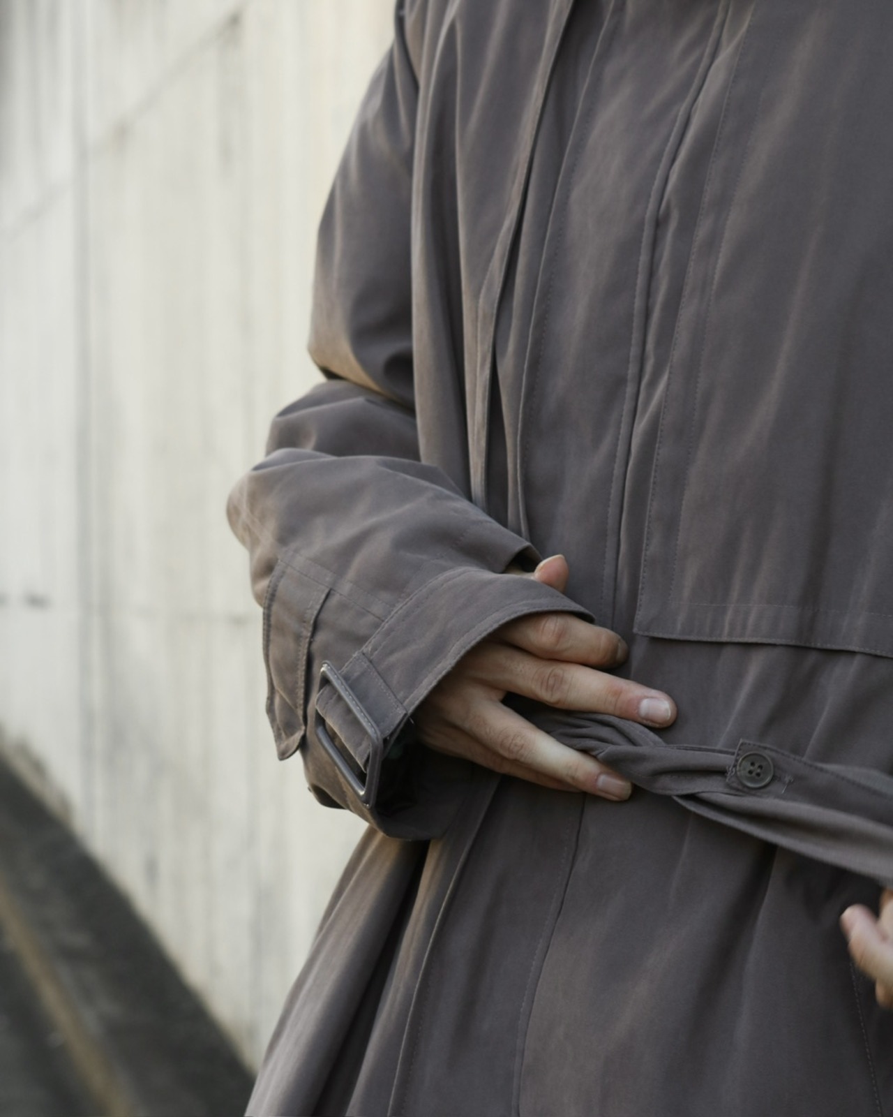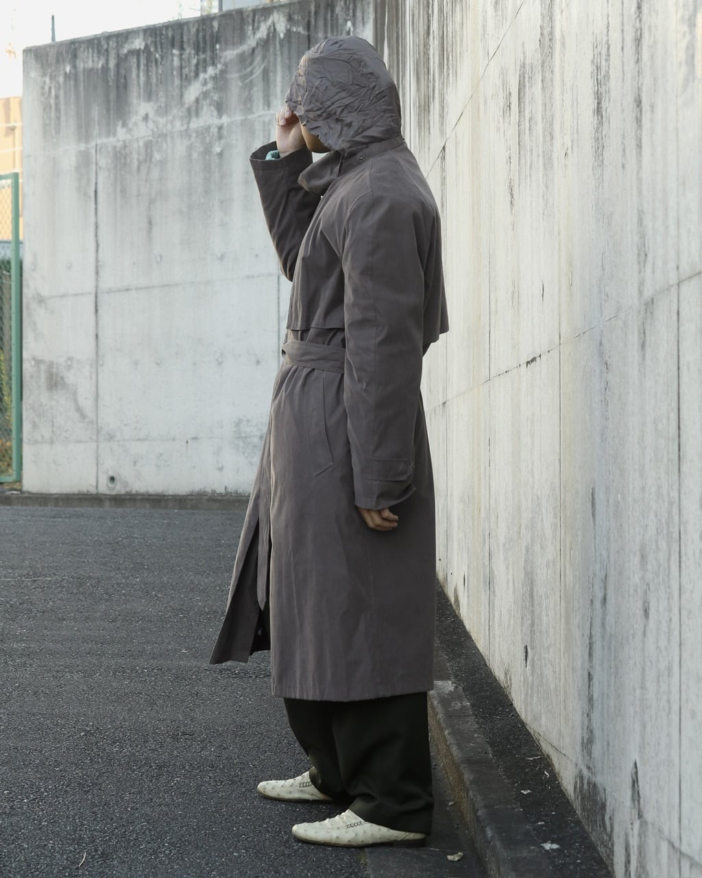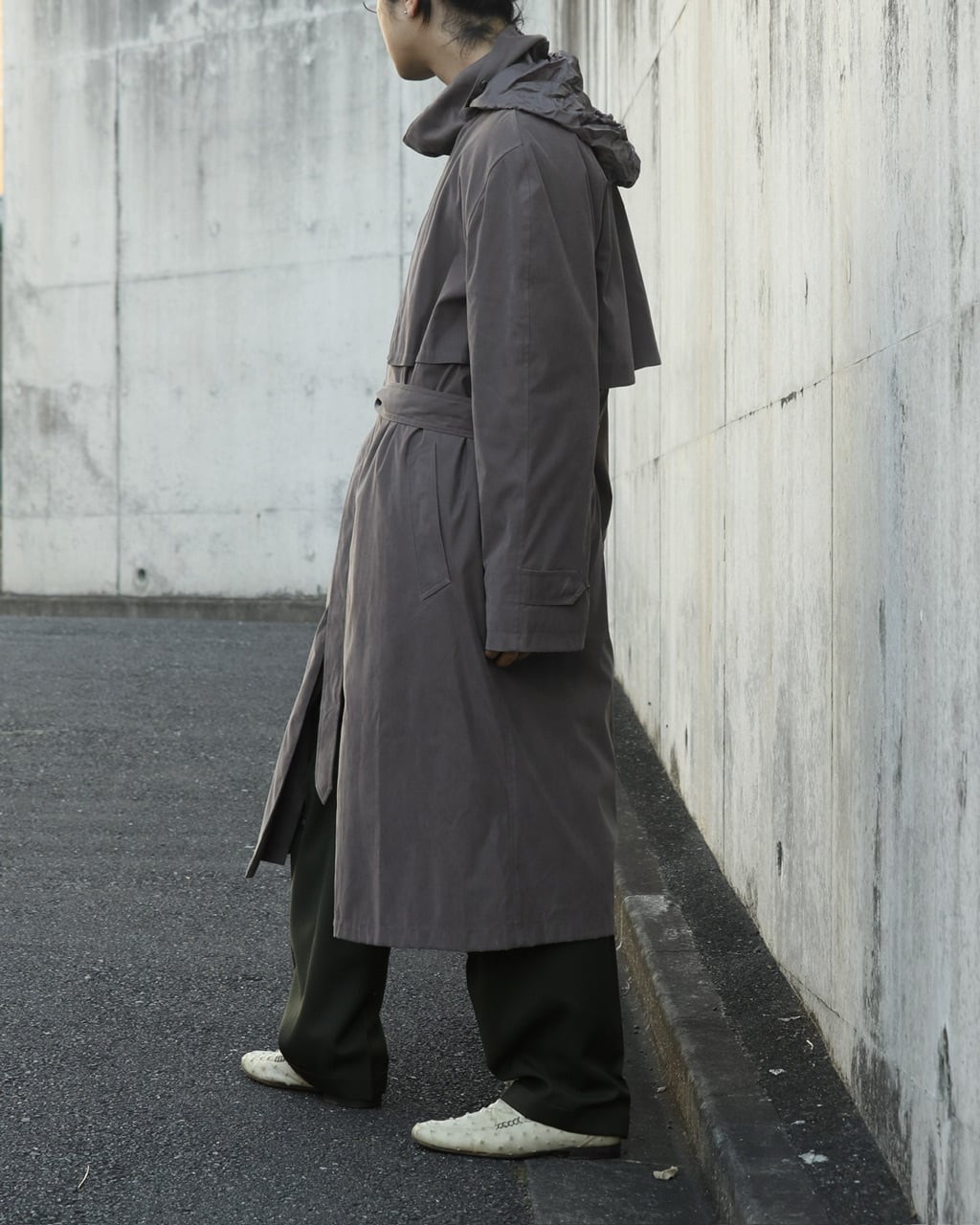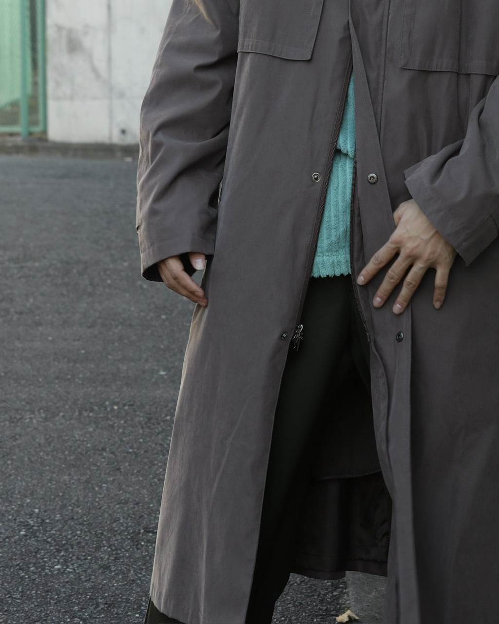 ハイネック仕様のロングコート。