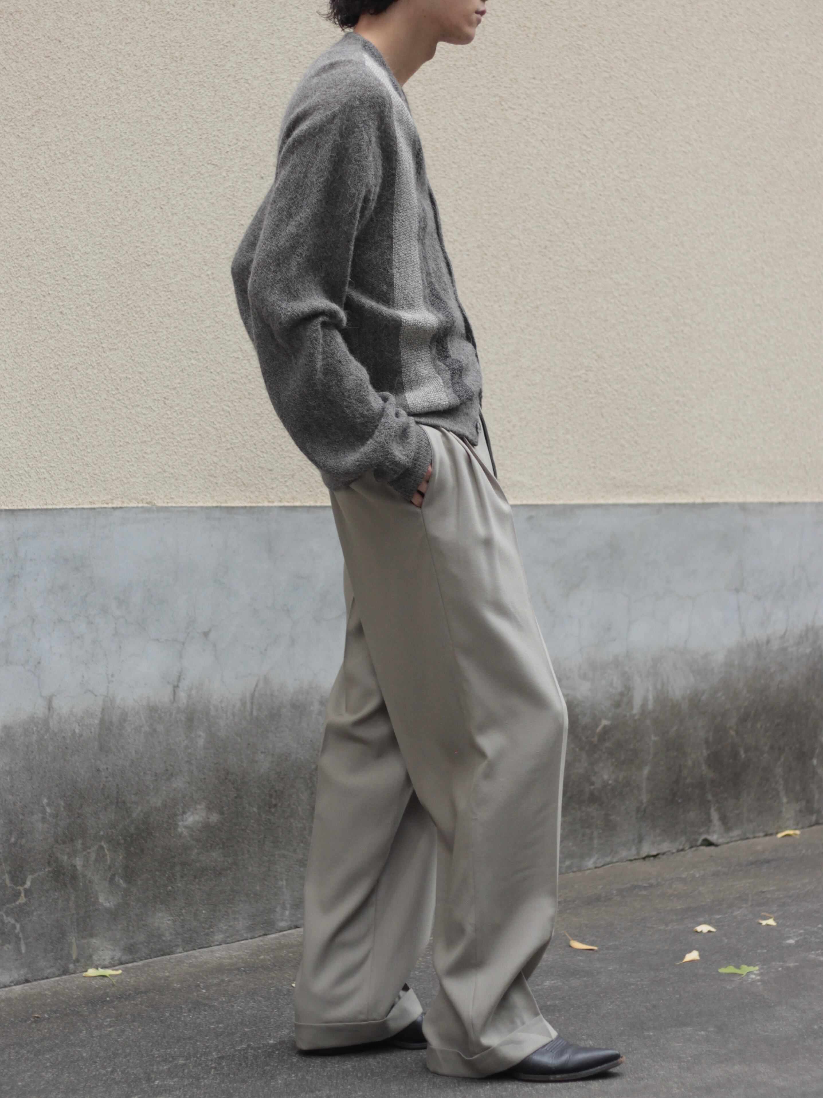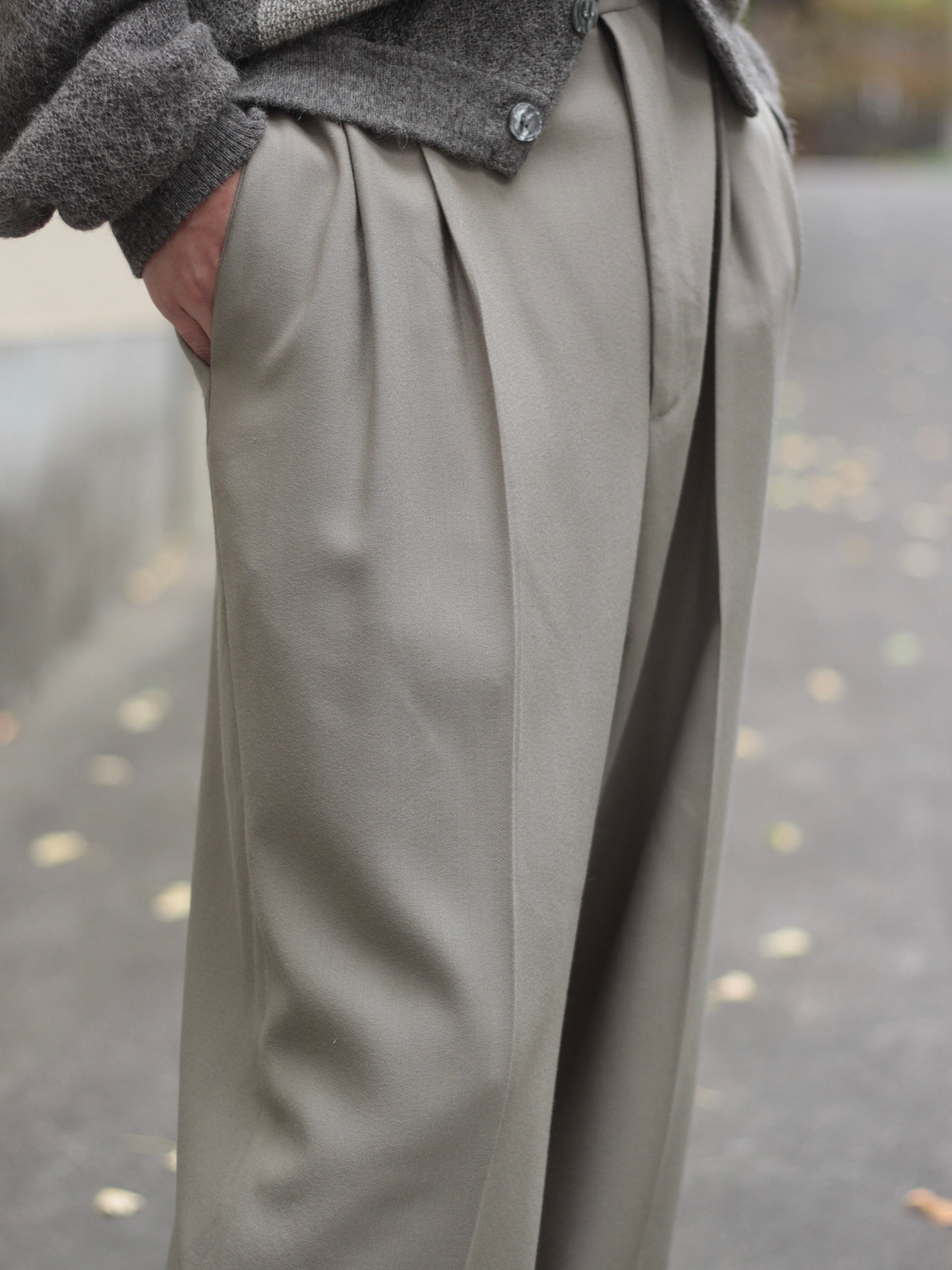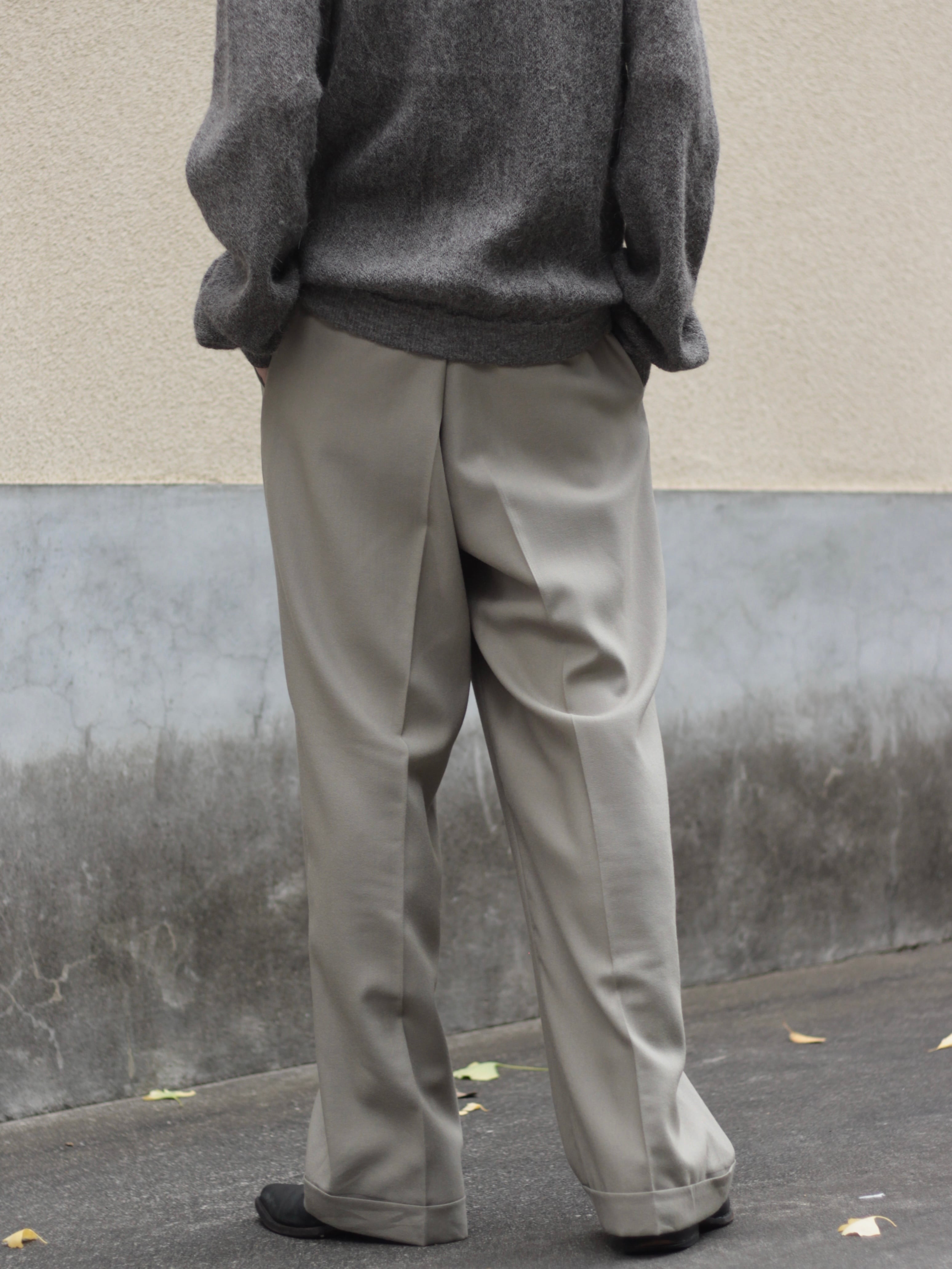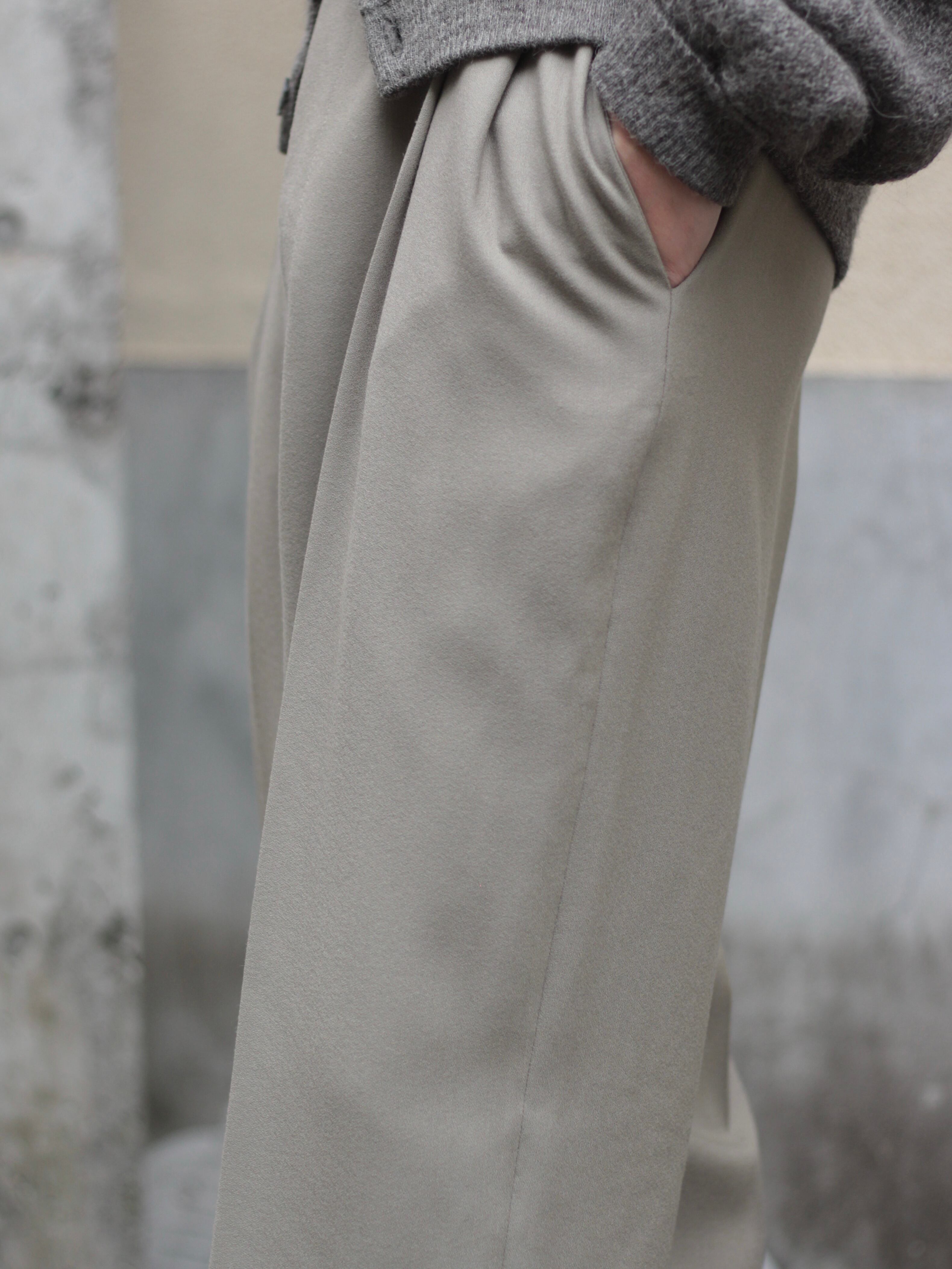 滑らかでトロミのある生地感。腰回りに深く入った2タックから、裾に向かってトロンと落ちる素晴らしい生地感。