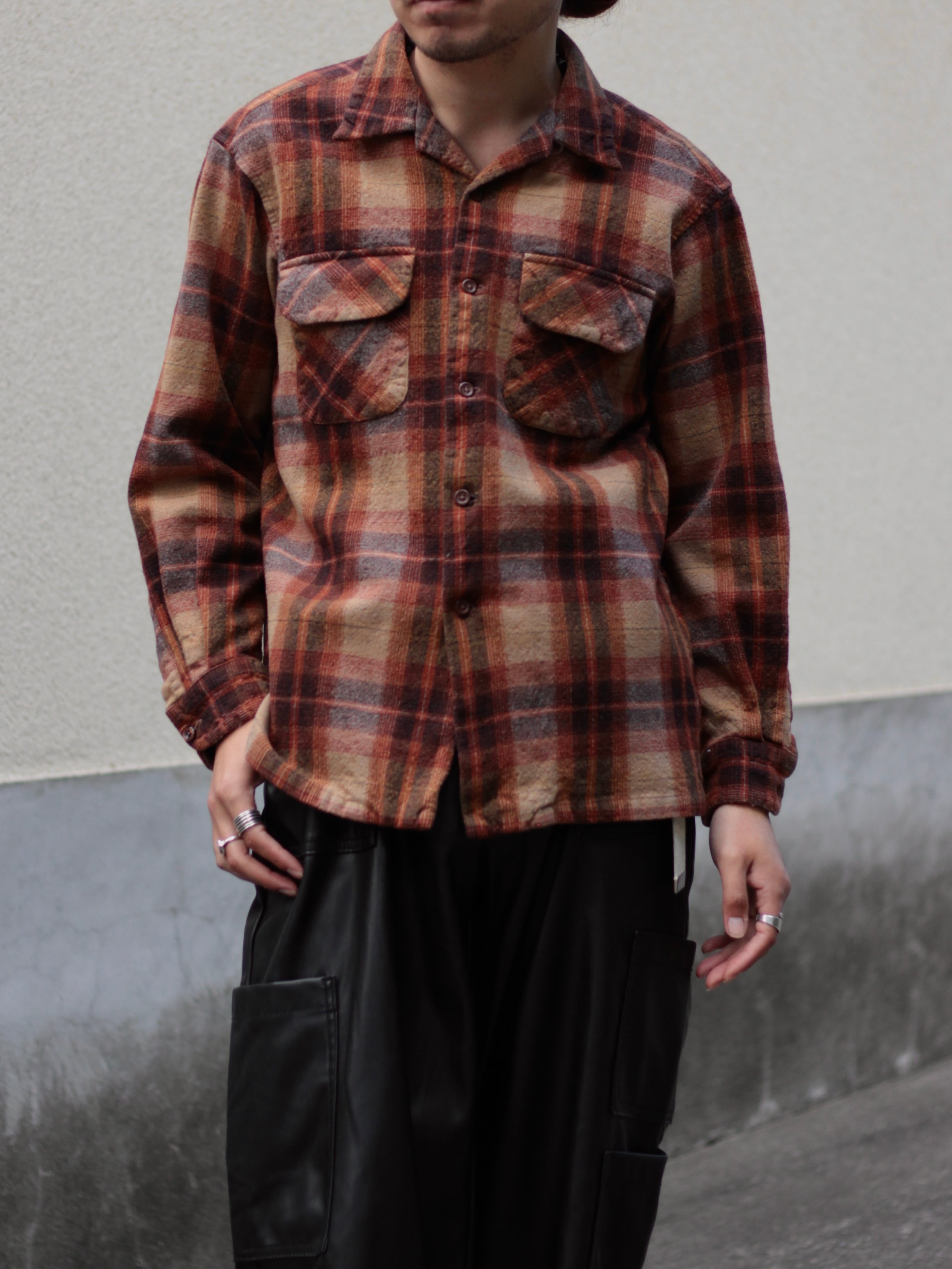 1990s vintage "PENDLETON" orange×black color BOARD SHIRT