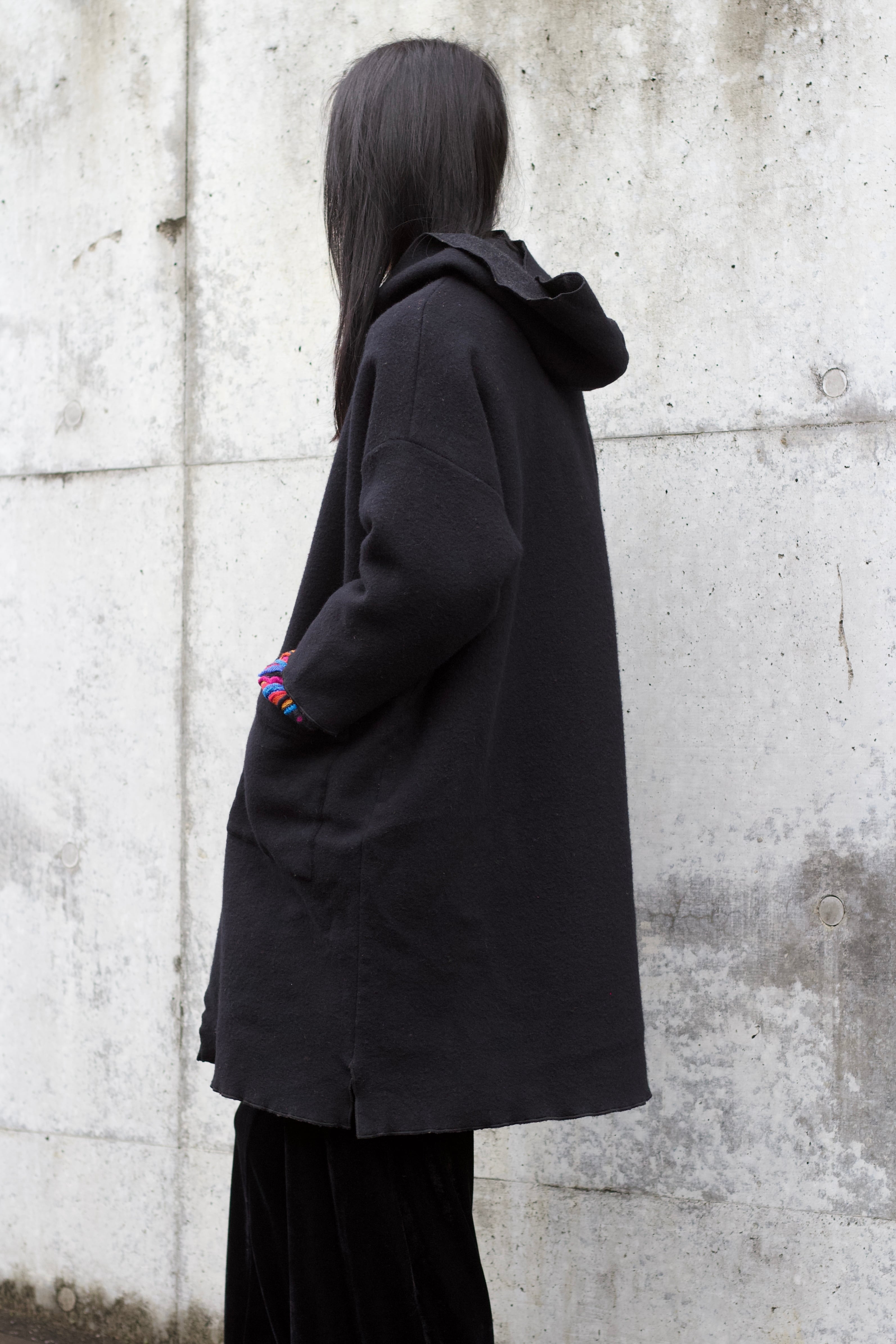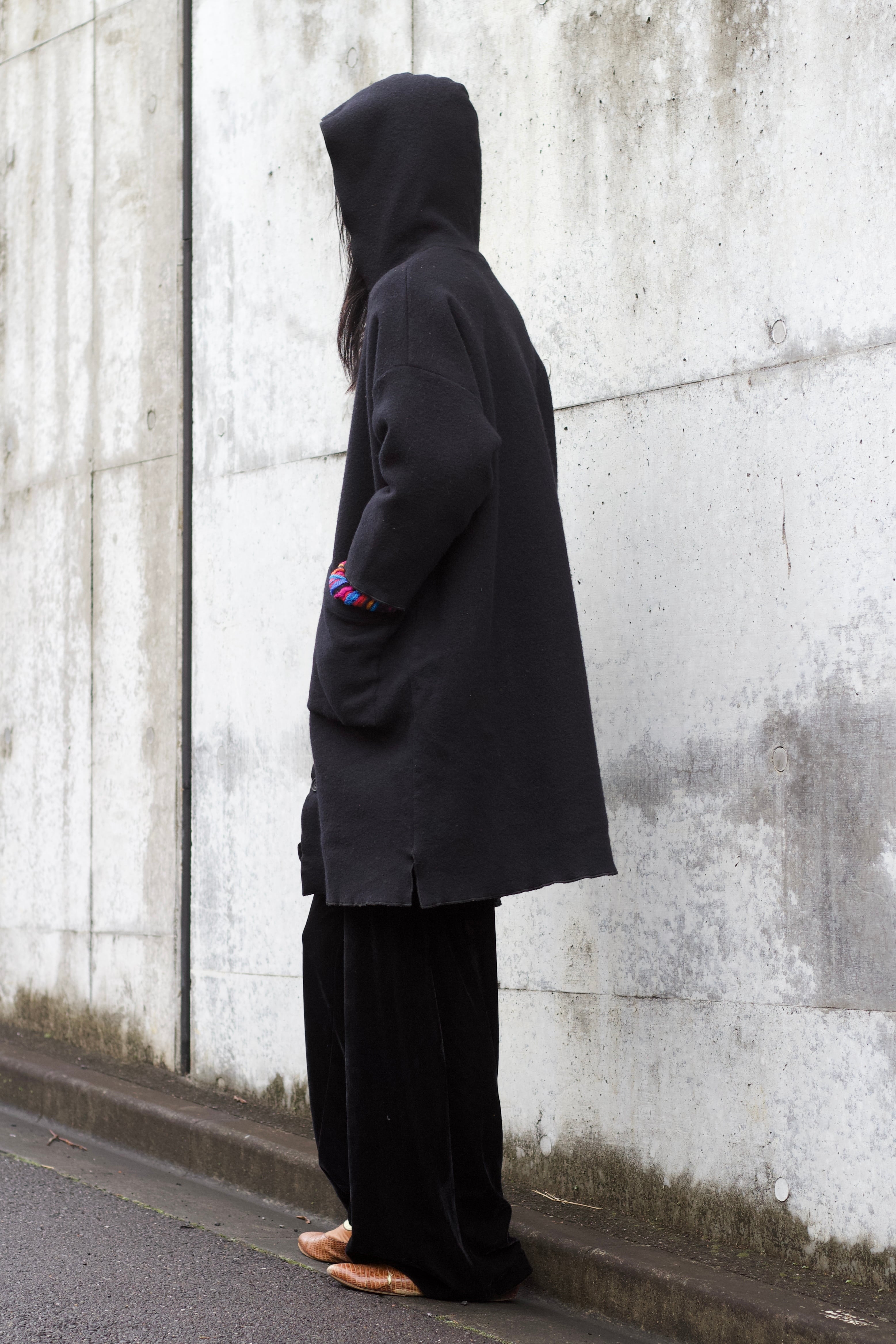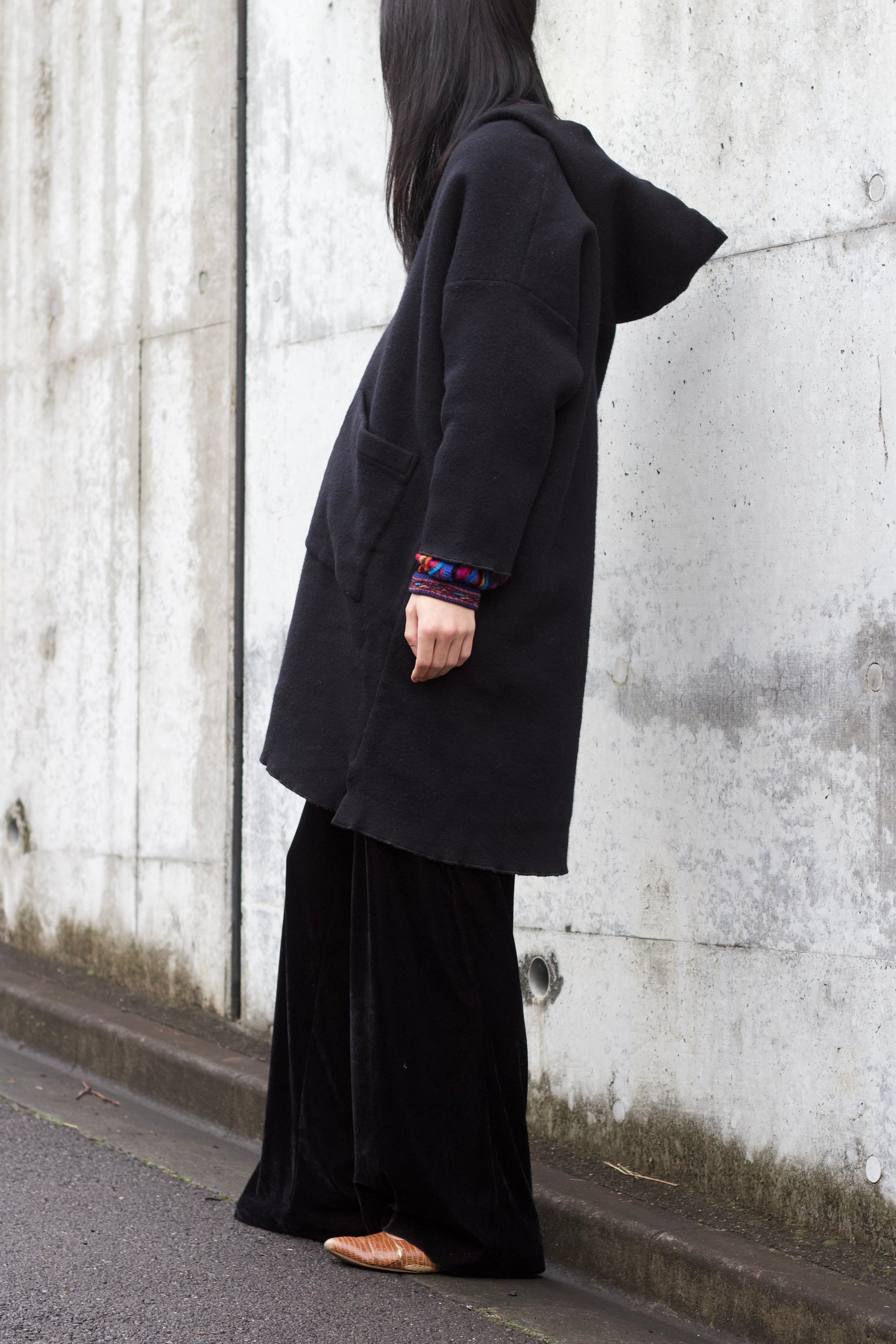 フーディ付ウールコートです。