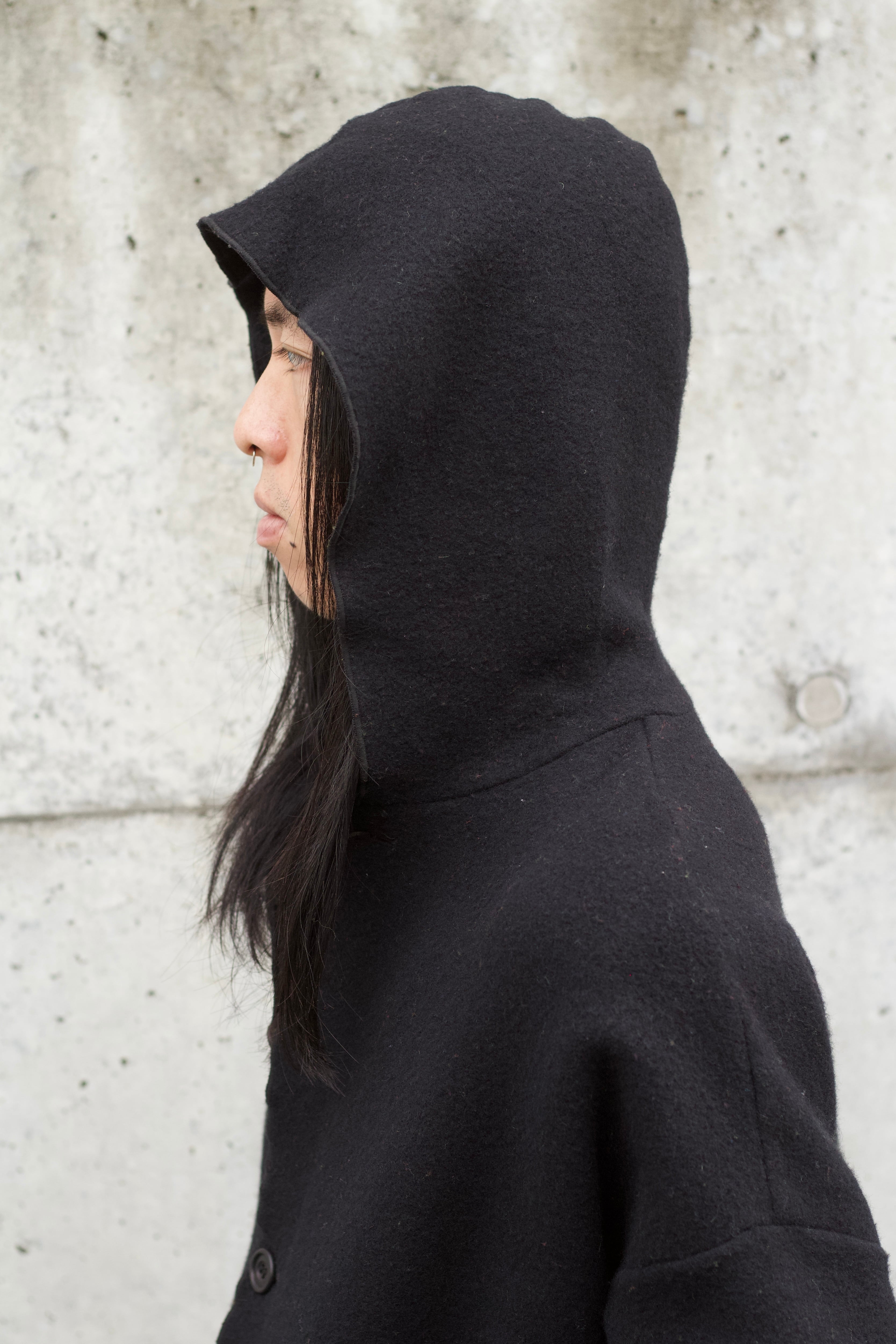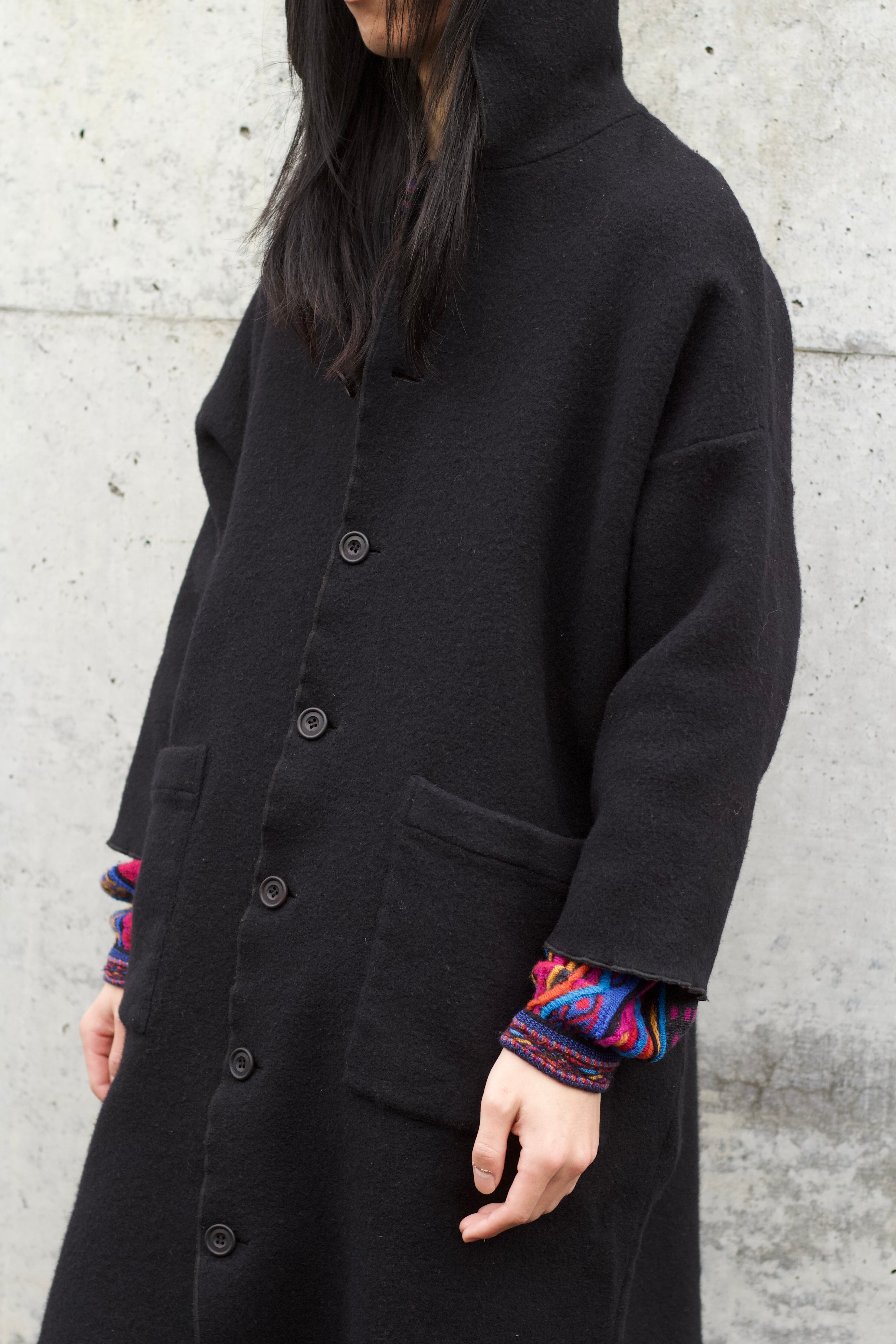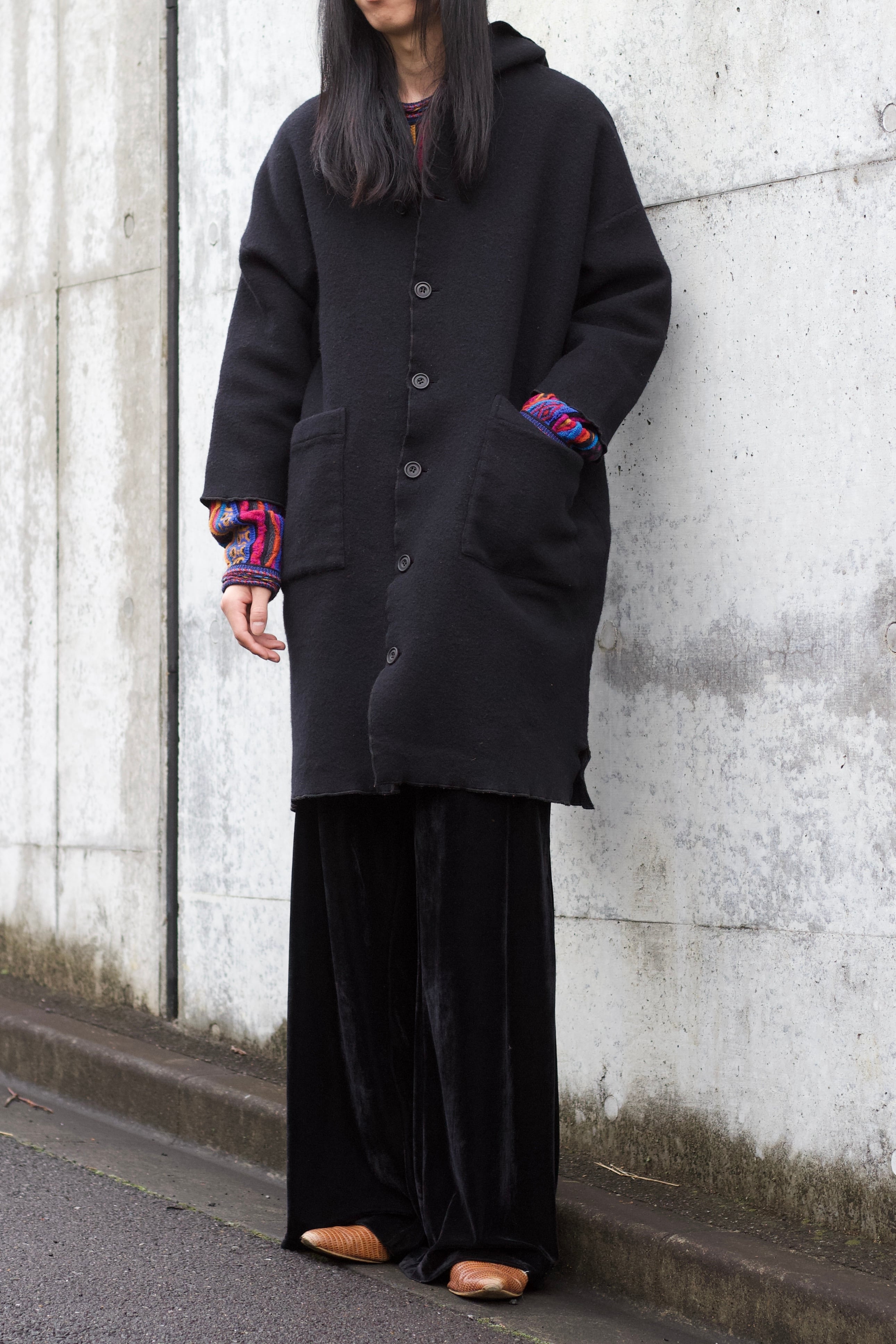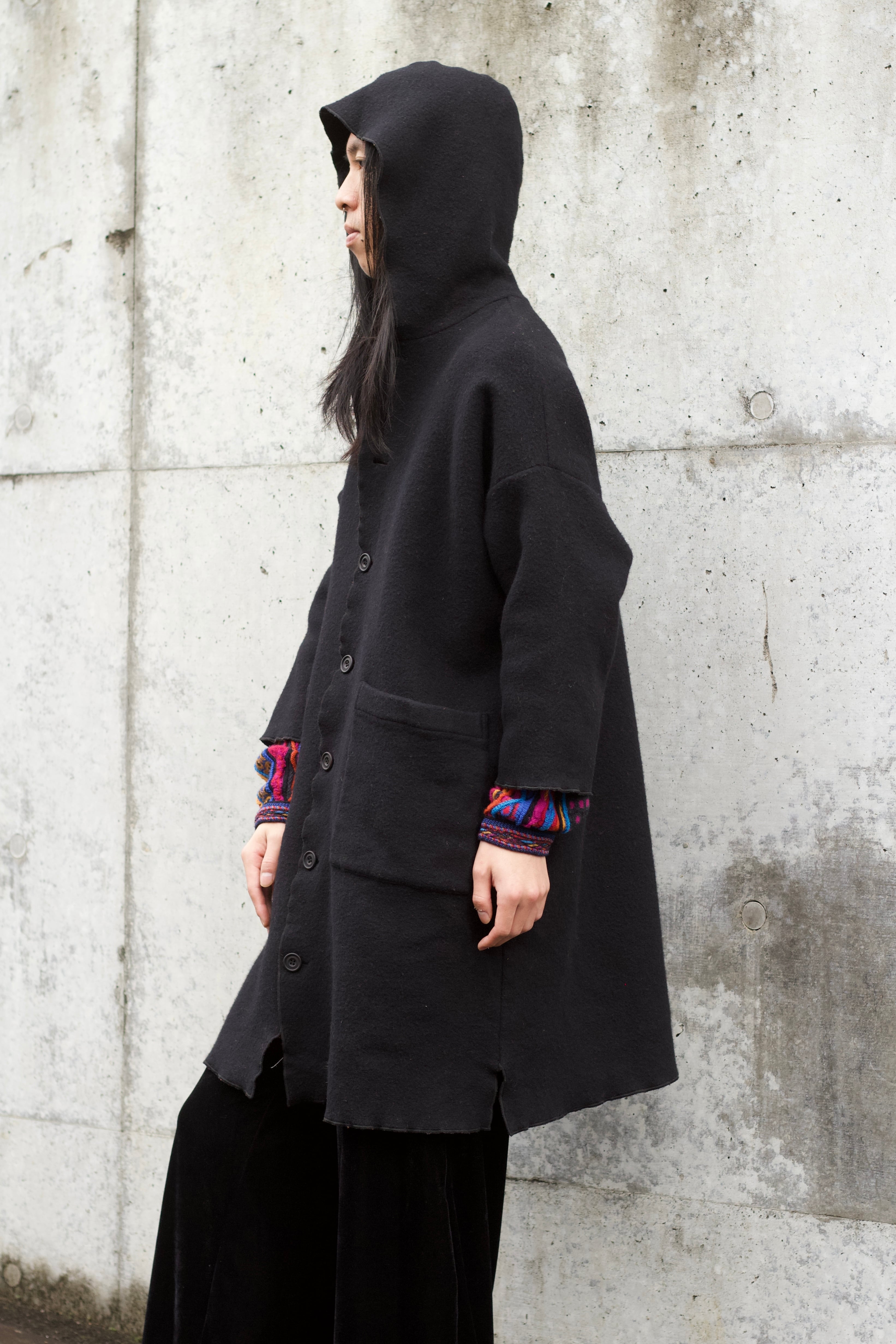 フーディ付ウールコートです。