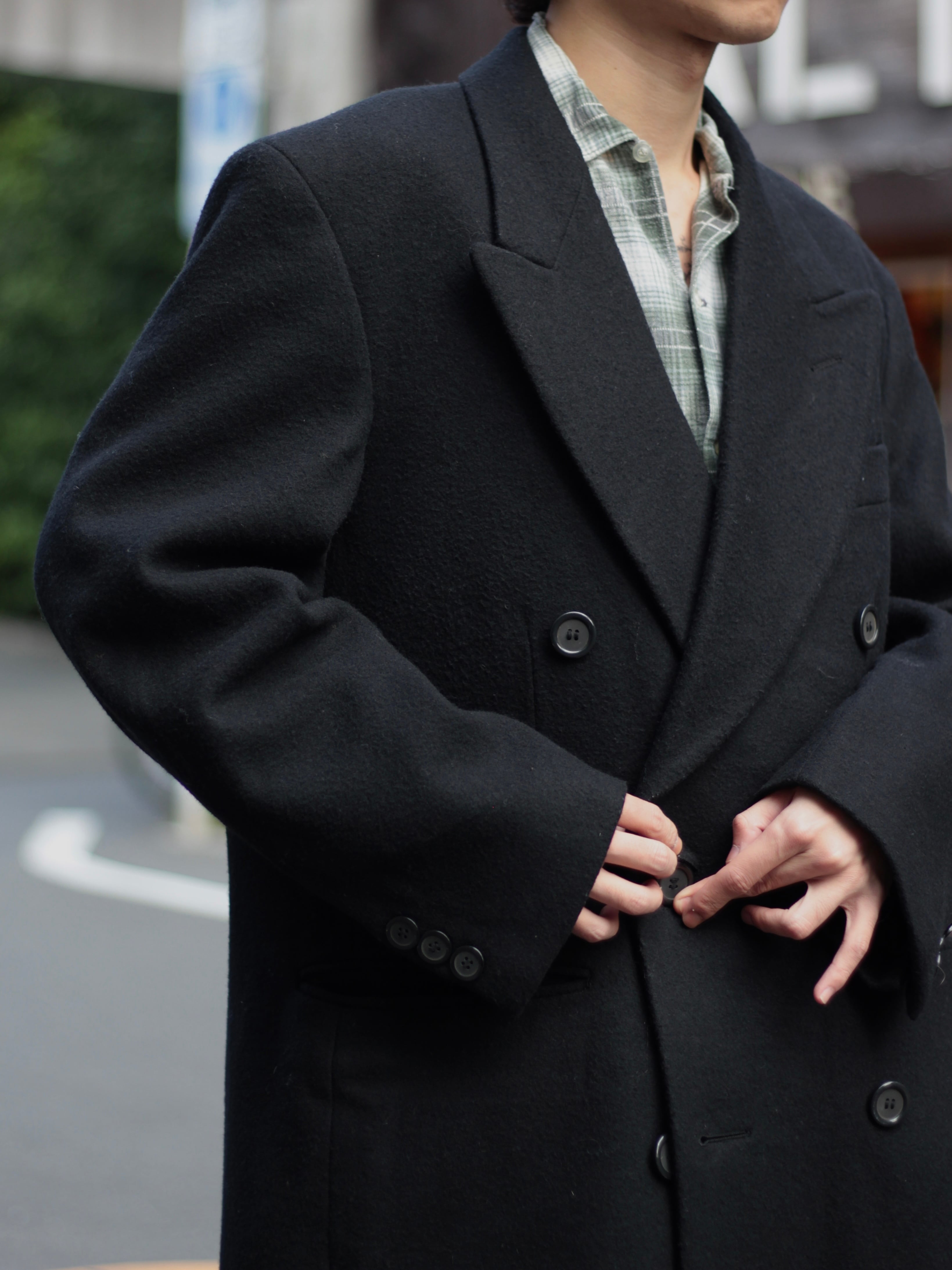 クラシカルなダブルのチェスターコートです。