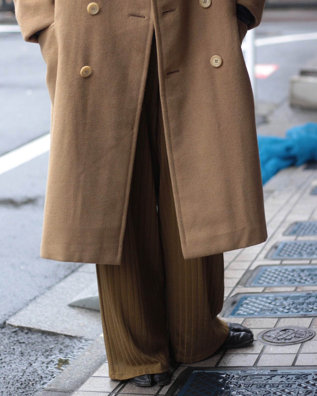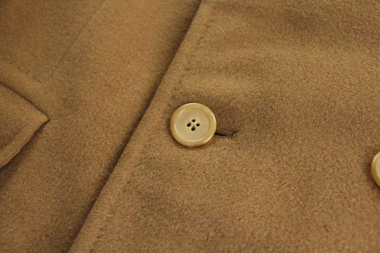 ダブルブレストチェスター仕様のクラシカルなデザイン。年代特有のピークドラペルにもグッときます☺︎