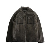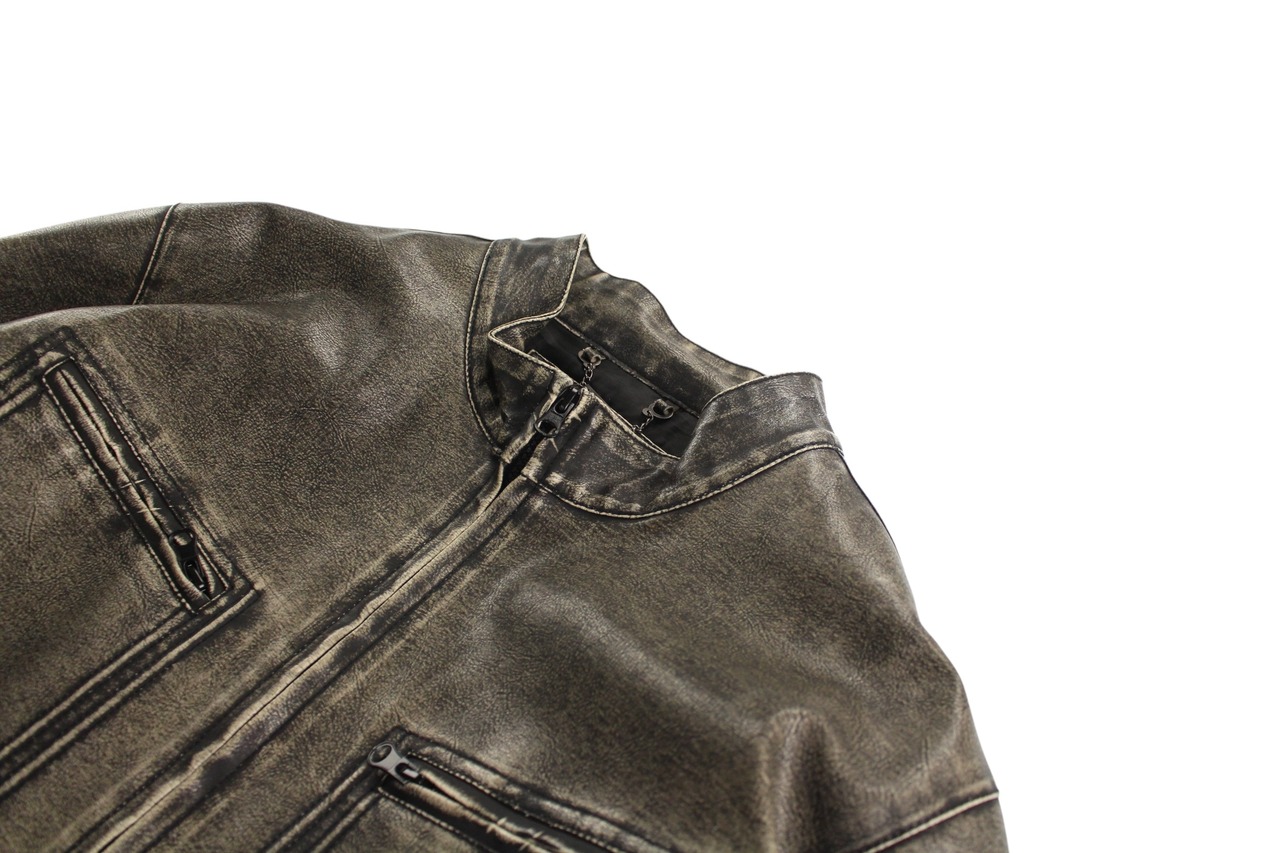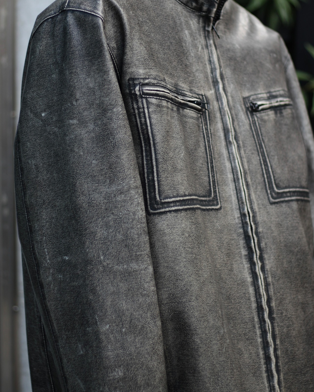 1990s faux leather fade design zip up blouson 【OT-20001】