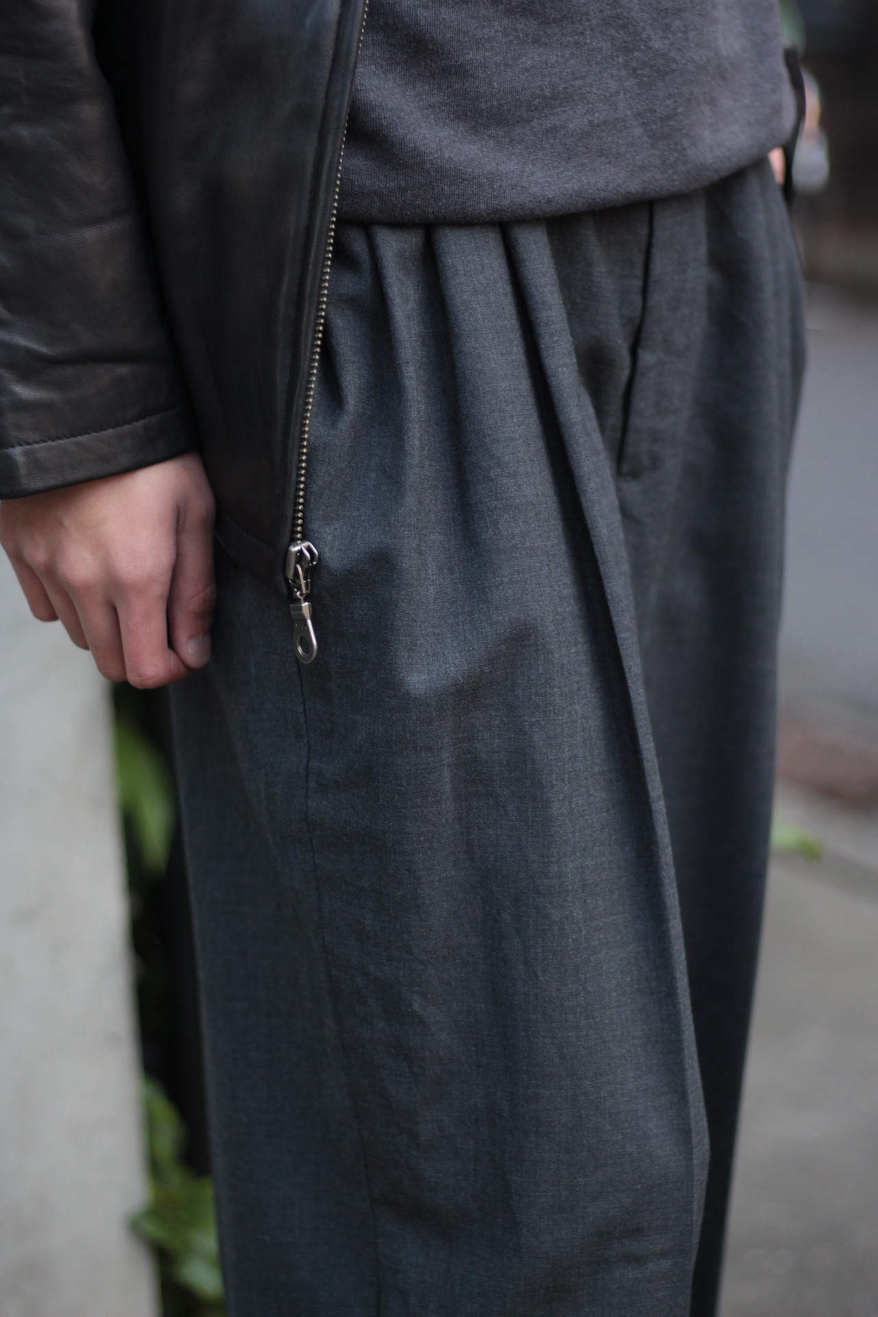 1990's "GIVENCHY" charcoal gray wool 3-tuck wide slacks made in USA【OT-20006】