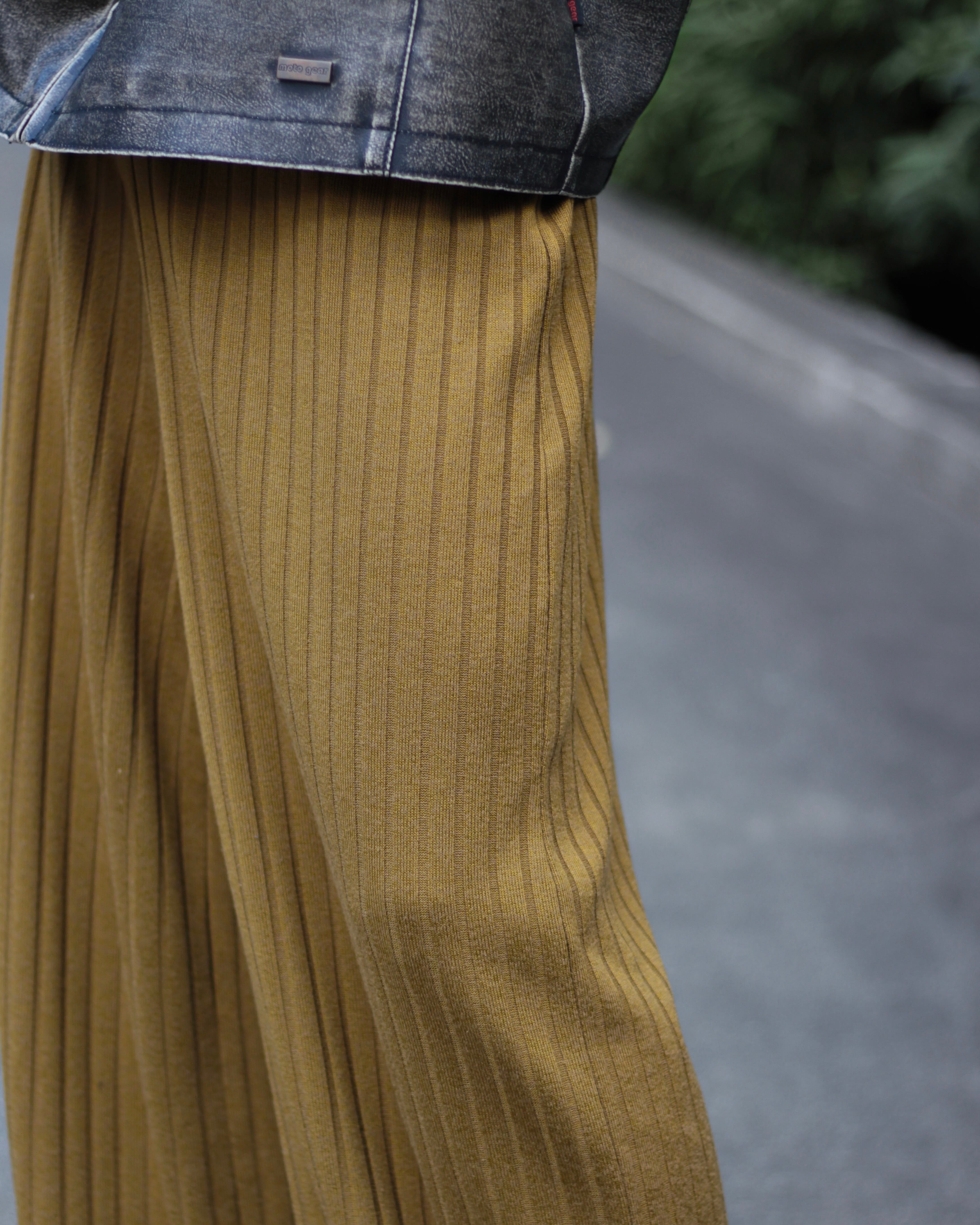 裾幅が広くワイドでストレート。畝のあるファブリックで雰囲気も出る一本。