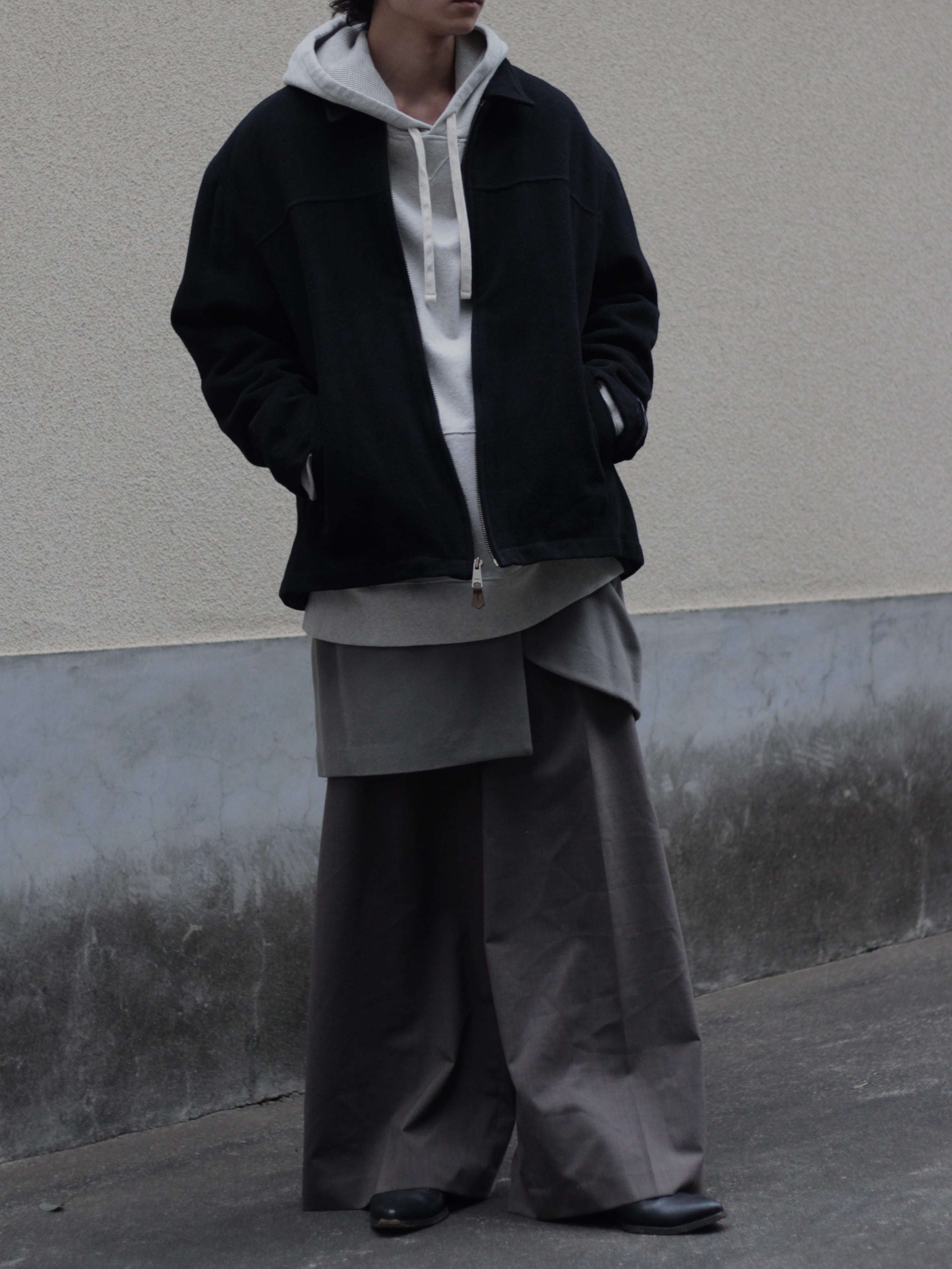 形は身幅,腕周りはゆったりとパンツは選ばないボックス型。