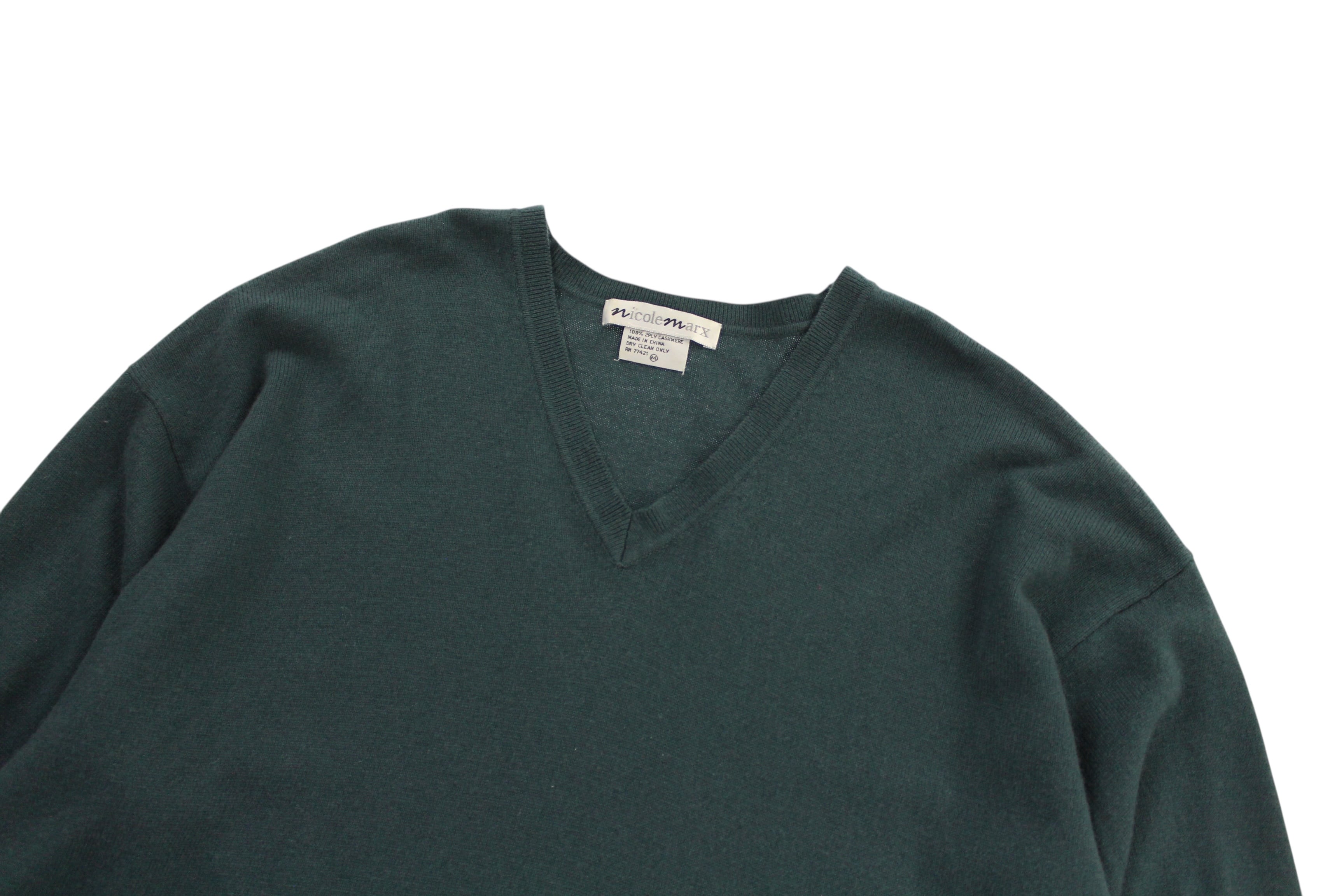 100% 2PLY cashmere deep green color v-neck sweater【CU-8856】