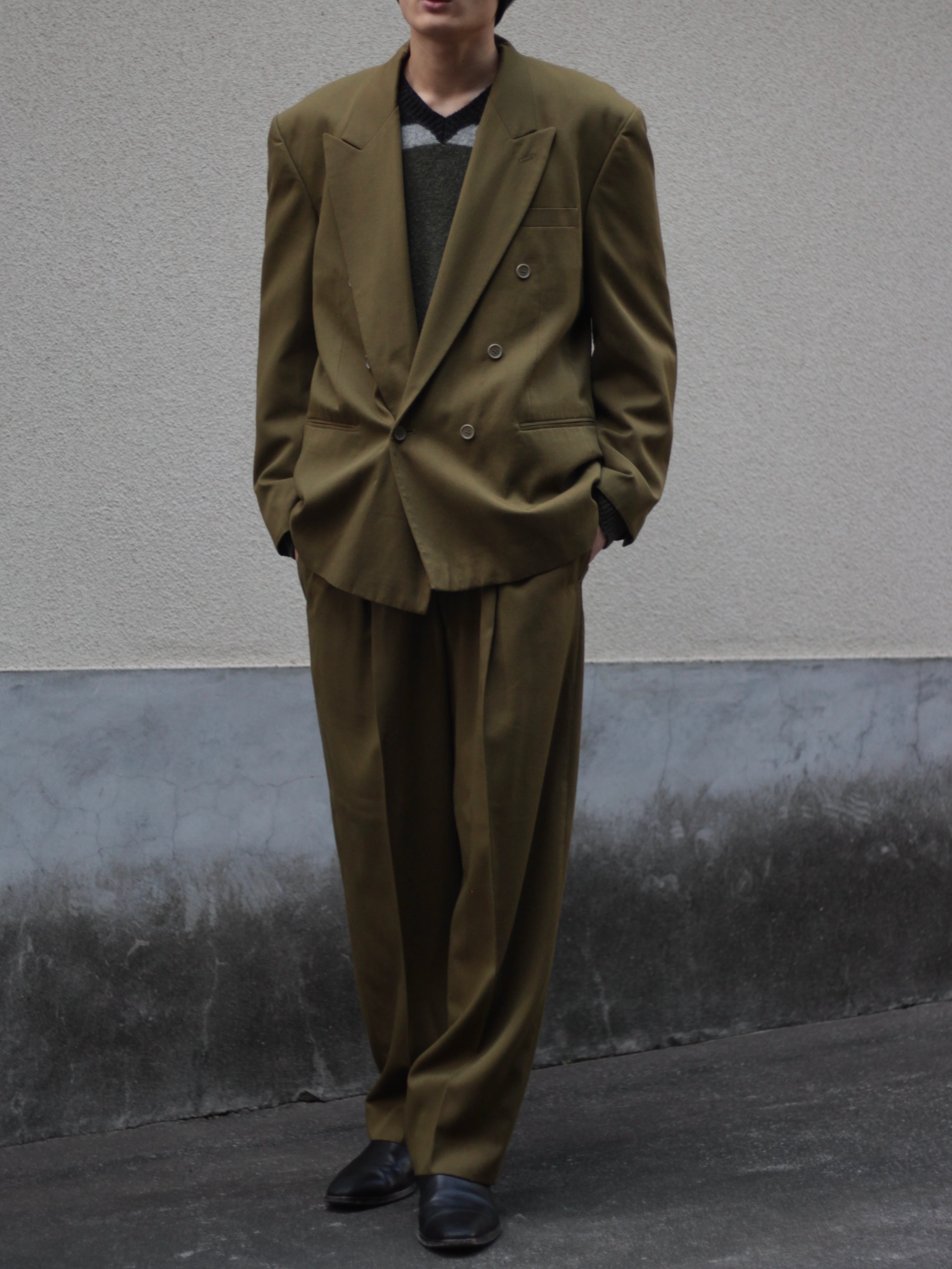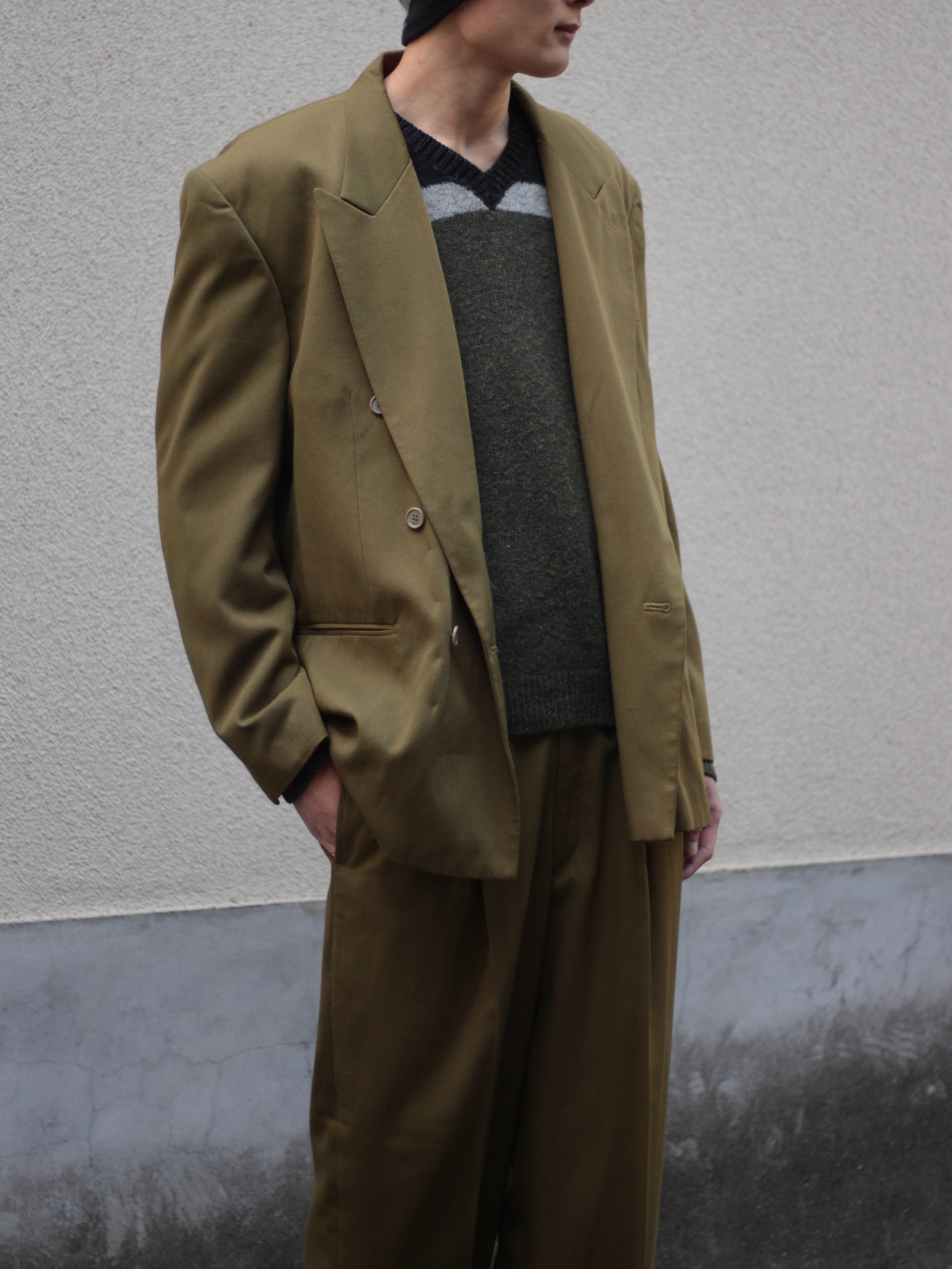 1990s vintage “SoHo" yomogi color suit set up double【CU-8859】