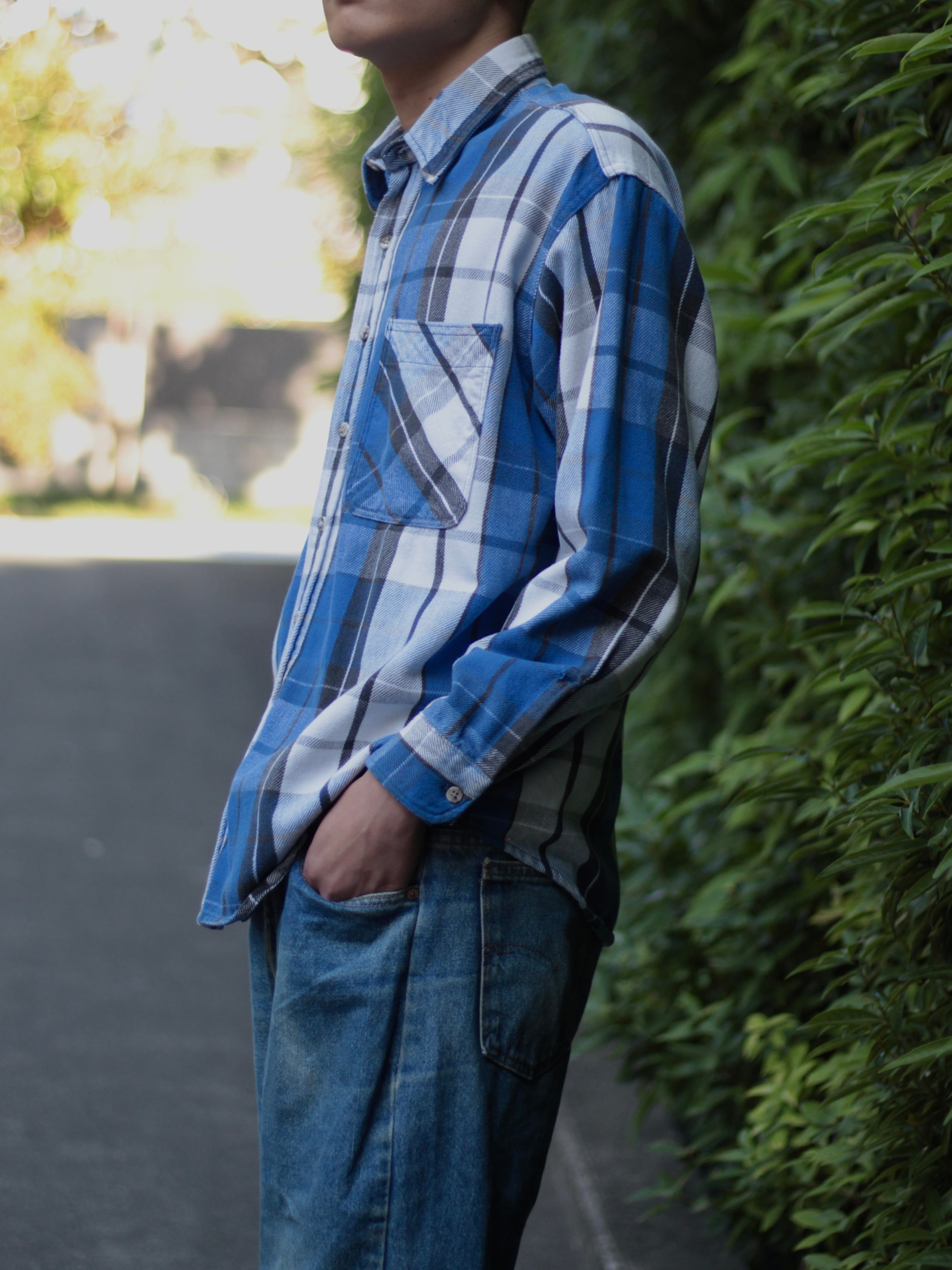 何枚あっても嬉しいチェックのネルシャツ、スラックス辺りで合わせてもらうとより際立ちますよ◎