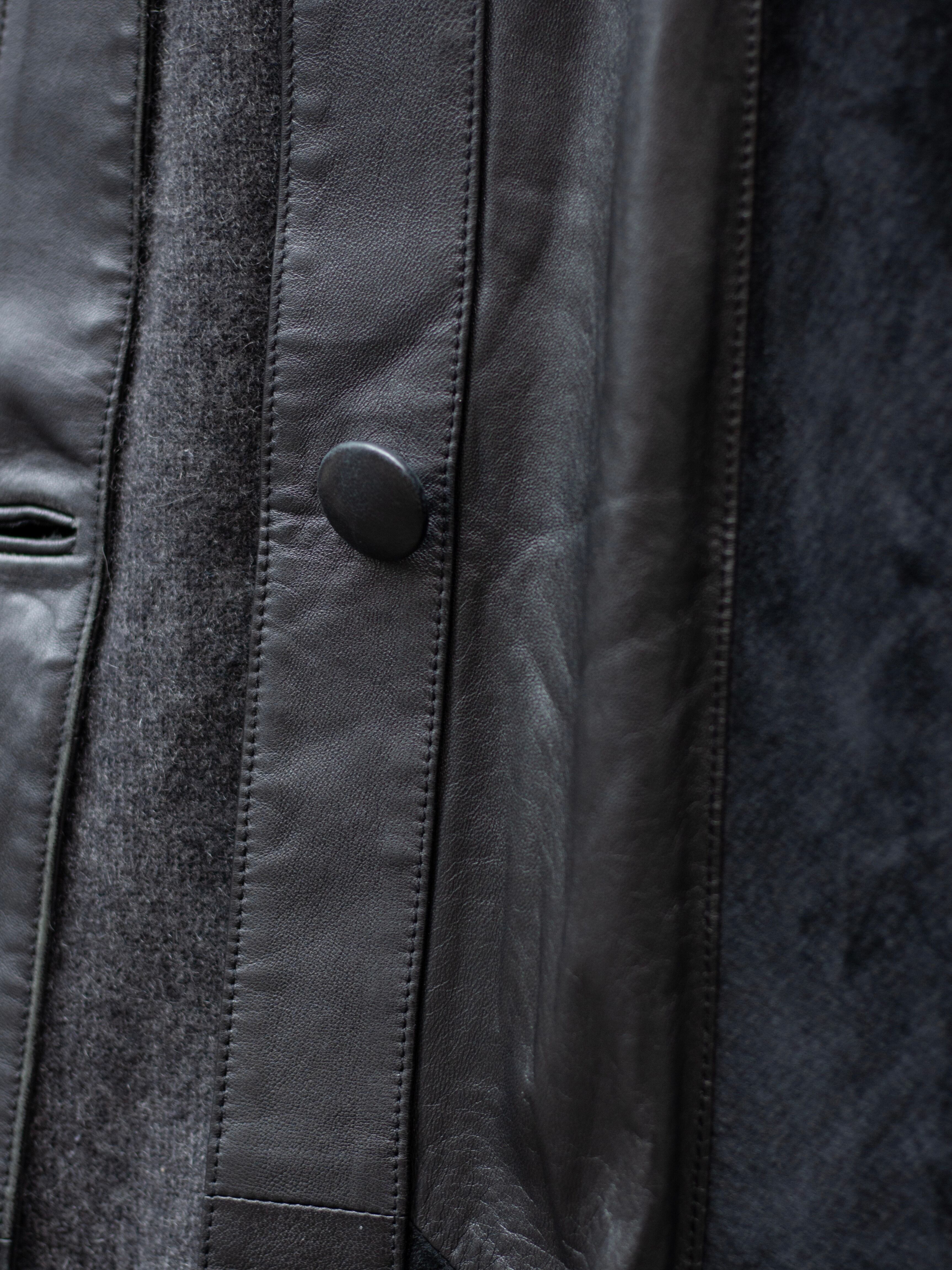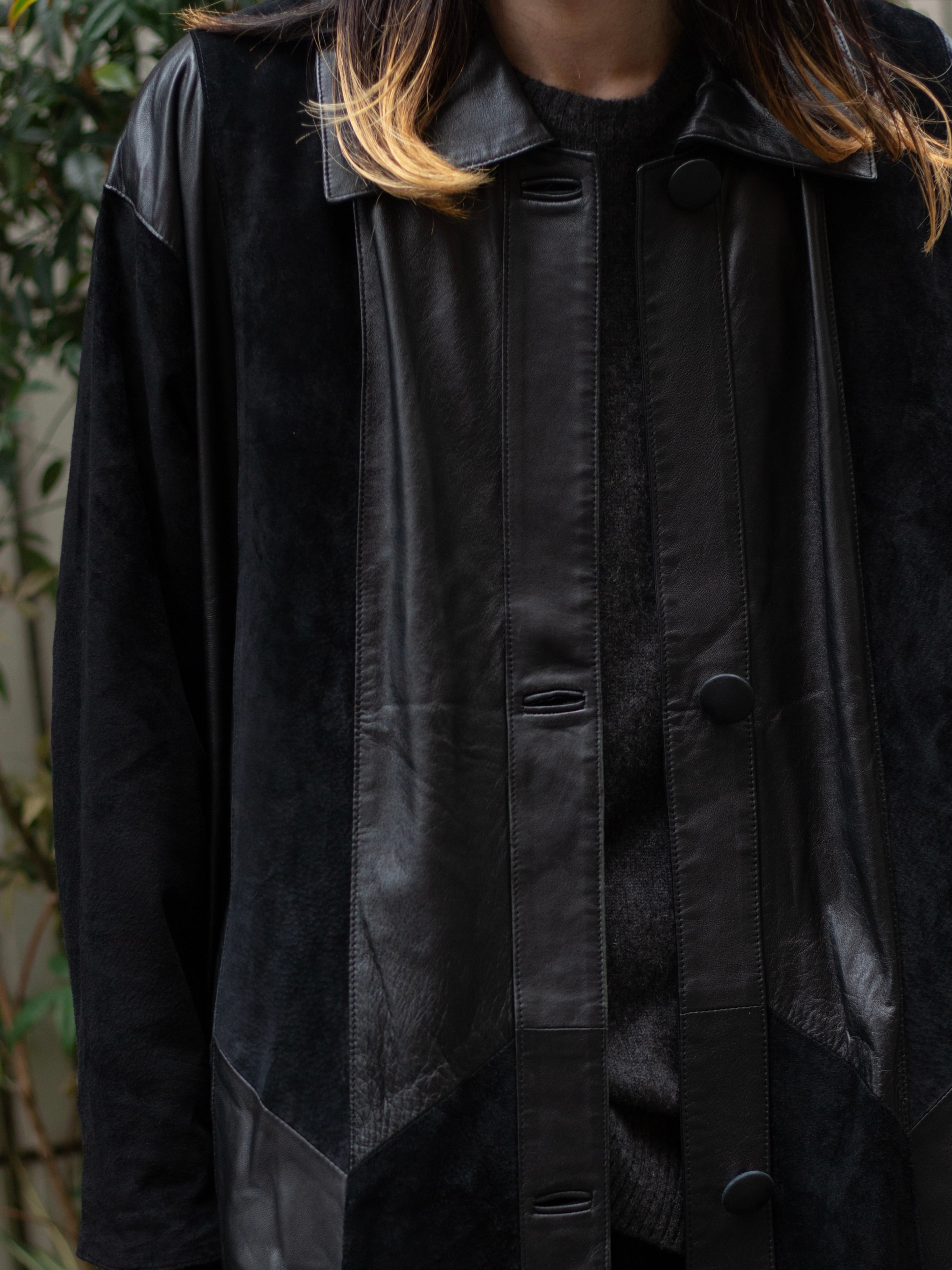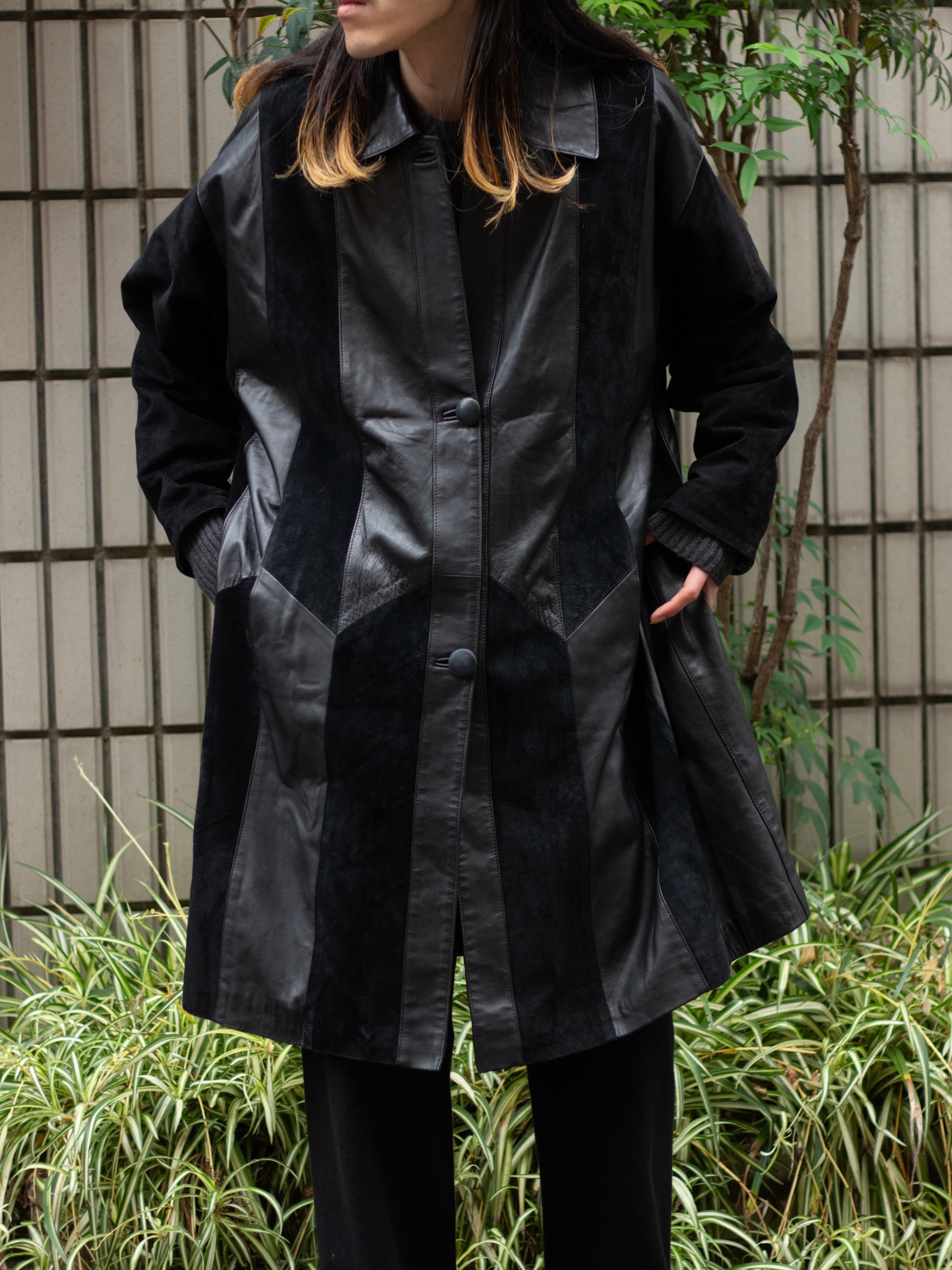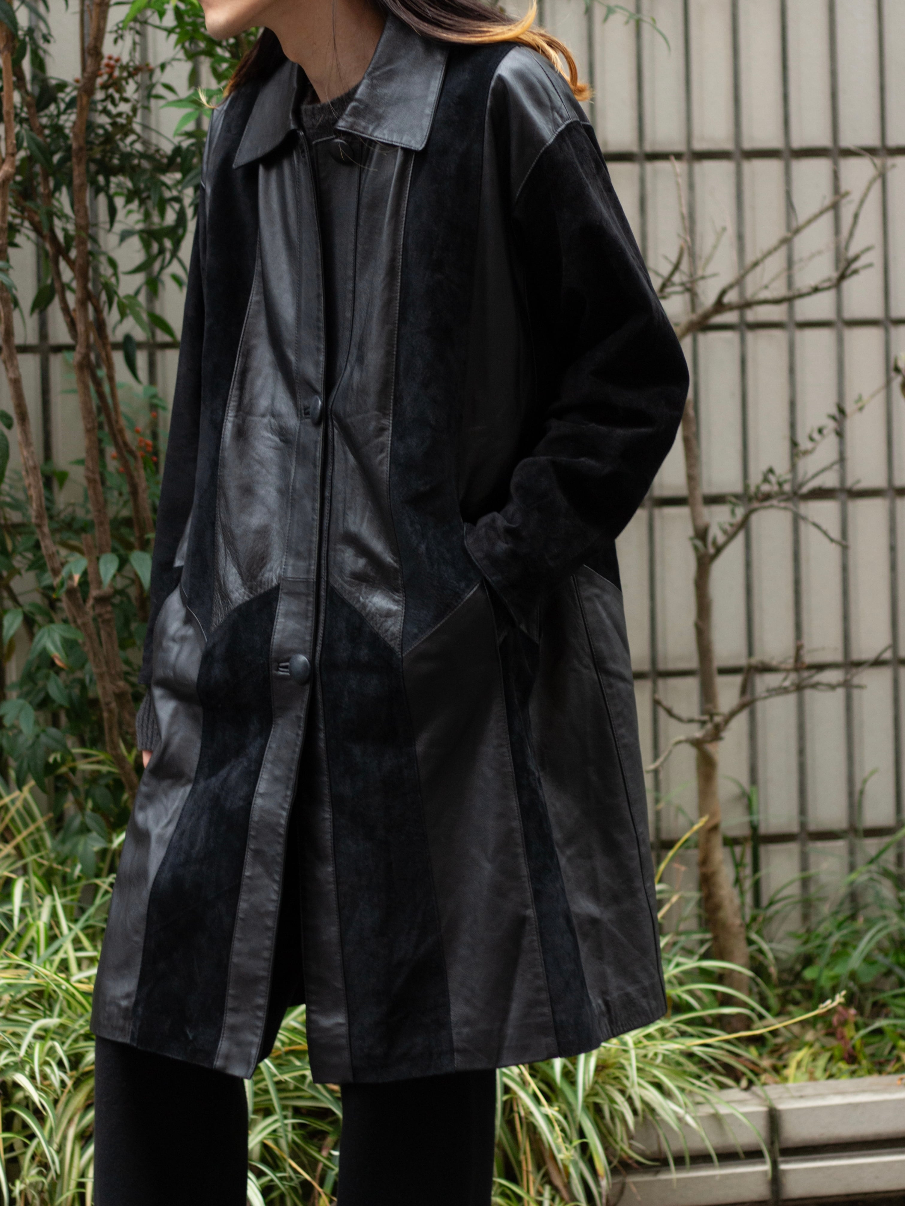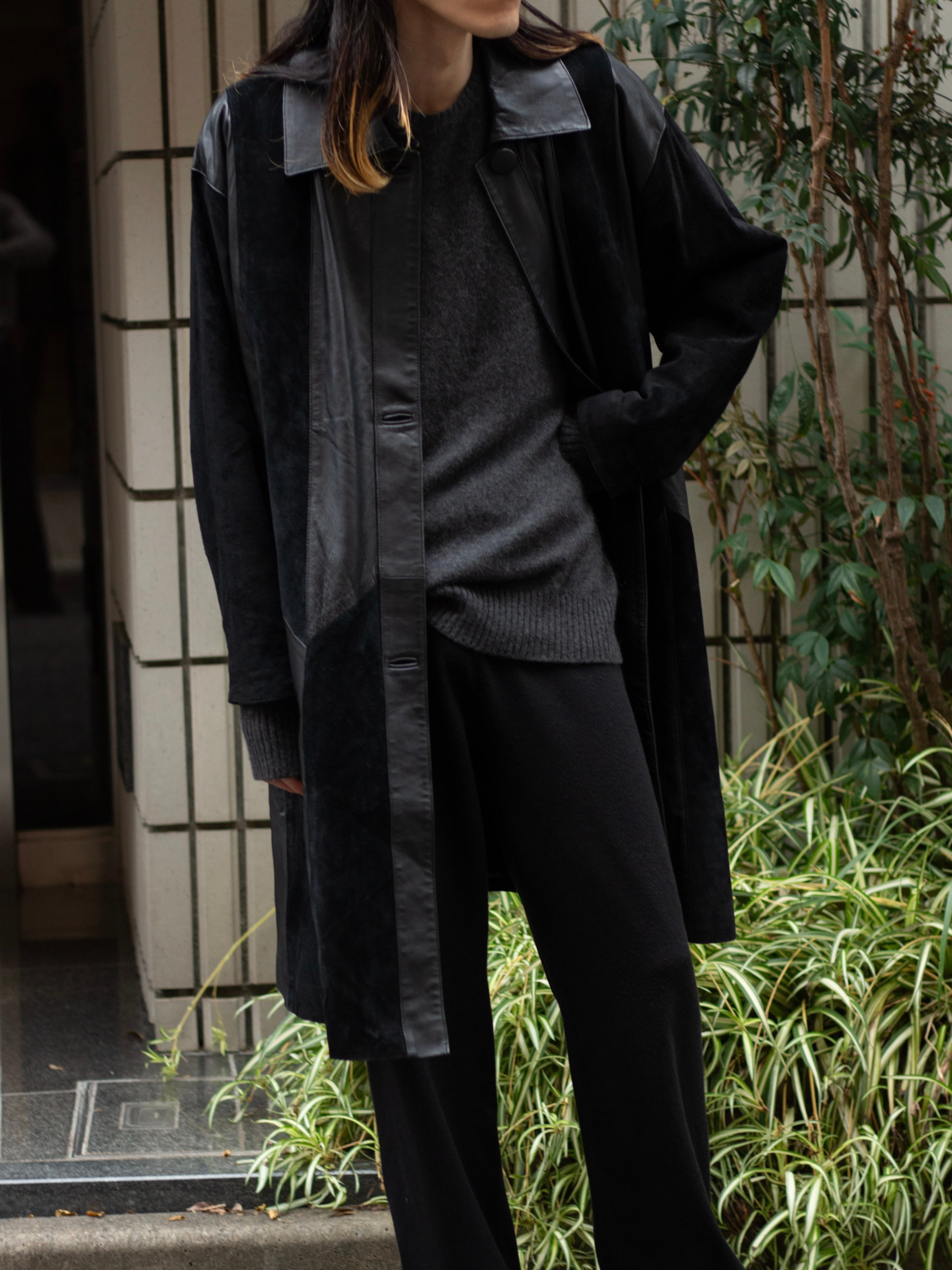 レザーとスエードを贅沢に切り替えた上品なコートが入荷☺︎