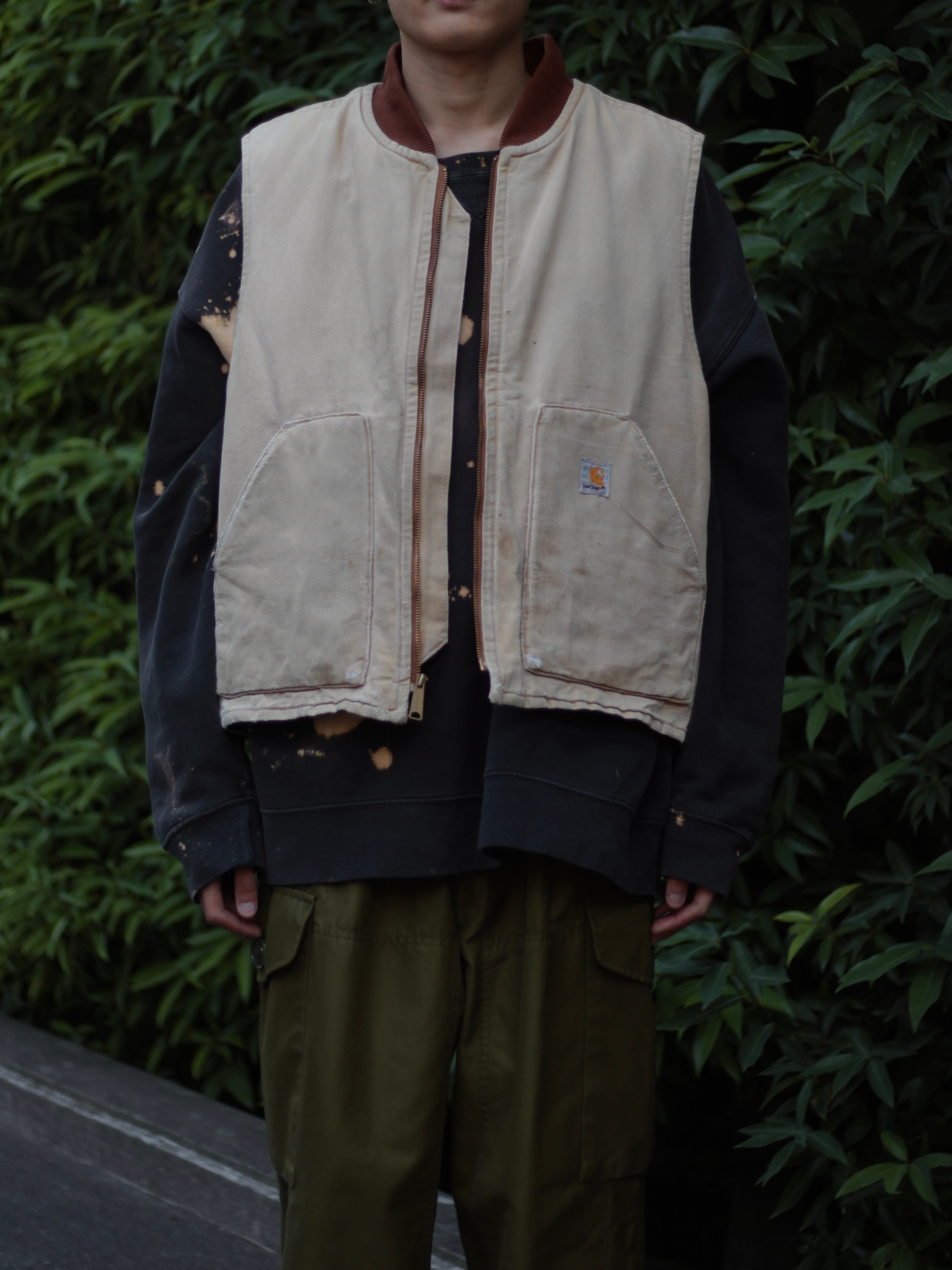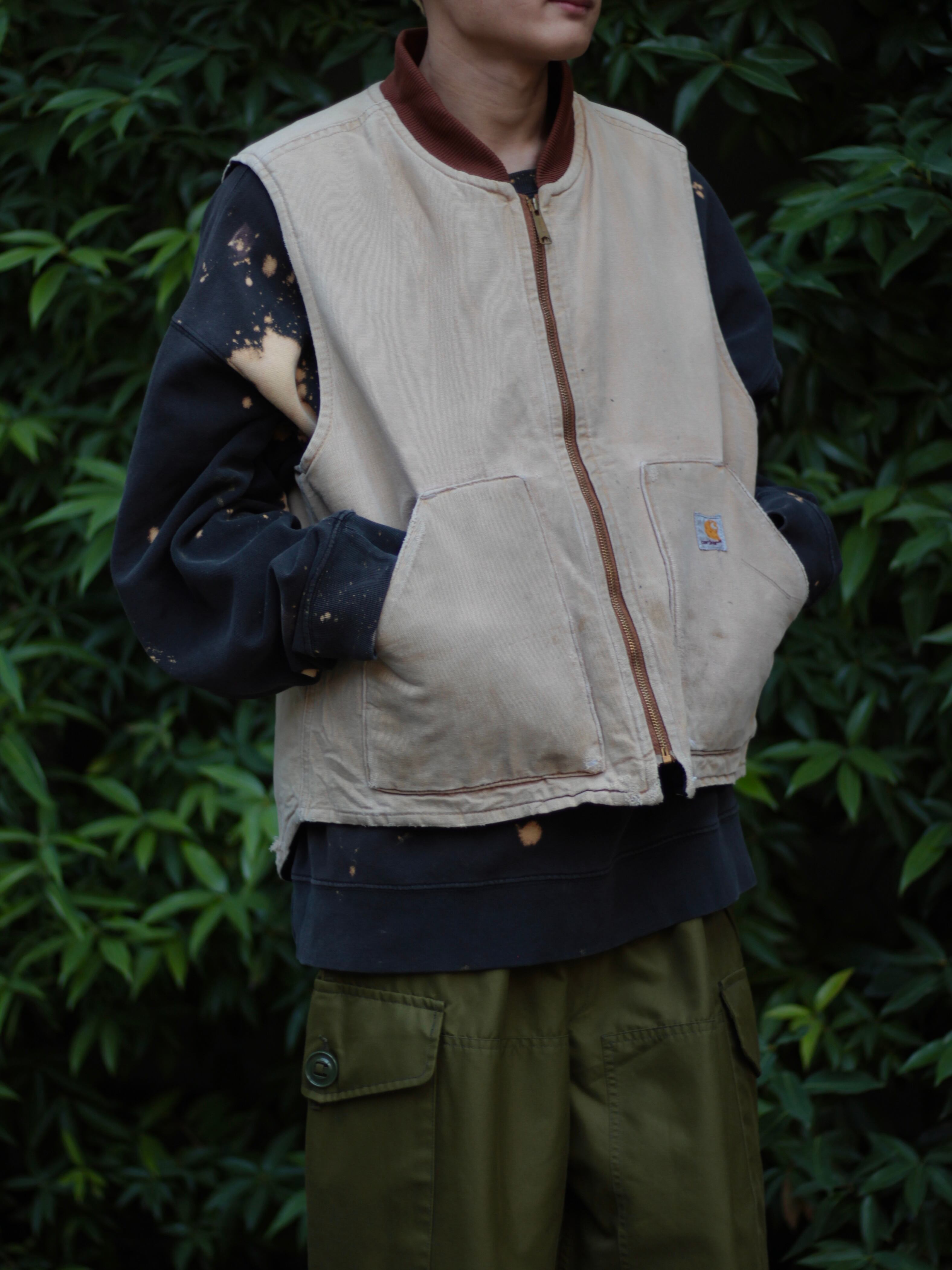 1990s vintage "Carhartt" sun fade beige duck quilting vest【CU-8868】