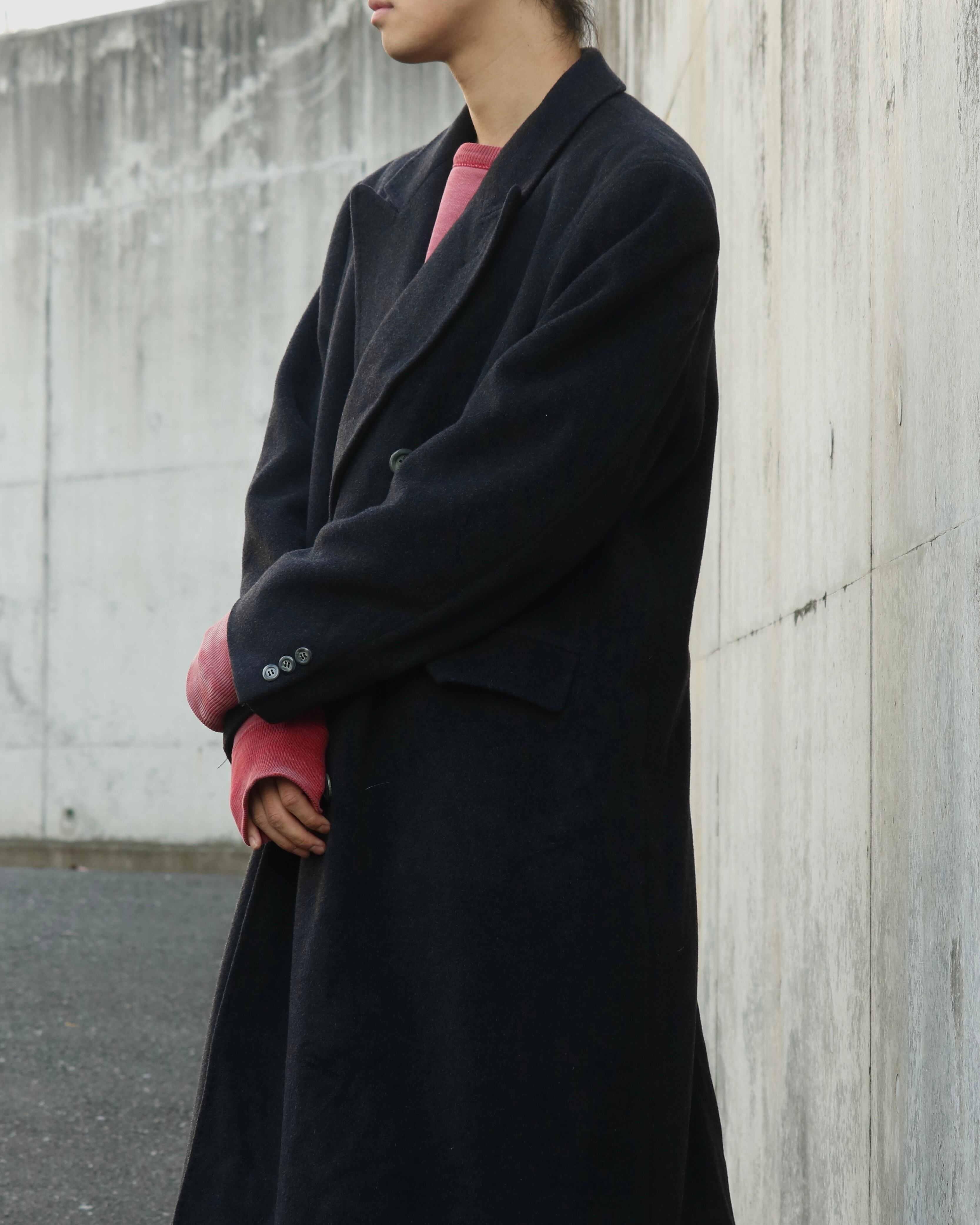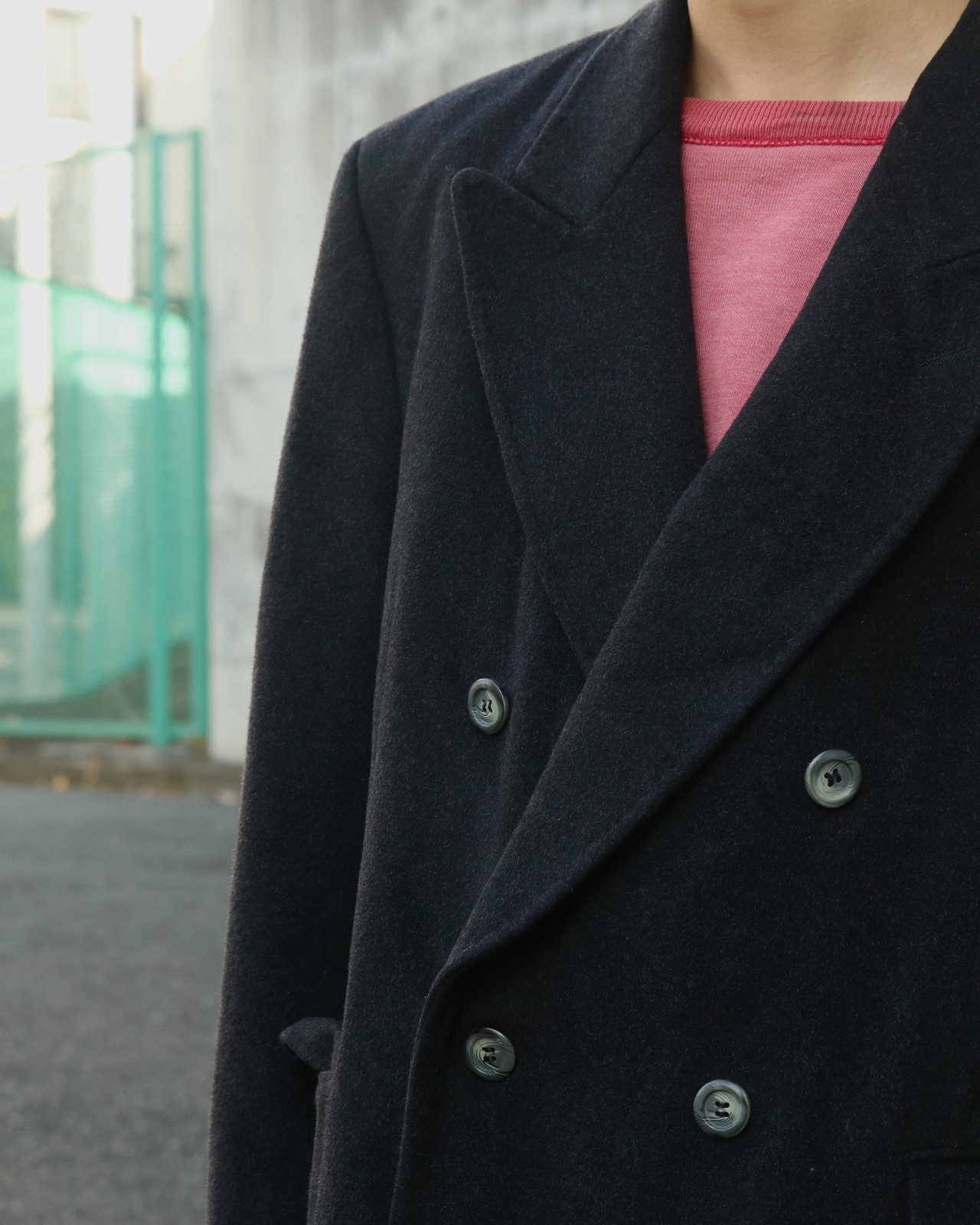 カシミア混のチェスターコート。