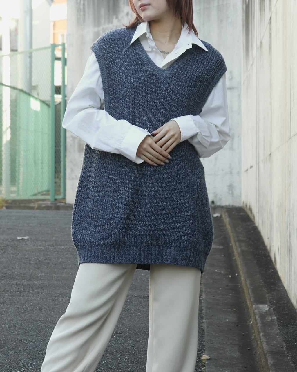 "KING SIZE" Acryl fabric knit vest 【MM-0842】