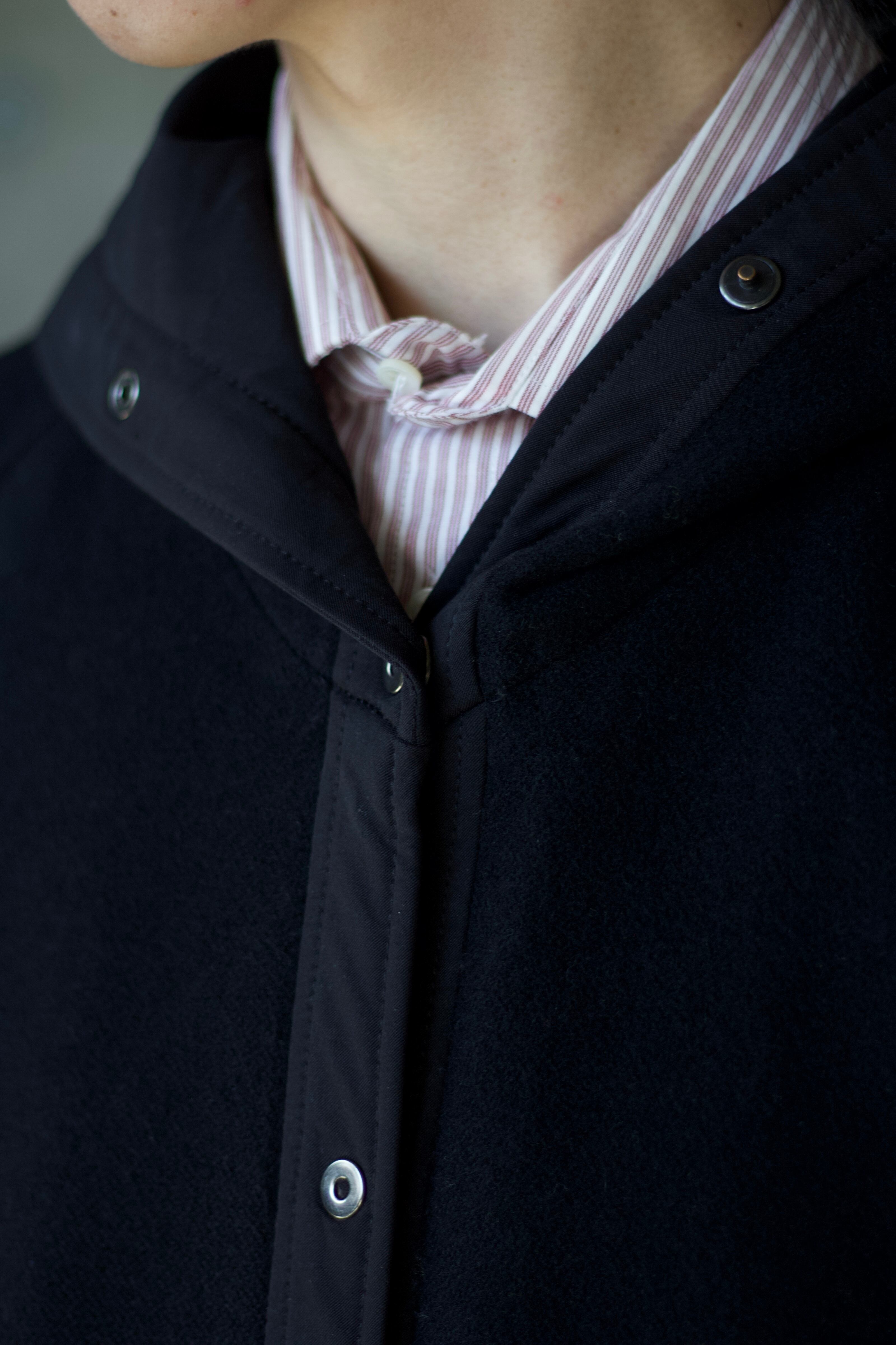ラグランスリーブでややシェイプされたサイジングなため、男女問わず着こなせるようなコート。