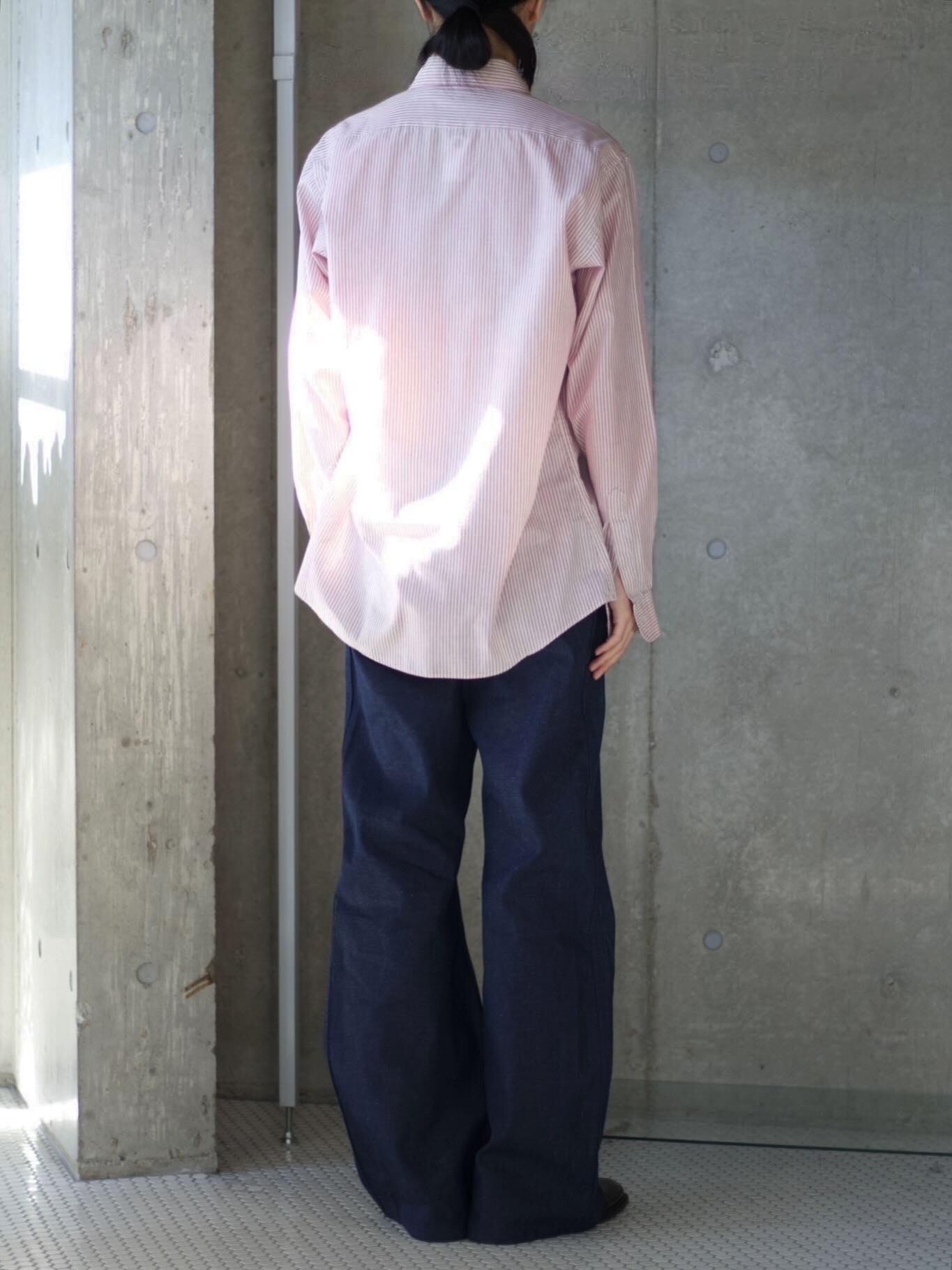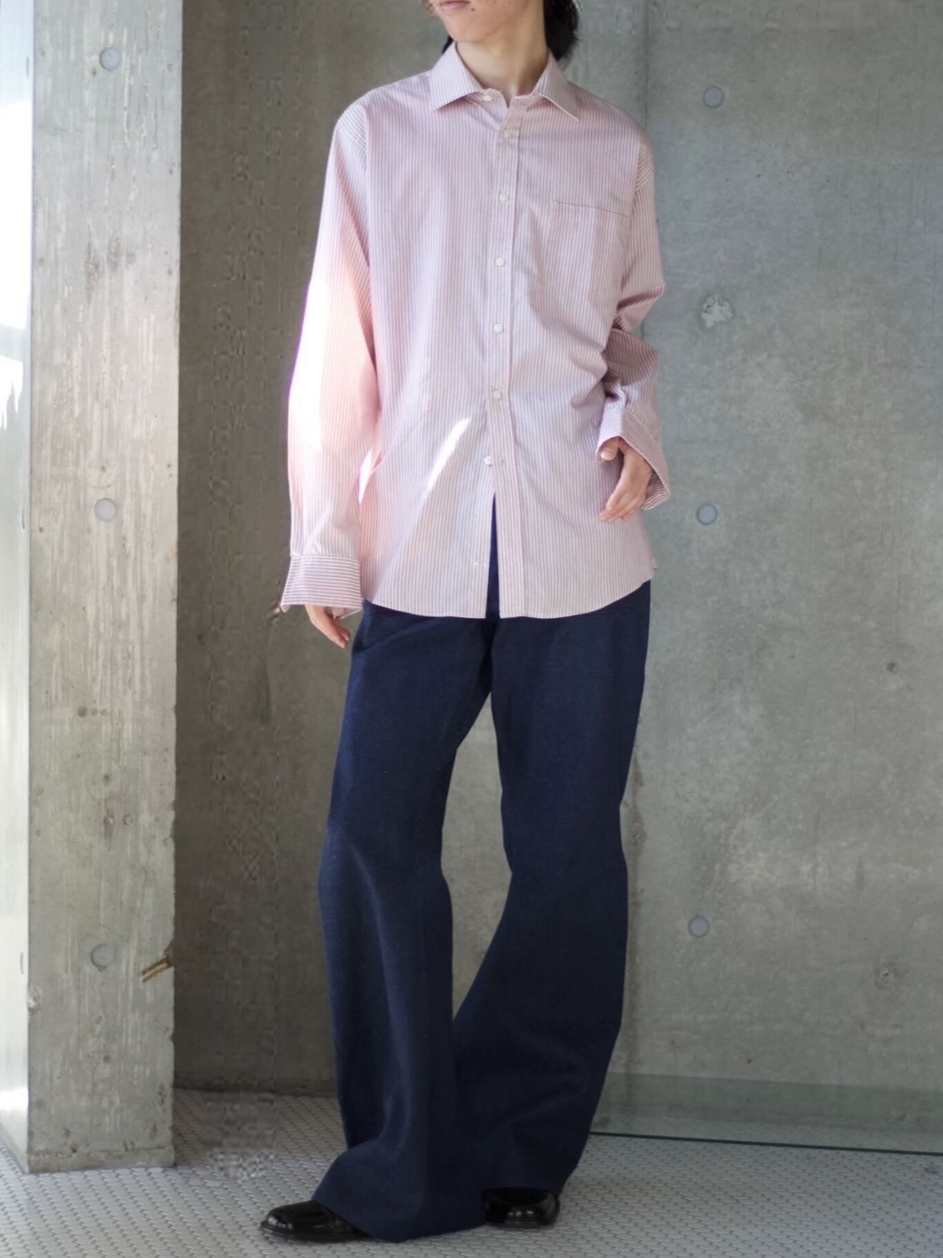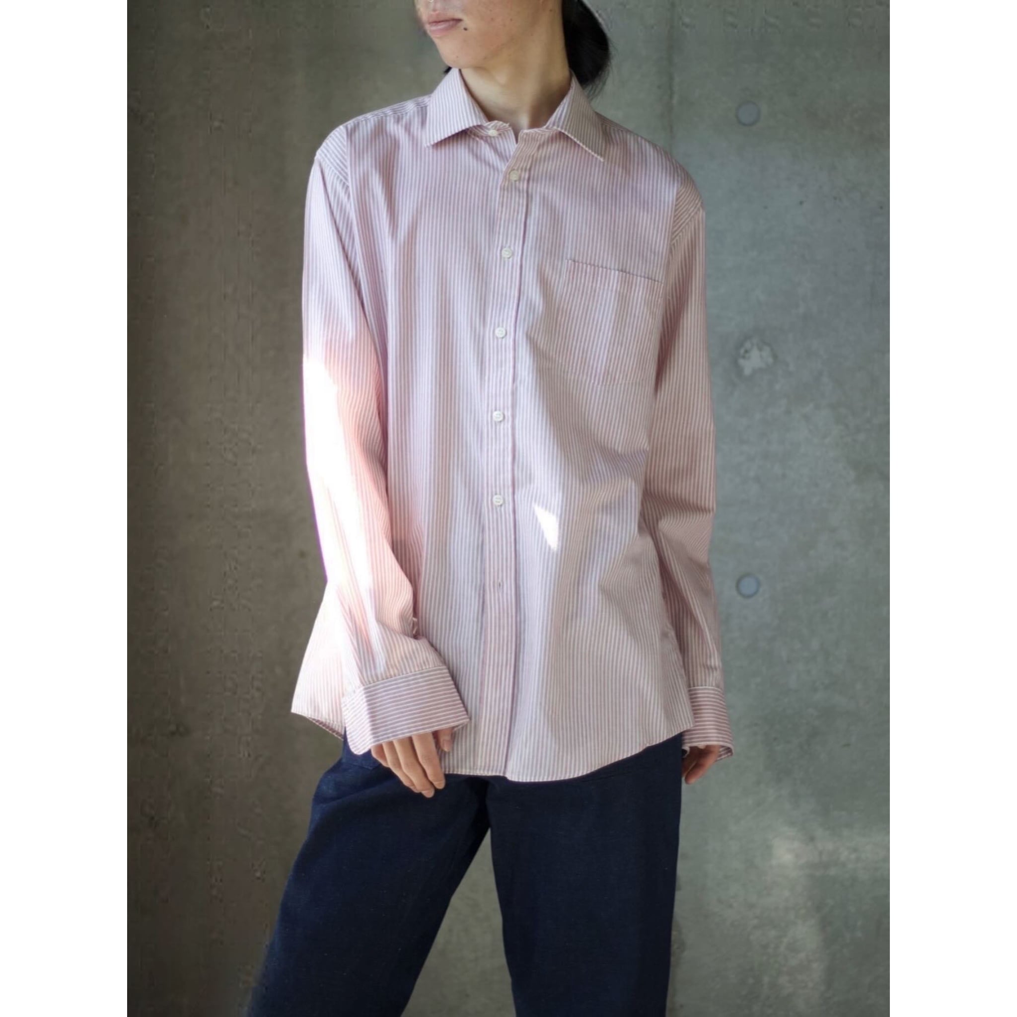 1990s "Yves Saint Laurent" stripe dress shirt【COOT-3263】