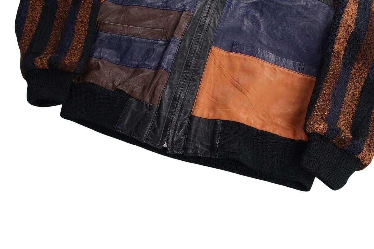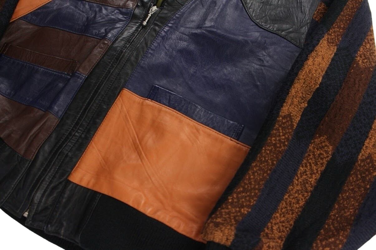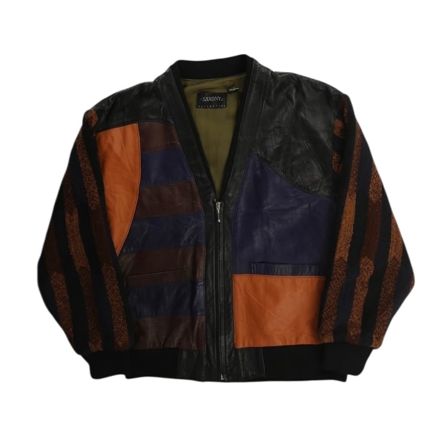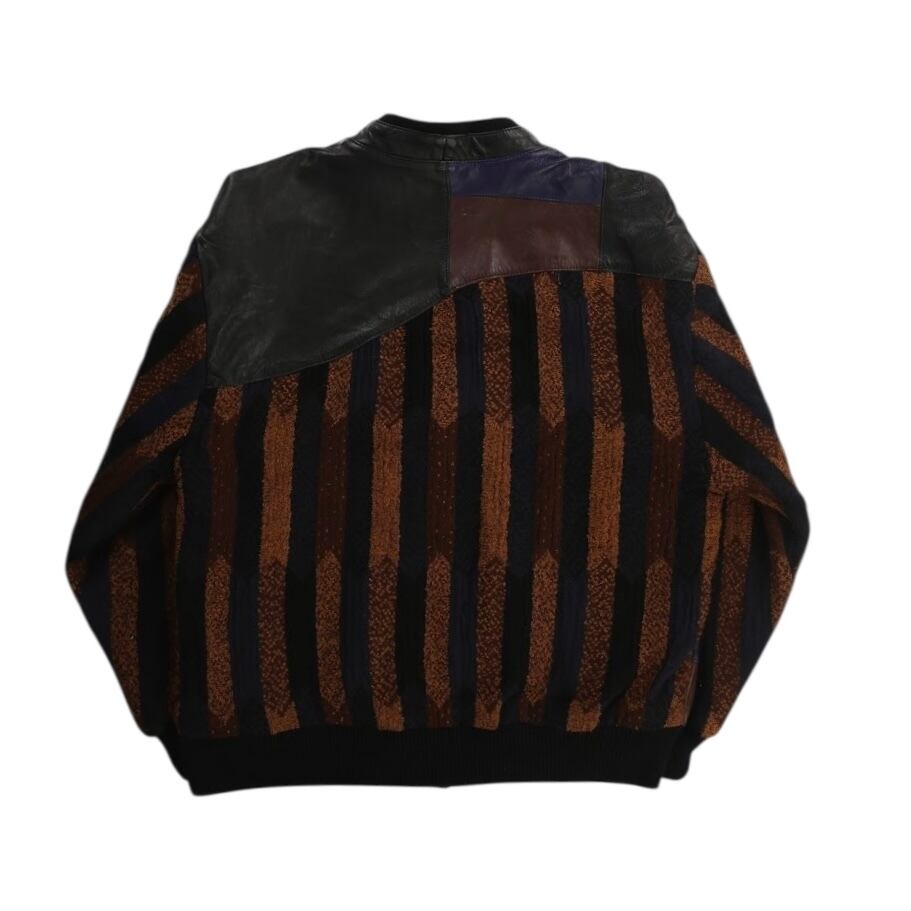"SAXONY" real leather switching 3D knit cardigan OT-20012