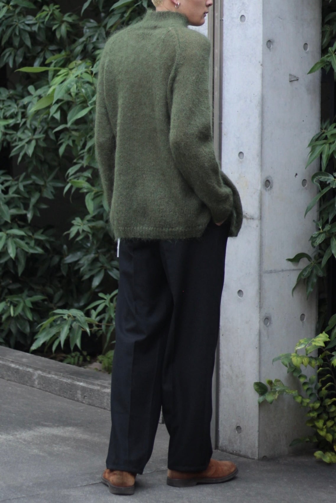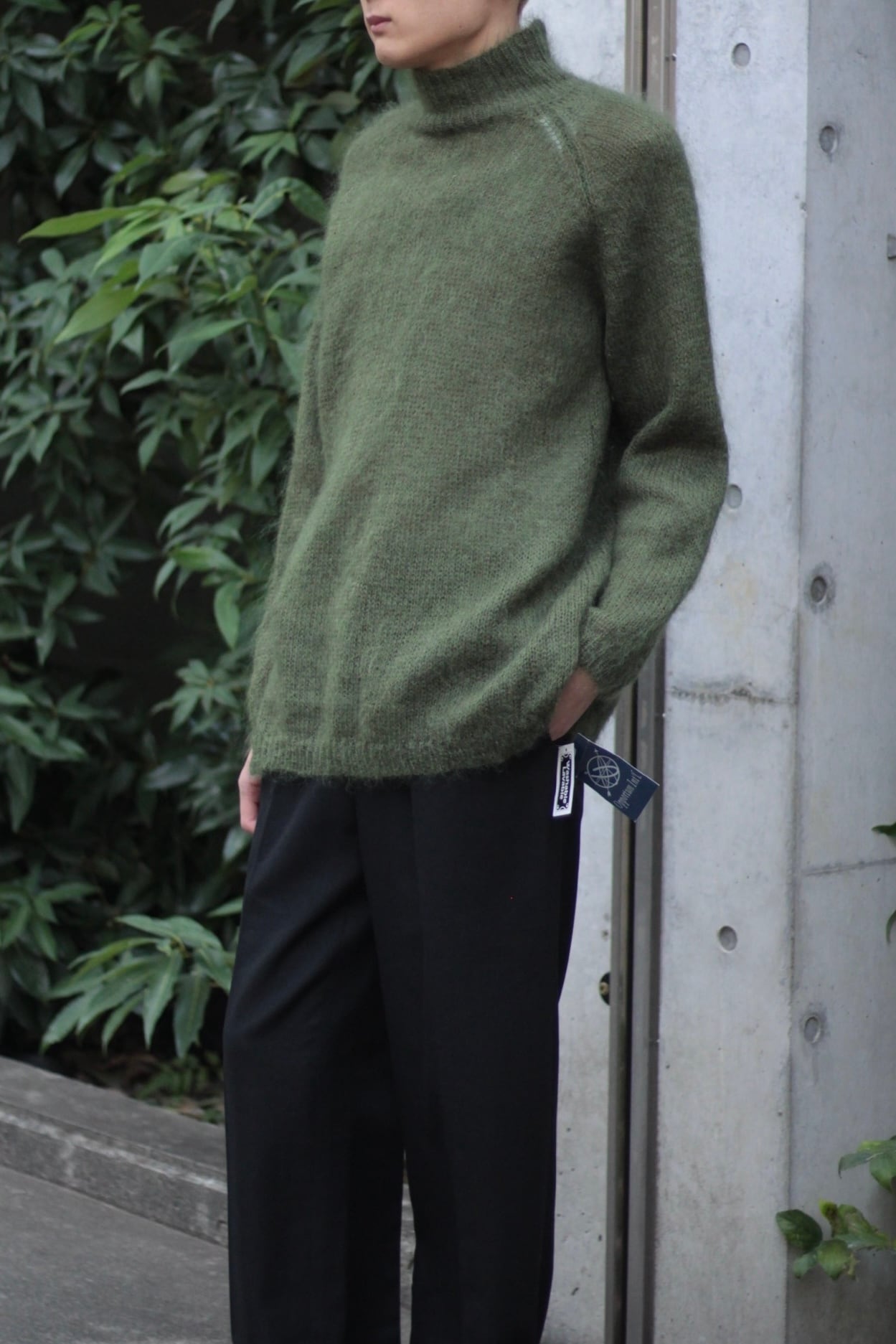 90年代らしいゆるいシルエットと、ふわっと起毛したモヘア混の質感が魅力のモックネックニット。