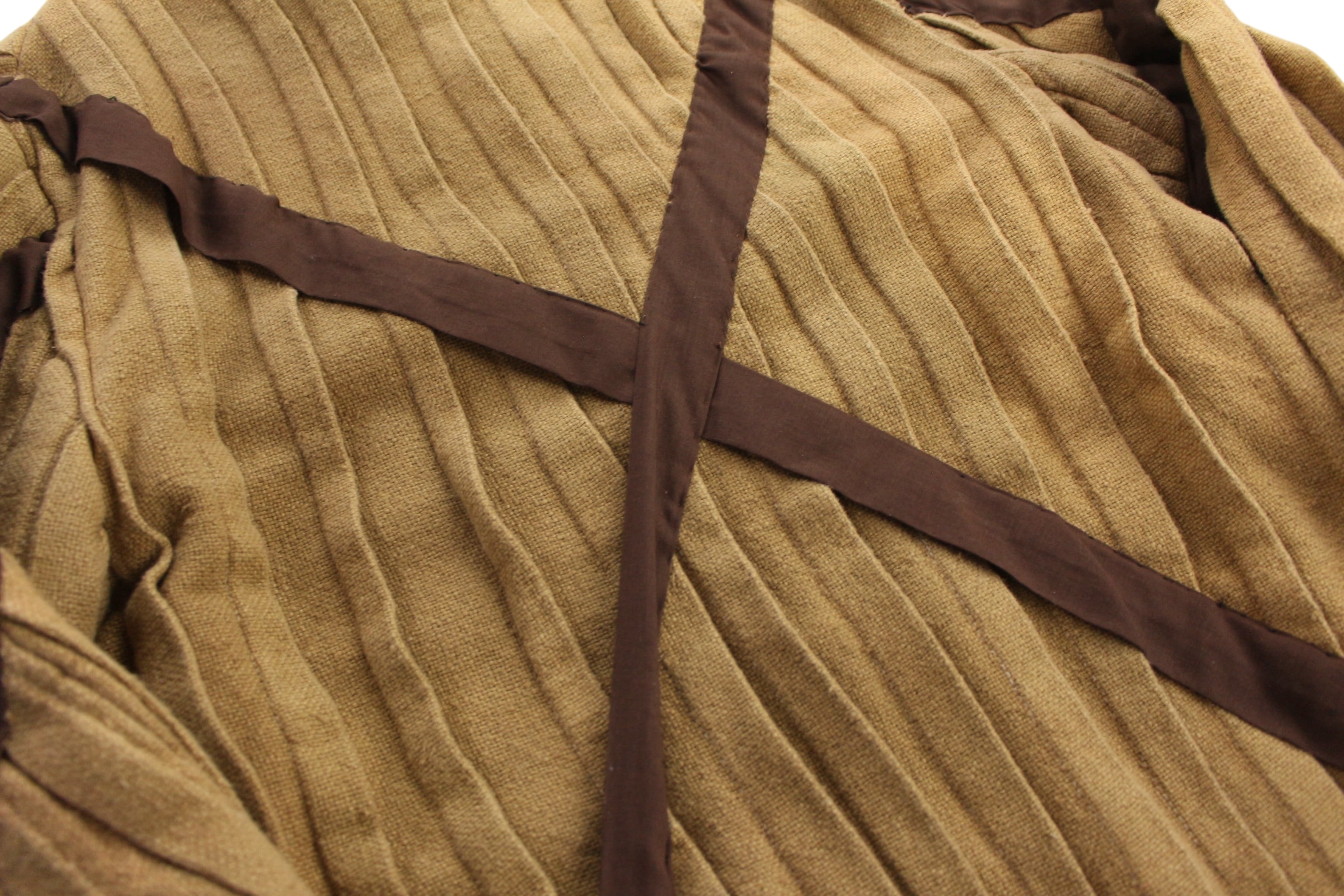 そこに後々テープをクロスに叩きつけたりボディをつまみ縫いしたりと普通の服じゃまず見ない手作業のディテールが満載!