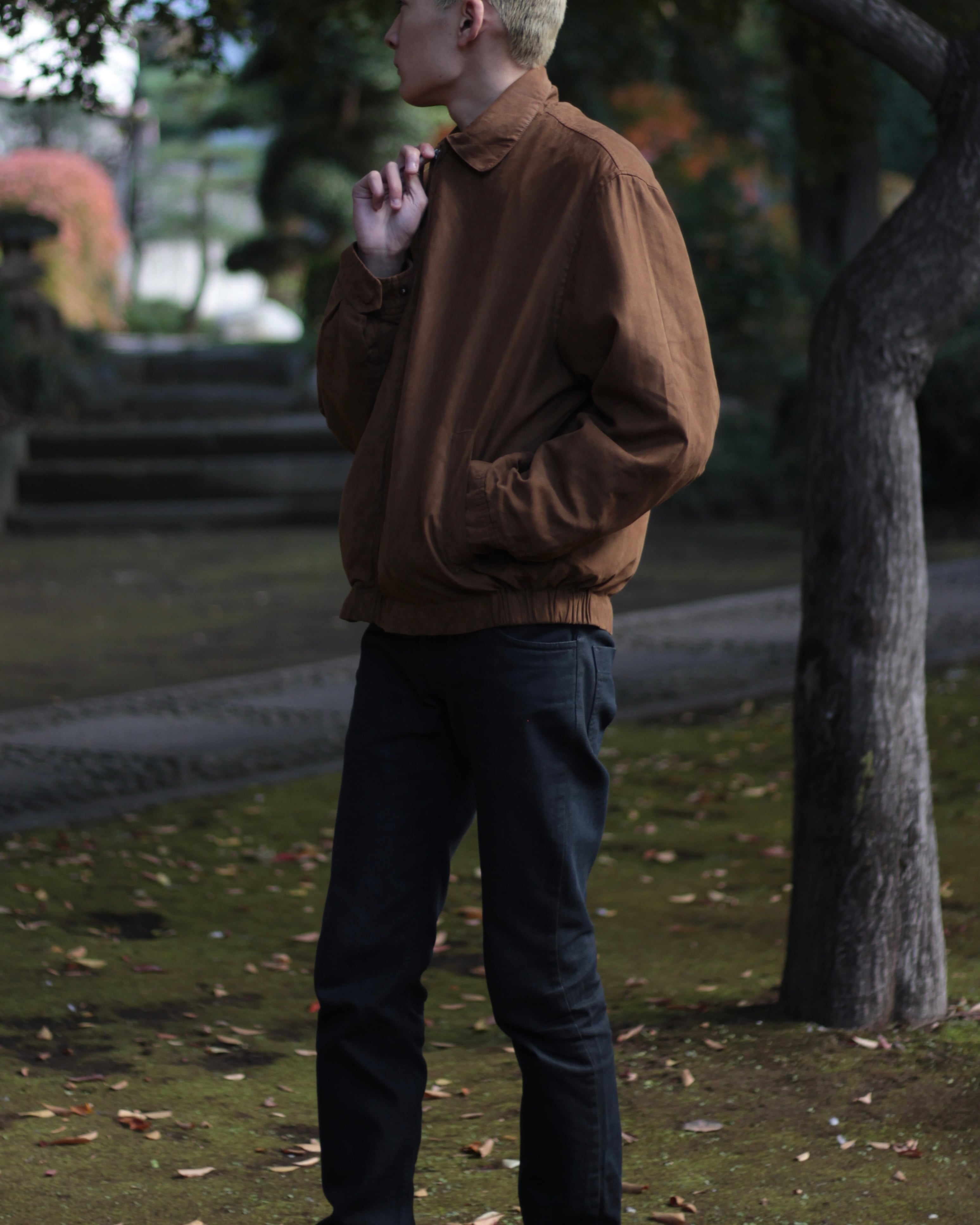 faux suede fubric zip swing top blouson with liner【OT-20008】