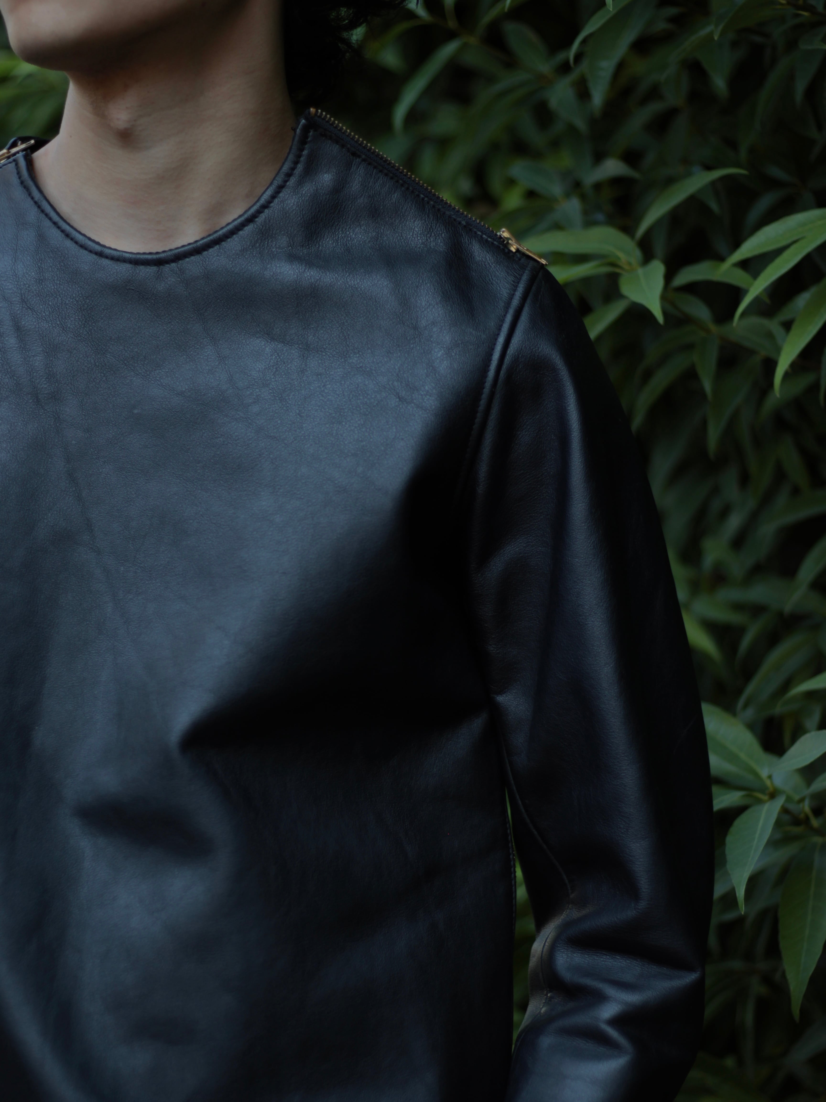 カウレザー特有の重量もほとんどなく着やすいうえに、両肩にジッパー、脇下にもジッパーで着脱するタイプです。