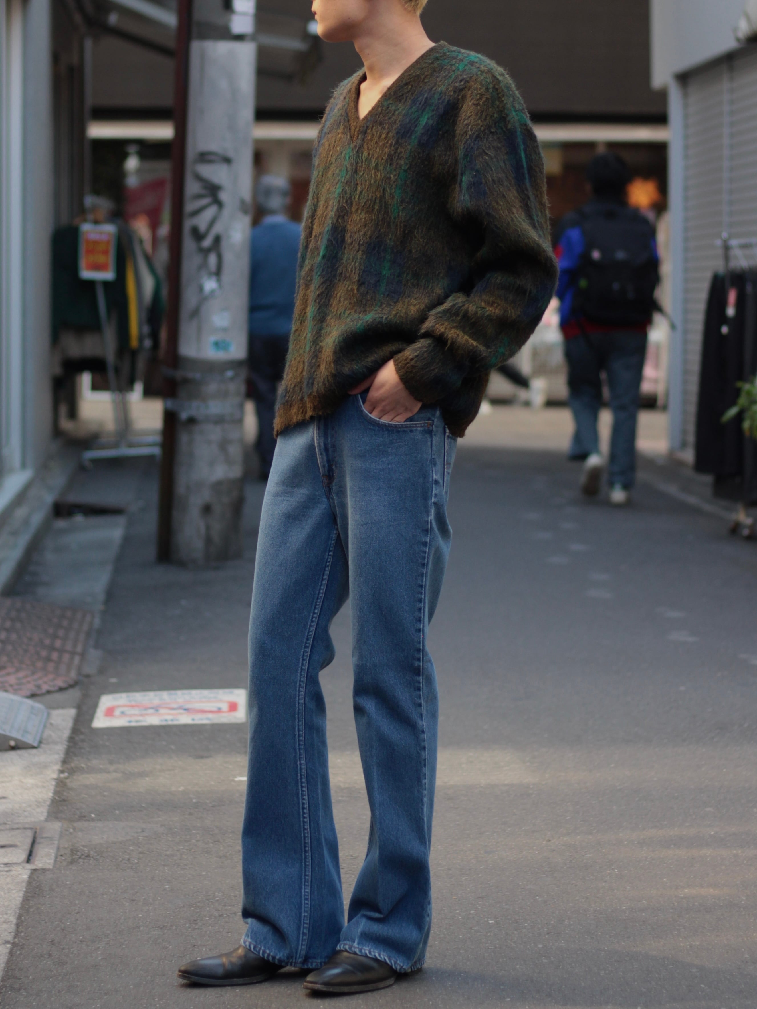 オリジナルのフレアバランスがそのまま残っておりブーツ,ヒール,ローファーなど足元の幅も広い一本です。