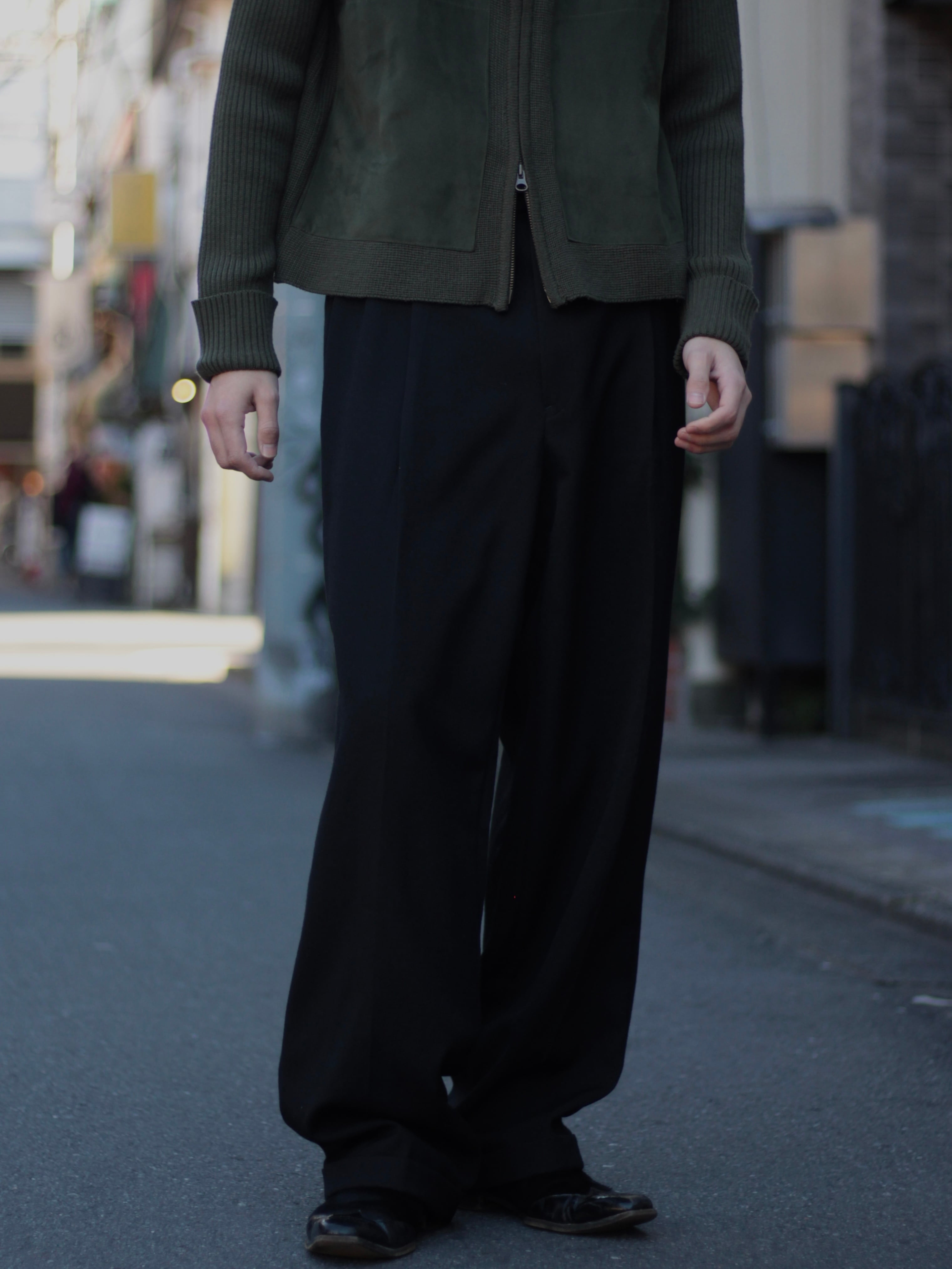 36Rのウエストだからこその、しっかりと足から離れたズドンとしたワイドシルエットは極上な雰囲気です。