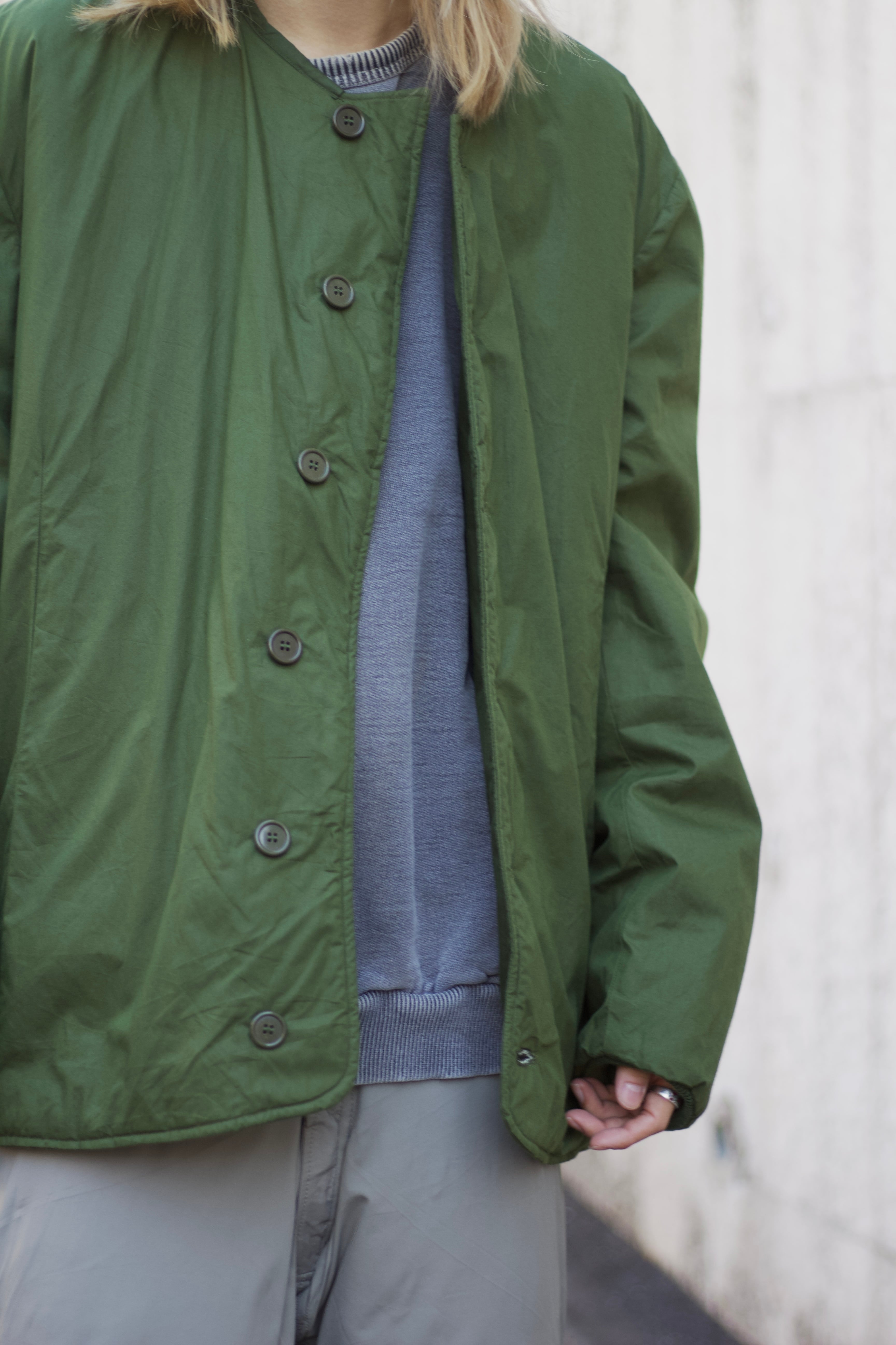 分厚過ぎない適度なボリューム感の中綿の作りですので、アウター感覚でサラッと取り入れて頂けます。