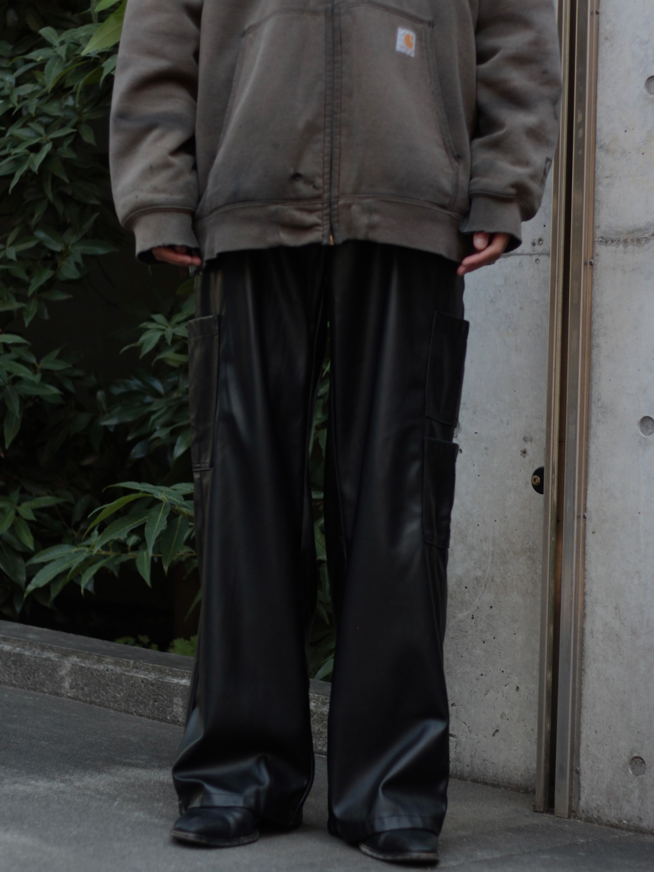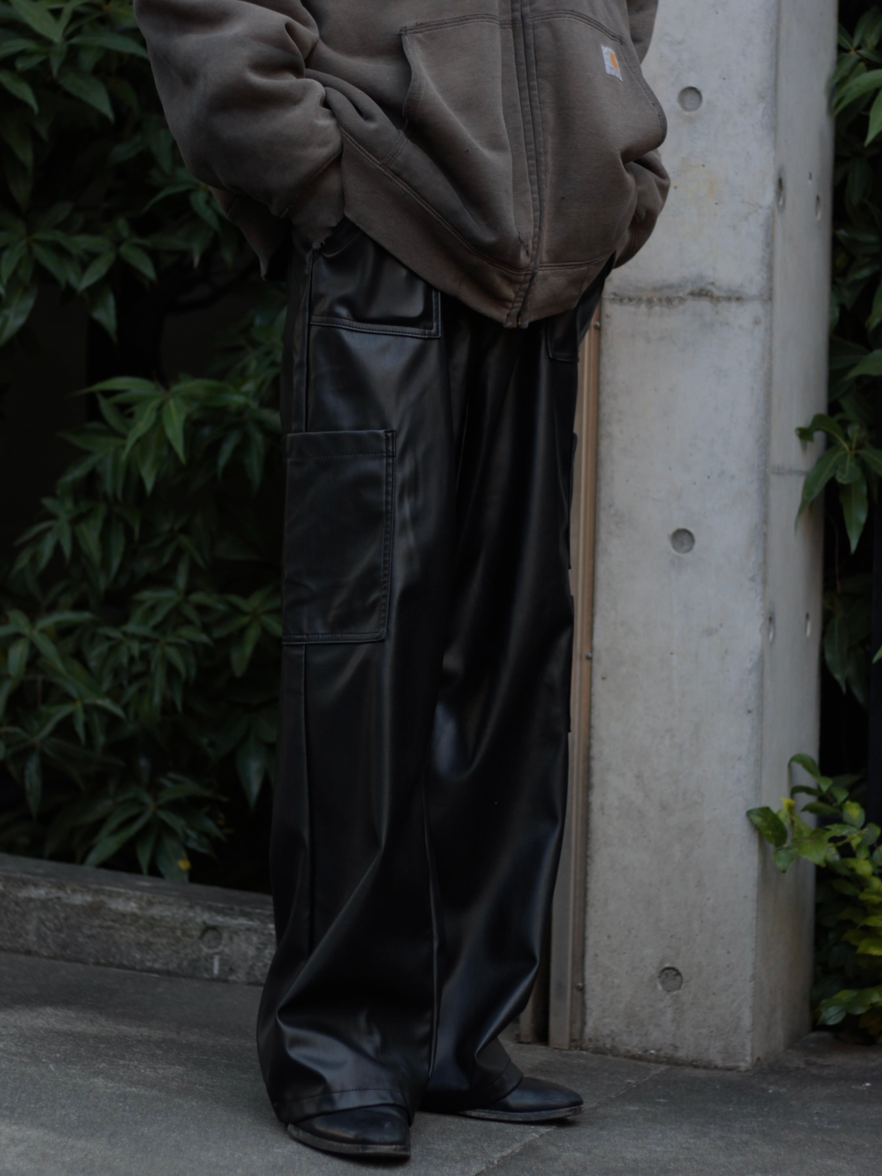フェイクレザーカーゴパンツ