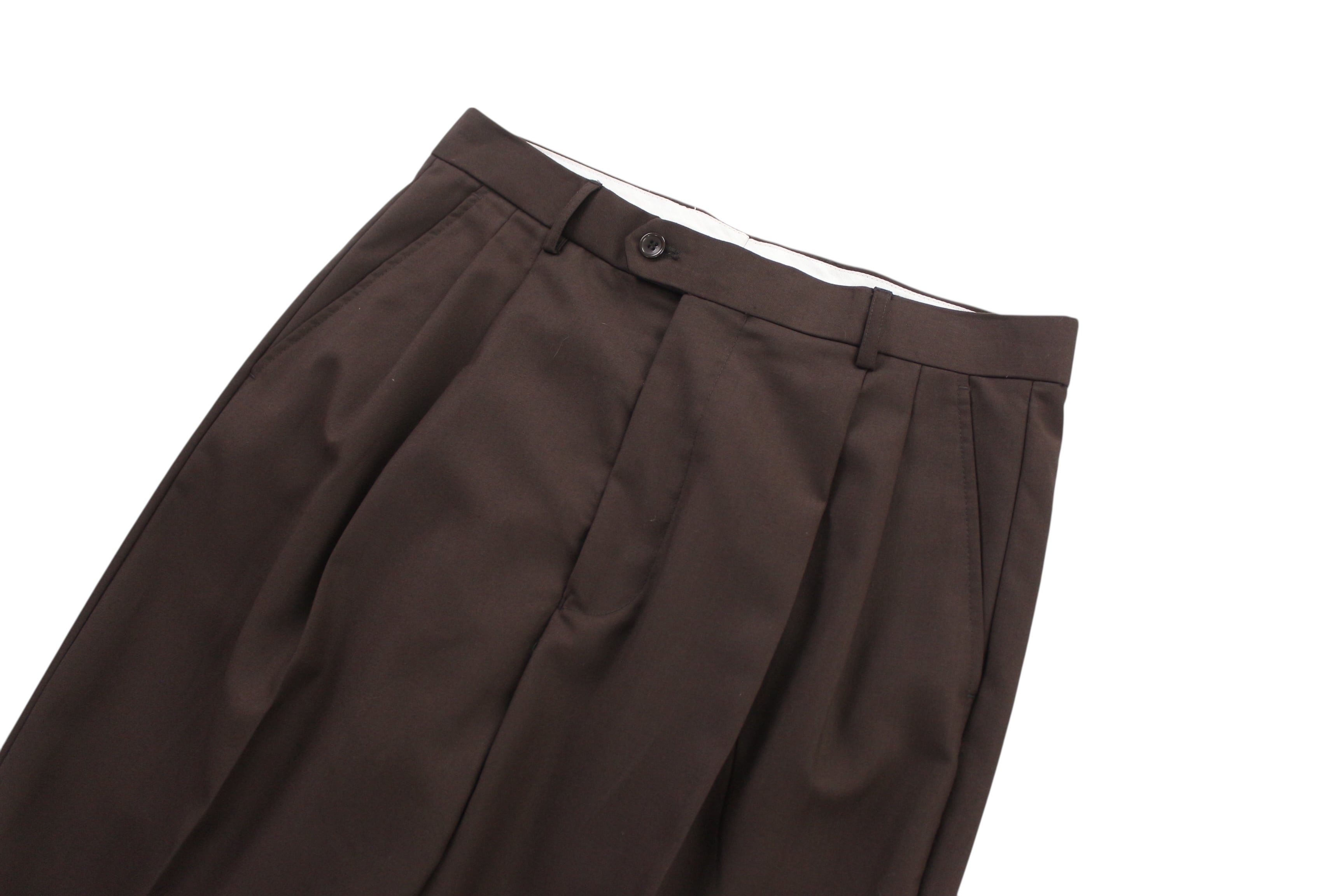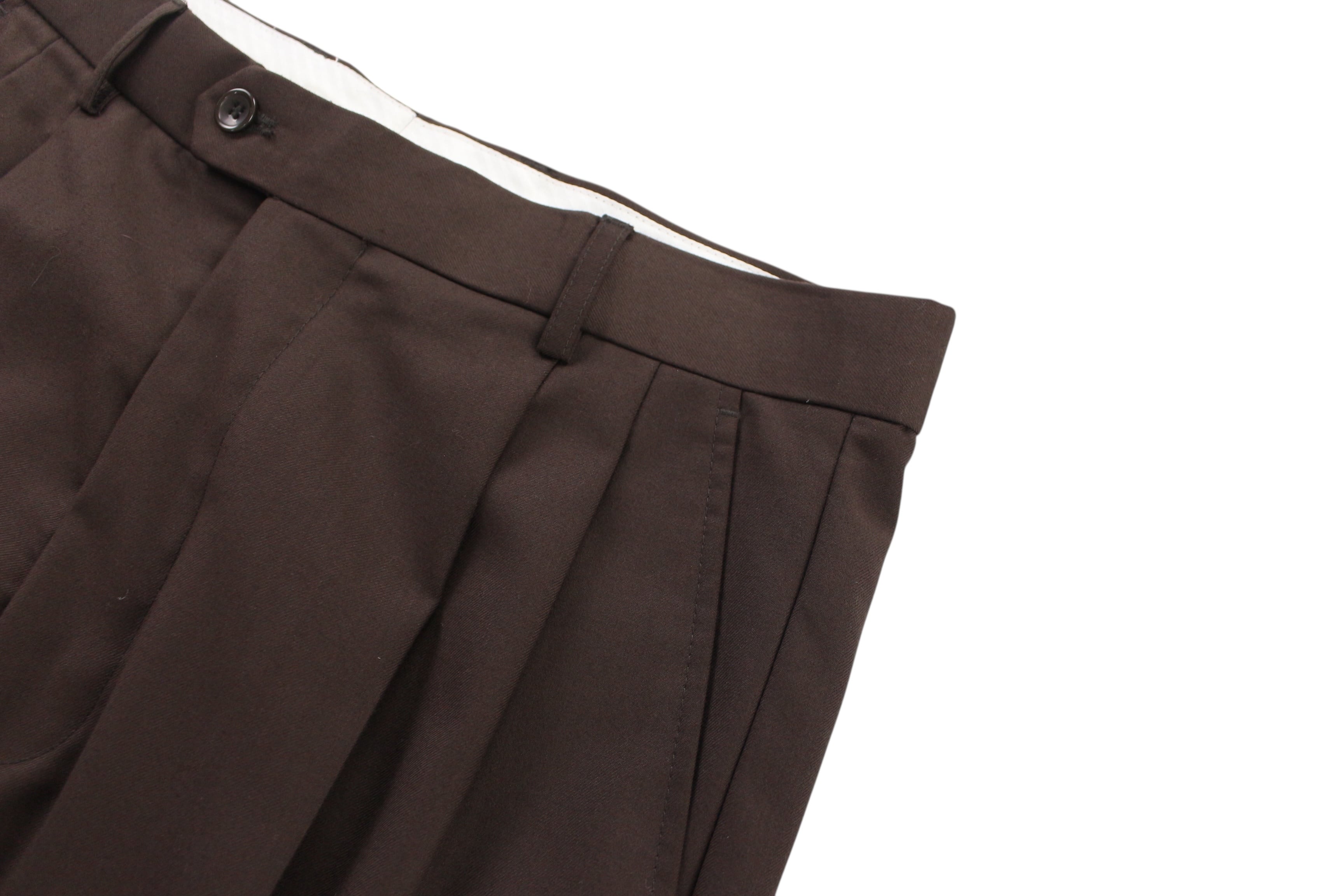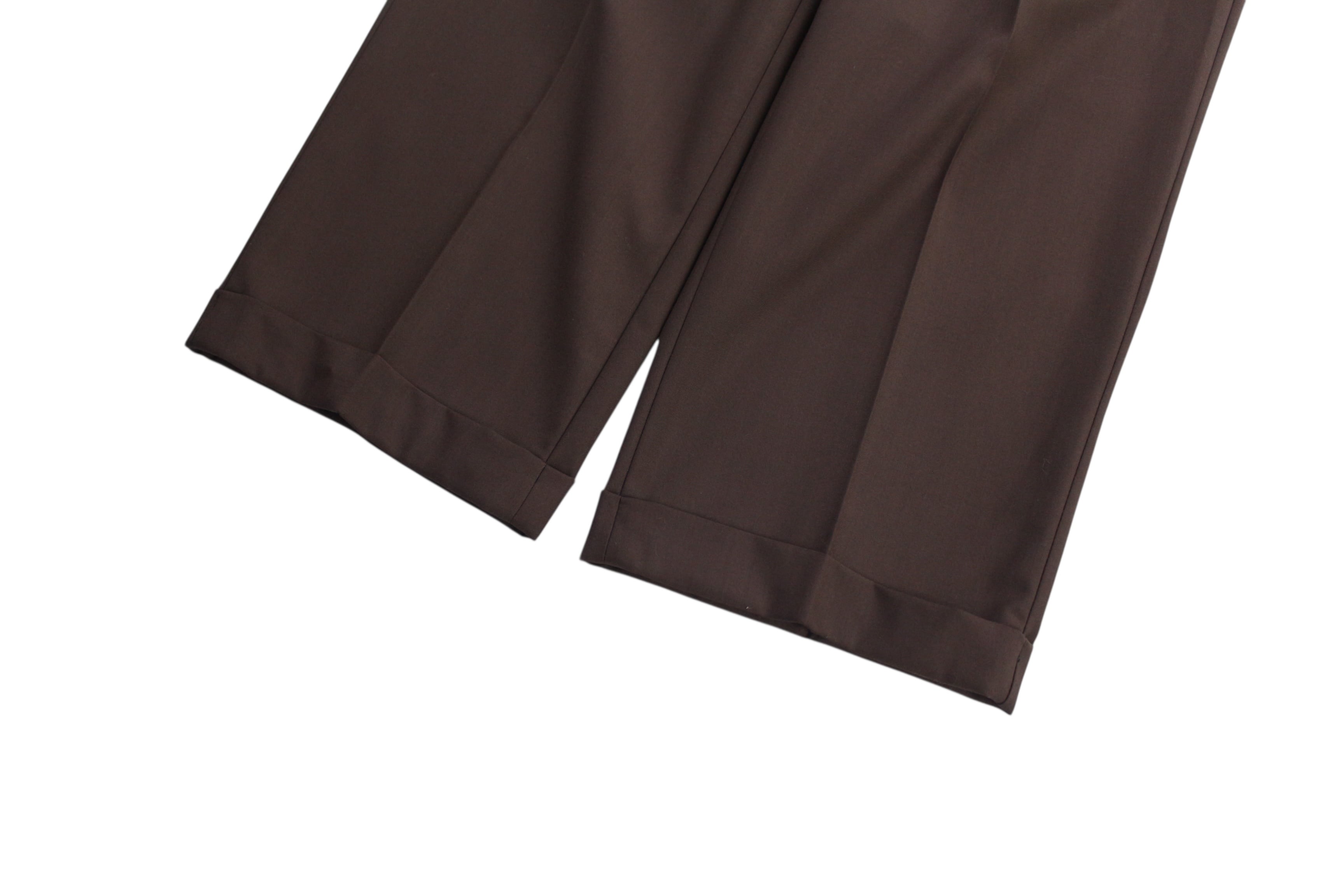 フロントに入ったタックが特徴的なワイドスラックスが入荷しました。