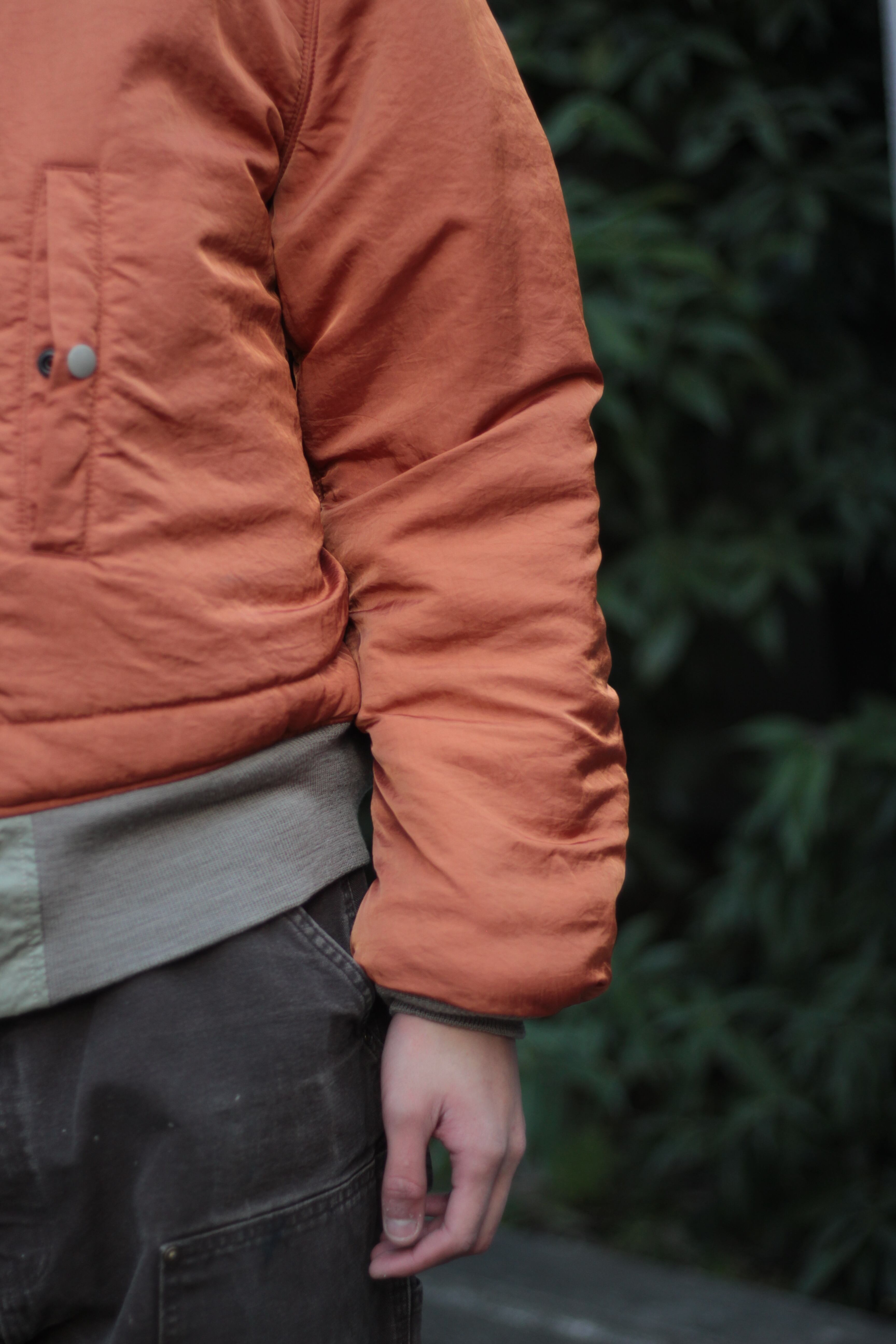 リバーシブル仕様でオリーブ面とオレンジ面の2wayで着用可能。