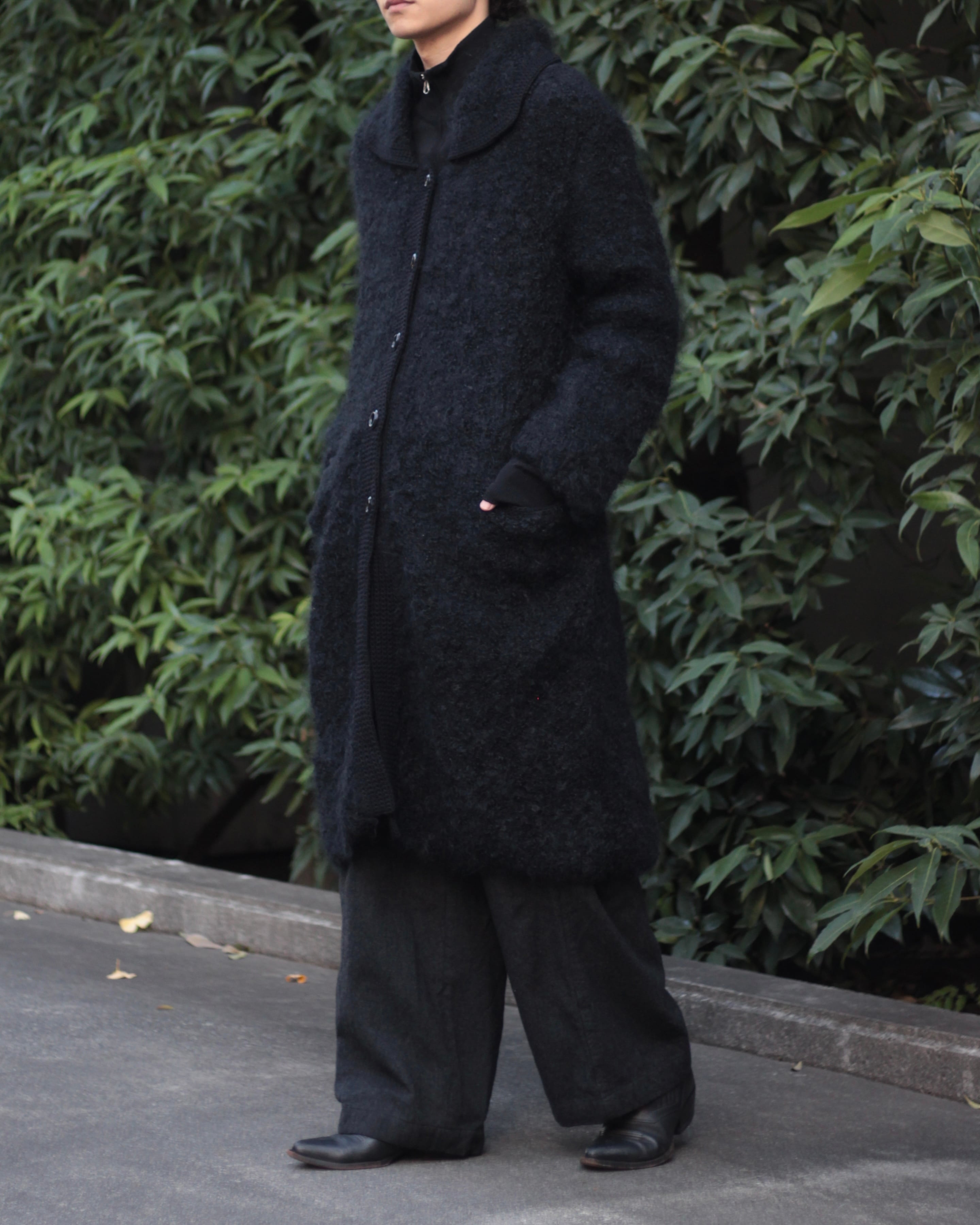 モードな印象のブラックに生地感の柔らかさが相まって高級感のある佇まい。