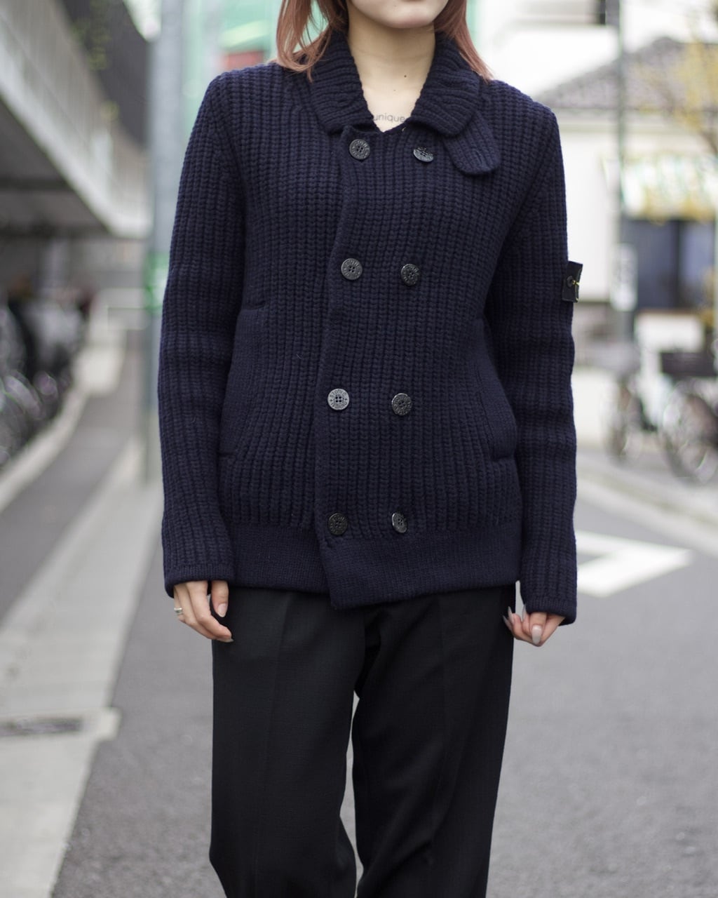 STONE ISLAND double-breasted knit P coat jacket【OTTK-4937】