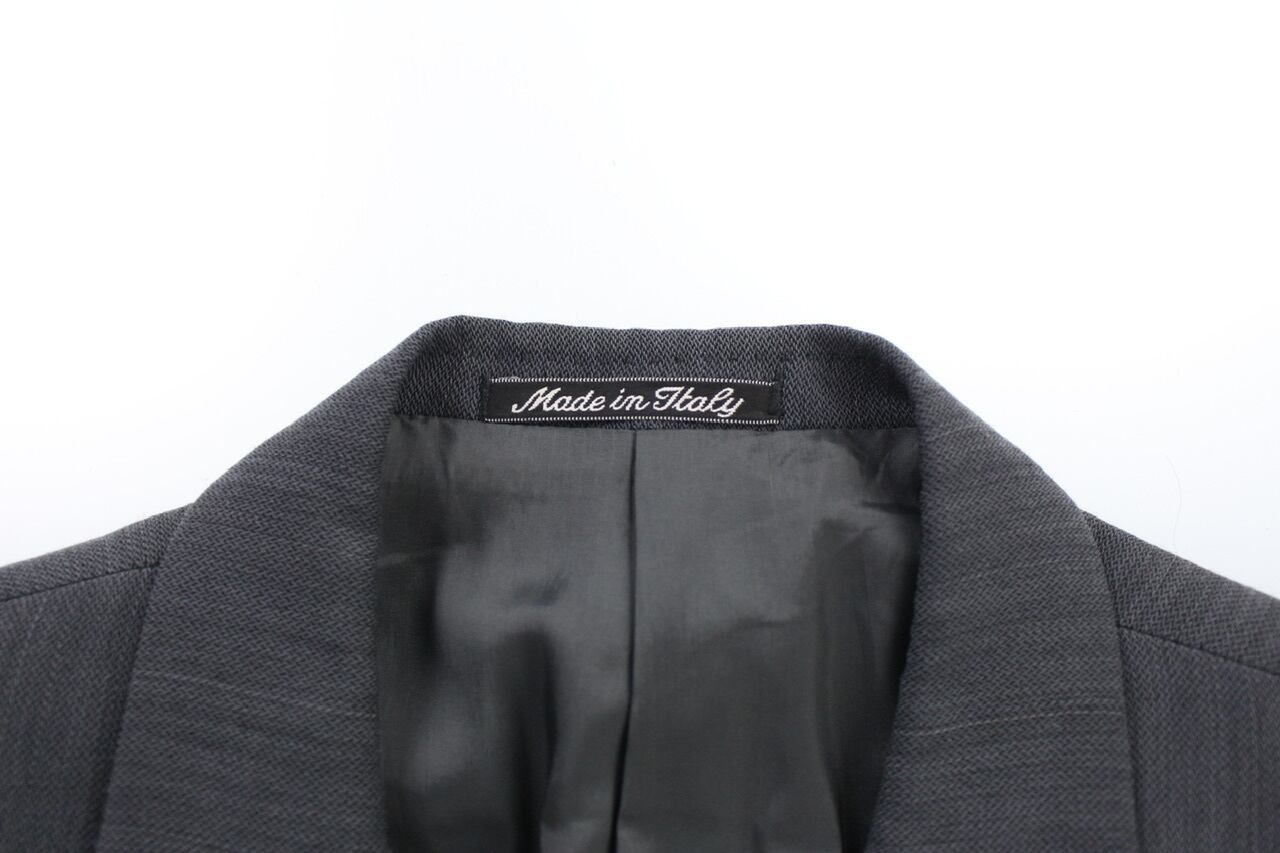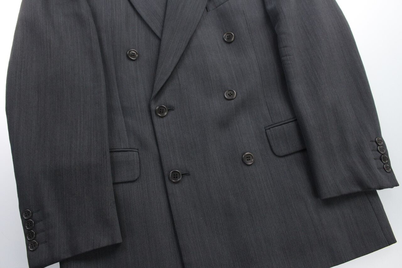 クラシカルなグレーストラップに大きなピークドラペルダブルボタン