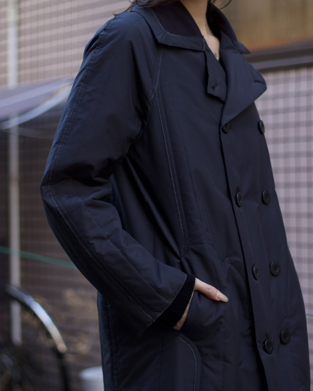 PLEATS PLEASE ISSEY MIYAKE patted double-breasted coat with removed liner 【MM-4961】