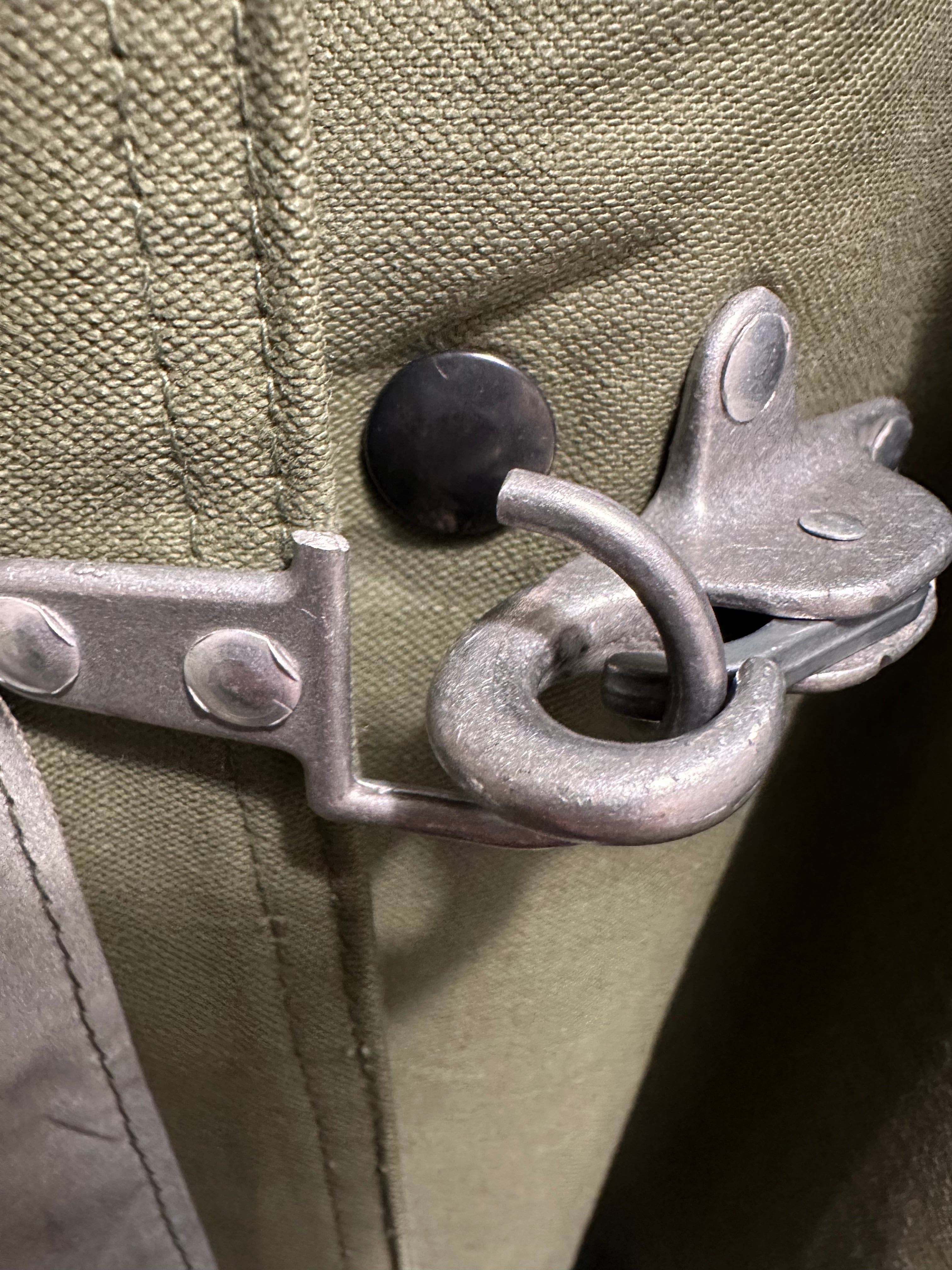 C 襟のダメージ、使用感がございます。二つ目の金具ダメージ破損してますが、引っ掛けて問題なく使用できます
