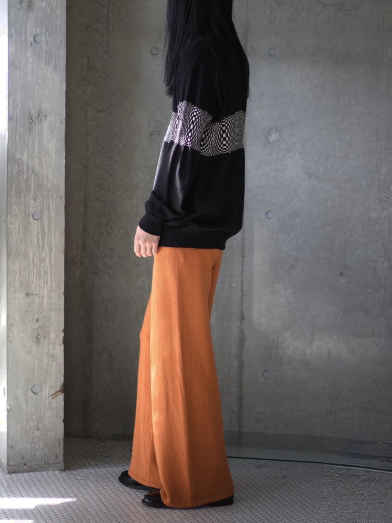発色の良いオレンジのカラーリングに、圧倒的に太さのあるリラックスシルエット。
