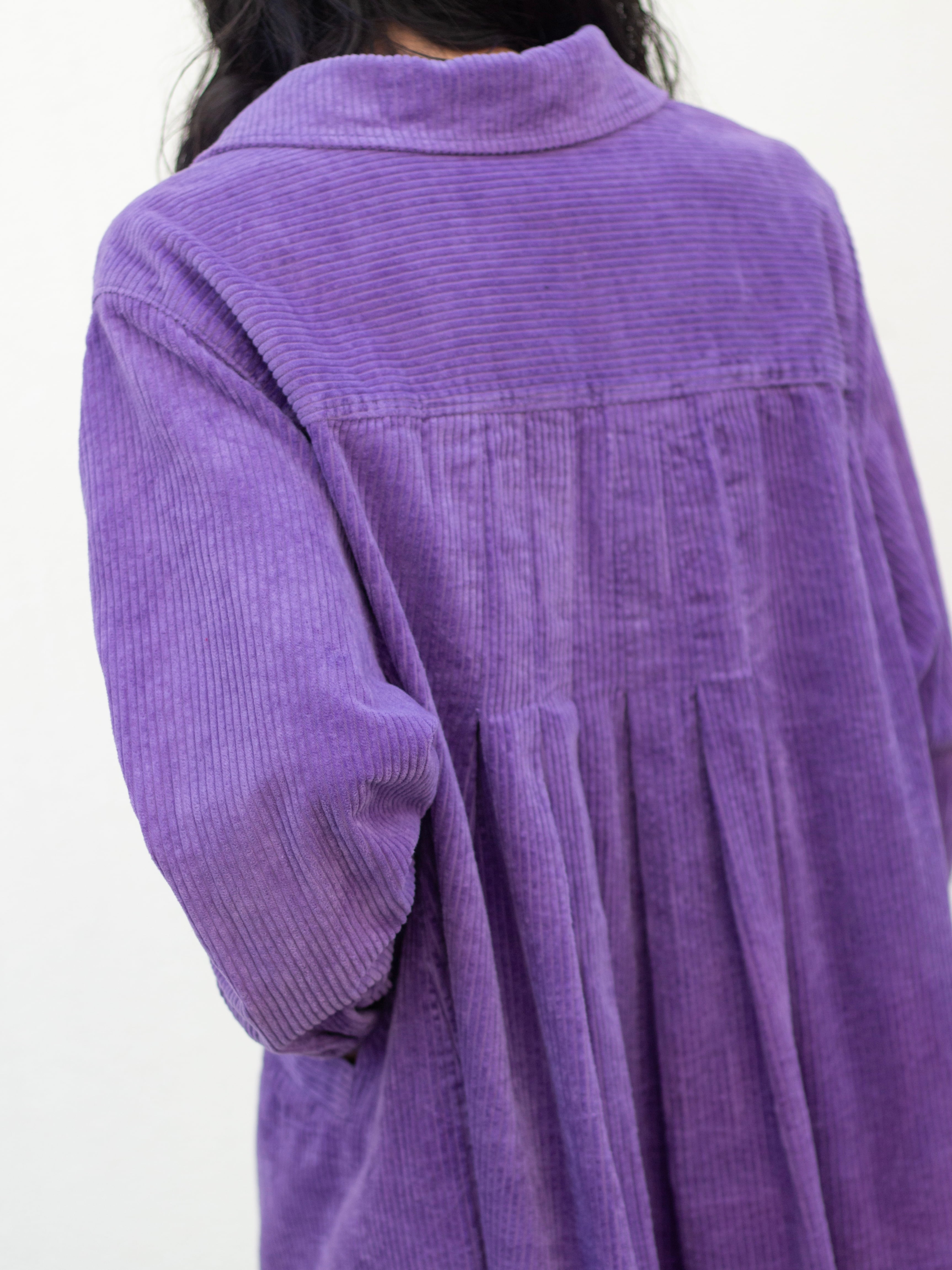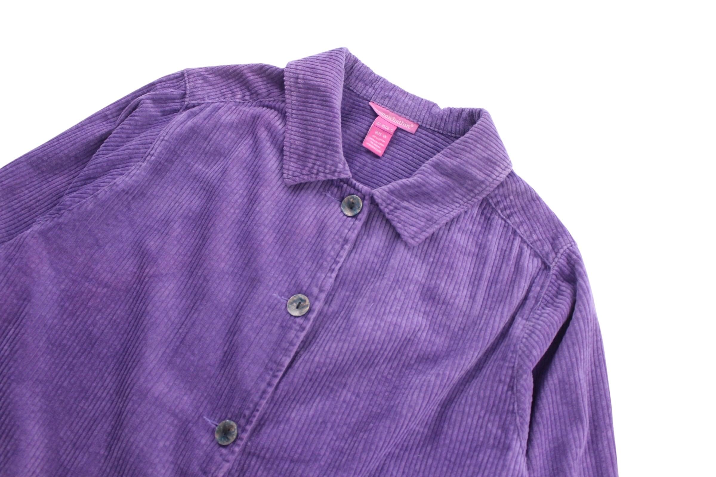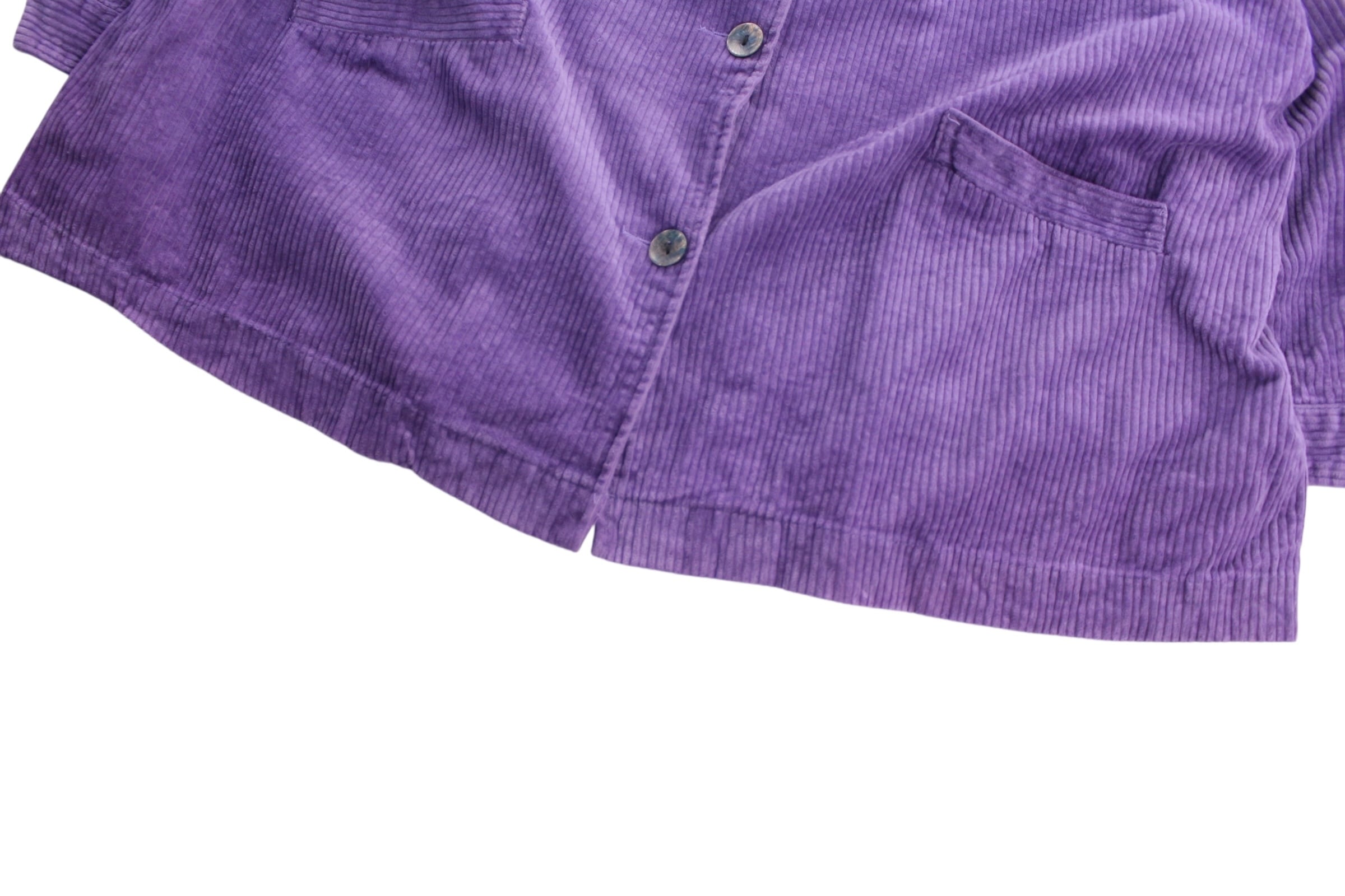 柔らかなコーデュロイ素材を使用したカバーオールデザインのライトアウター。淡い薄紫カラーがヴィンテージらしい絶妙な雰囲気を演出します。