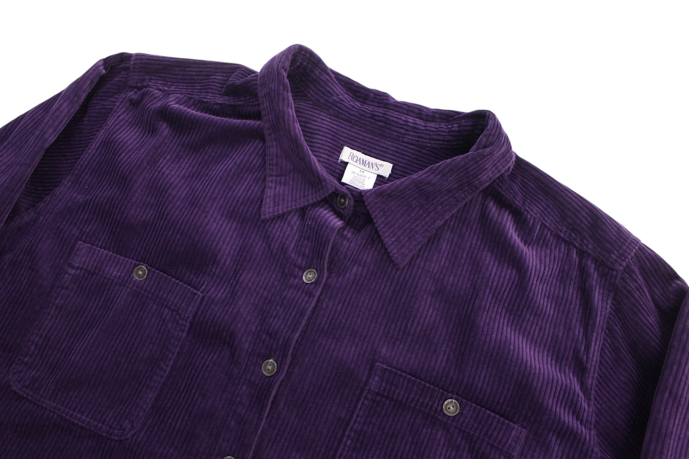 ゆったりとしたオーバーサイズが魅力の5XLコーデュロイシャツ。深みのある紫カラーが個性的で、レイヤードにも一枚着にも映える存在感のあるアイテムです☺︎