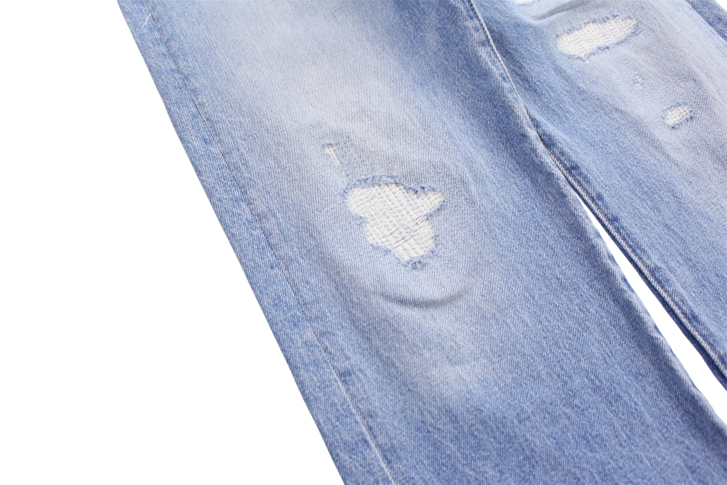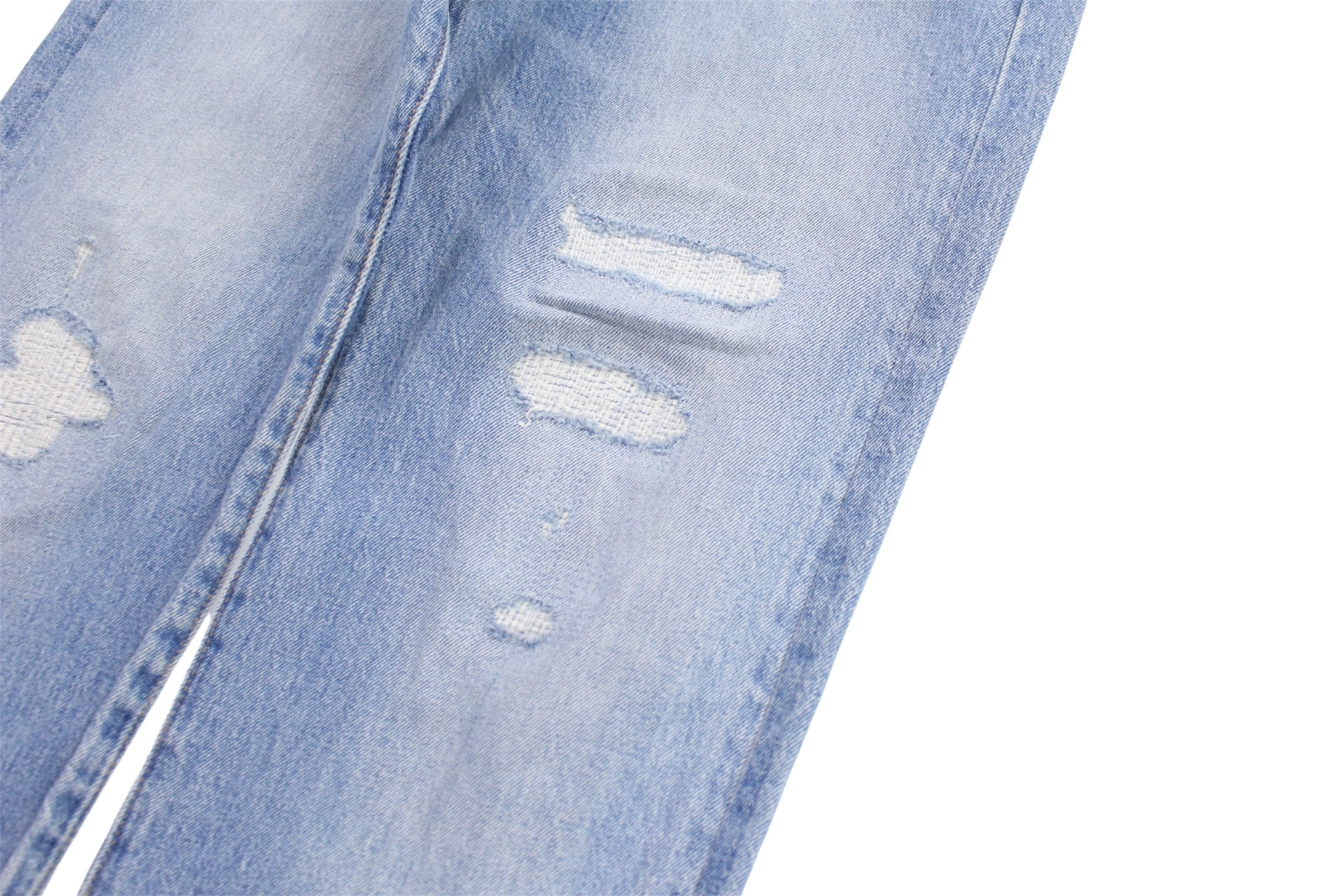 ライトブルーの柔らかい色味に、程よく入ったダメージとアタリが絶妙にマッチし、シンプルなトップスを合わせるだけでスタイリングが決まる万能カラー。